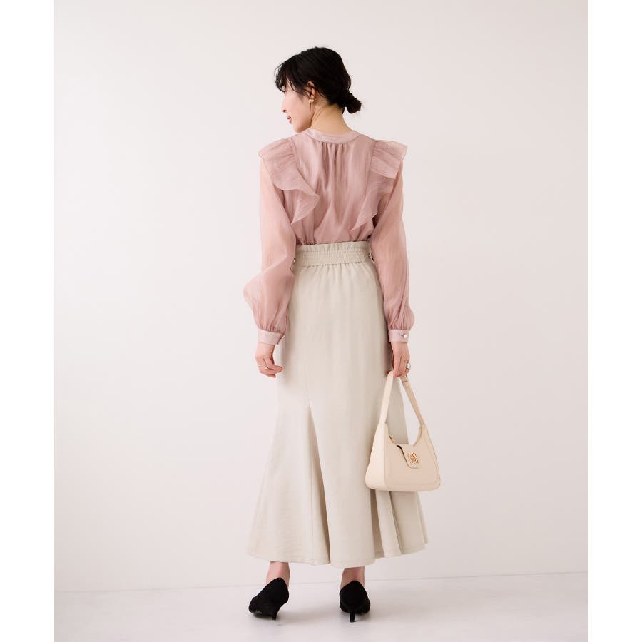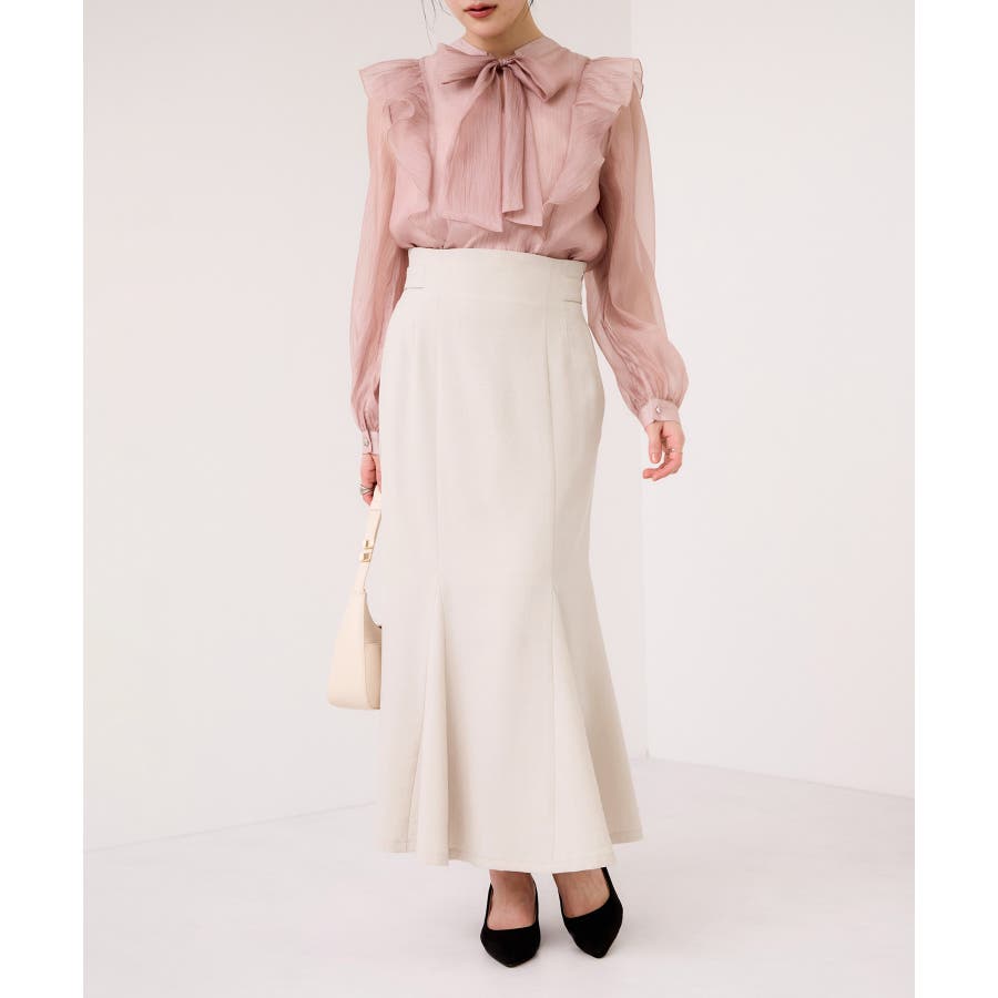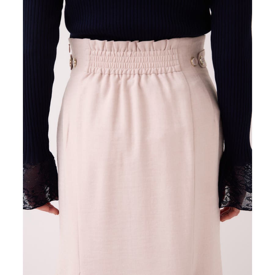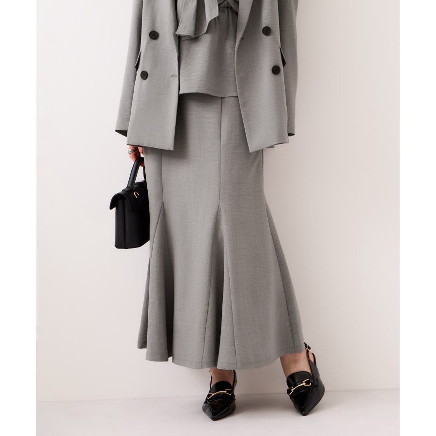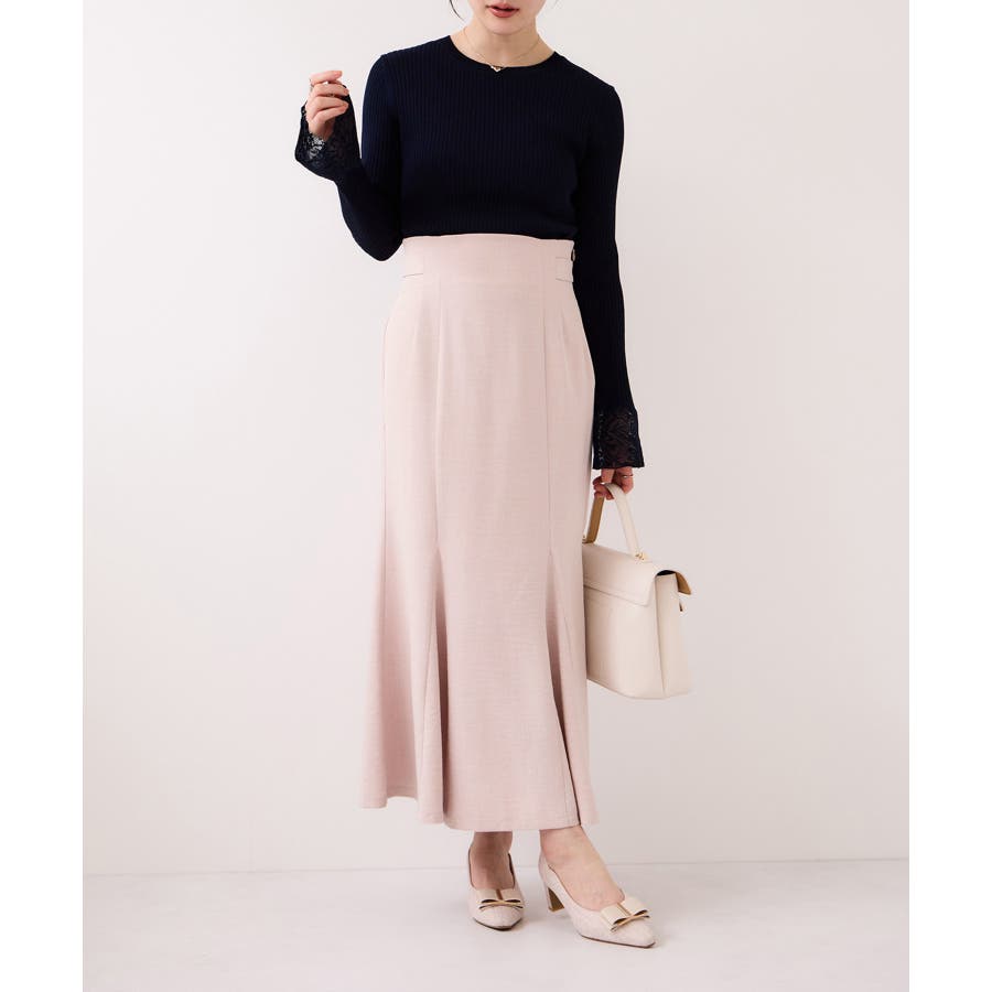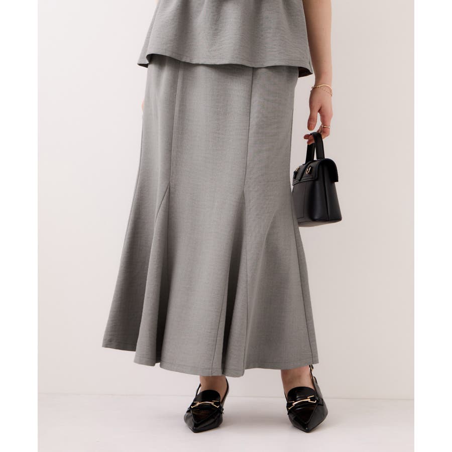 ウエストのサイドベルトがデザインポイントでもあり、アジャスターとしての機能性もある細見えするシルエットのマーメイドスカートです。