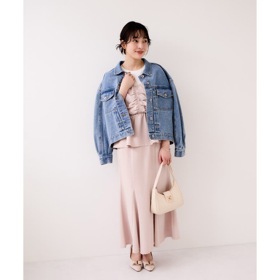 美easyリネンライクシリーズのビスチェドッキングブラウス(品番BVM36100)、ジャケット(品番BVV36100)などのセットアップがおすすめです。また、Tシャツなどで女っぽいカジュアルスタイリングも◎!