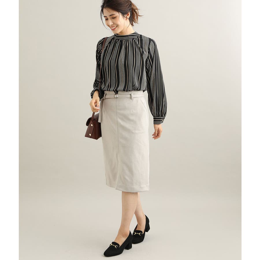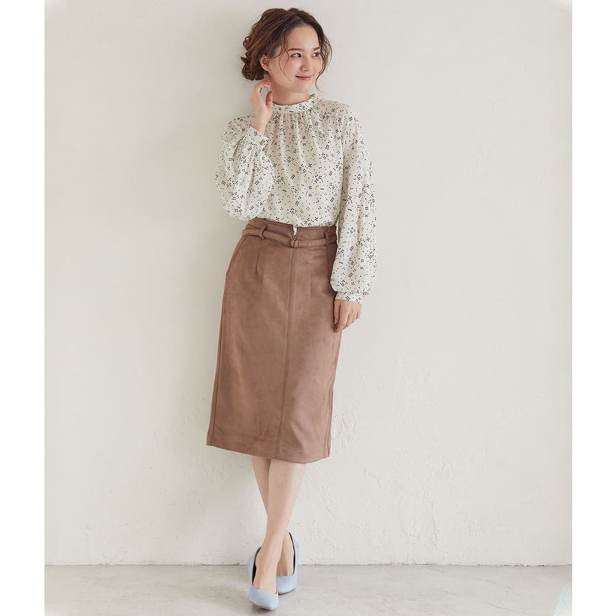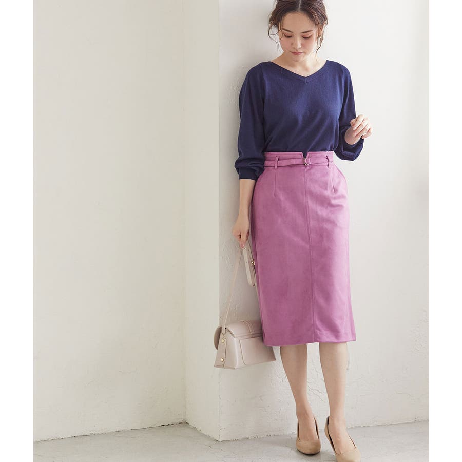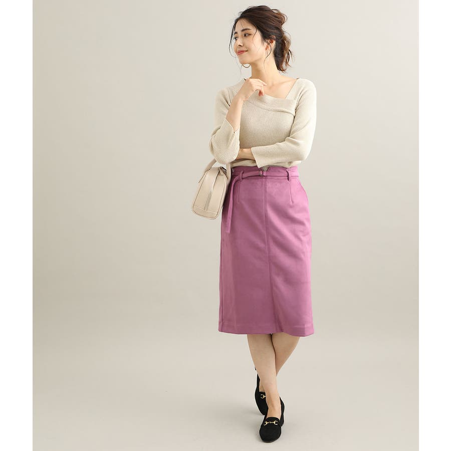 優しいパステルトーンのエコスエードを使用したタイトスカート。 愛らしさと大人っぽさを併せ持った、女性らしいアイテムです。 ベルト付きデザインで、シンプルな中にもデザインポイントを効かせています。 季節感をアピールでき、秋の立ち上がりにオススメのアイテムです。