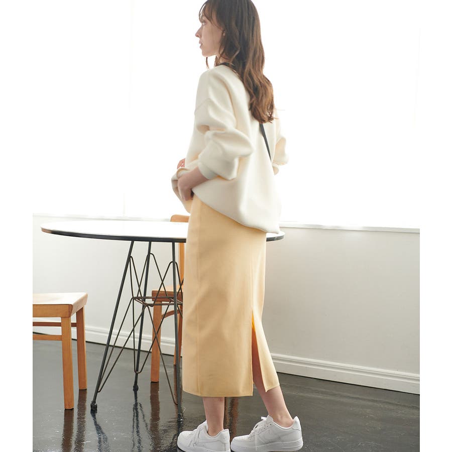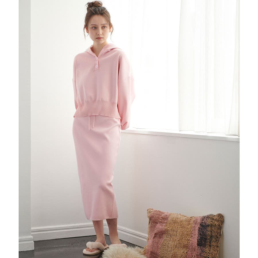 【デザイン・シルエット】 さらっとしながらも、コラーゲン加工でしっとりとした触感が肌に優しいニットスカートです。 ウエストはらくちんに履けるゴム仕上げで、おうち時間はもちろん、ちょっとした外出にも◎なワンマイルウェア。 後ろの裾部分にはスリットを施しています。 左ウエストのリブ部分の下に「ViSage」の刺繍入り。 【素材】 コラーゲン加工を施したしっとり素材。 とても軽いのに加え、よく伸びてノンストレスで着用して頂けるだけでなく、ご家庭でのマシンウォッシュも可能です。 【カラー】 女性らしさ満載の柔らかなペールトーン。 【おすすめのスタイリング】 スエットやロンTなどリラックストップスとの合わせがおすすめ。 同素材のトップス(BVM41020)とセットアップで着用できます。 ー ViSage/ビサージュ ー 好きなものに囲まれたい。 好きなスタイルで過ごしたい。 お部屋で過ごす生活を素敵にしたいけど、賢く快適にしたい。 そんな今を生きるリアルガールに答える為に誕生した ViSからのルームウェアライン「ViSage -ビサージュ-」ViS×Sage(賢い) ・Relaxing One Mile Wear ・Active Room Wear ・Comfortable Night Wear 3つのラインで機能性と快適さで手の届くきれいを届けるラインアップ。 ---------- 透け:なし 裏地:なし 伸縮性:あり 光沢感:なし 生地の厚さ:やや厚い ポケット:あり ---------- ※画像の商品はサンプルです。 実際の商品と仕様、加工、サイズが若干異なる場合がございます。 ※室外で撮影している画像は、光の影響で色味が若干異なって見える場合がございます。