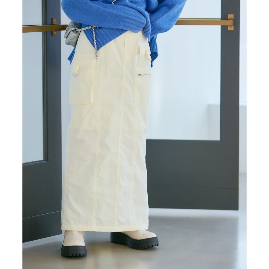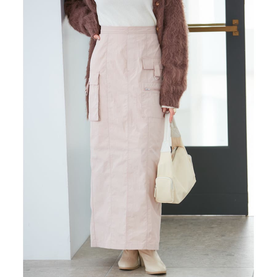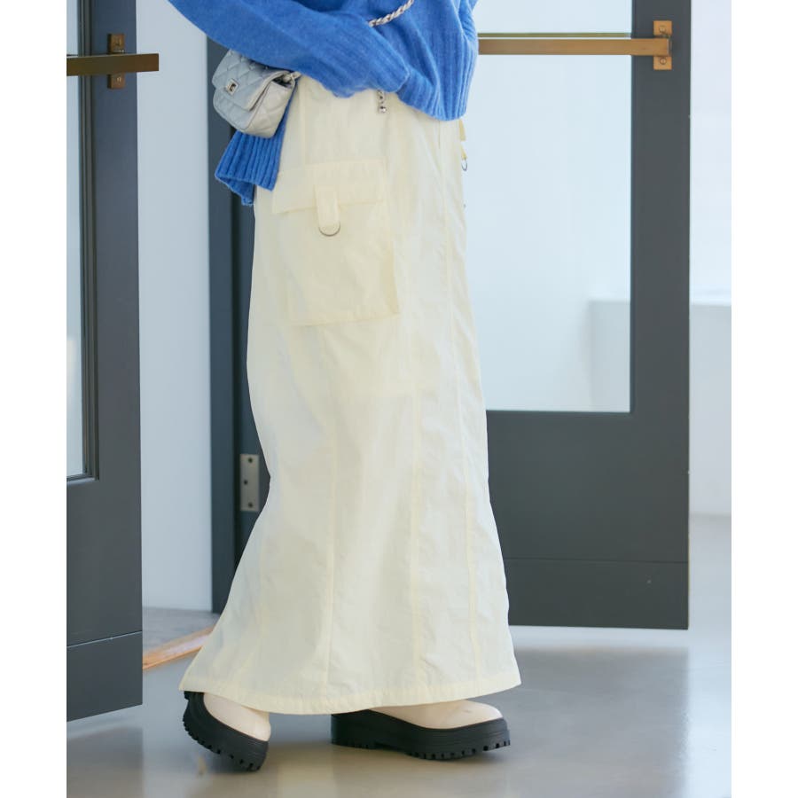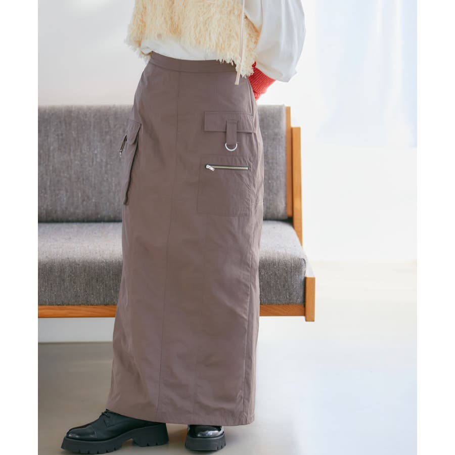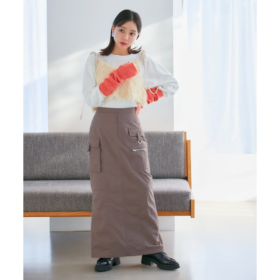 カーゴデザインも、のっぺりと見えがちなロングスカートのアクセントになっていて◎