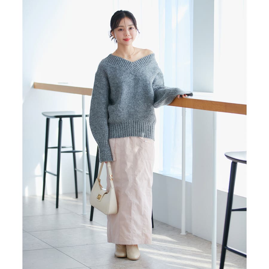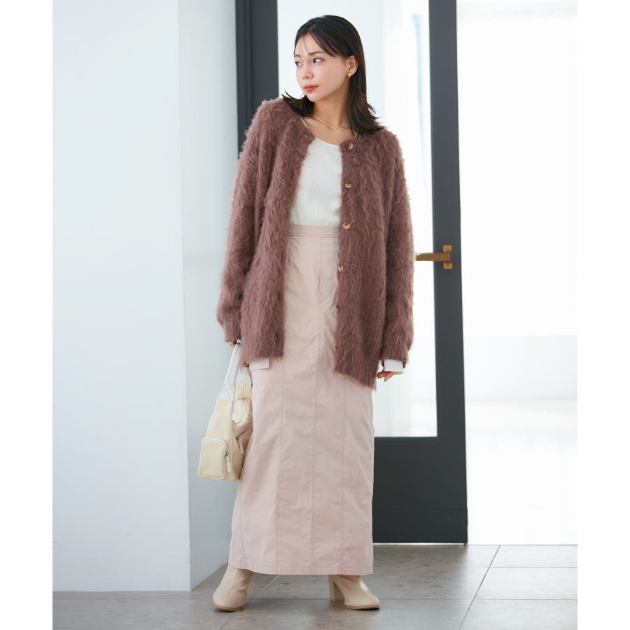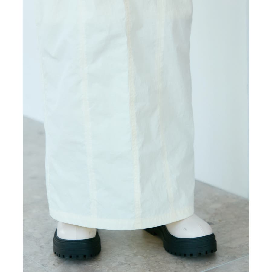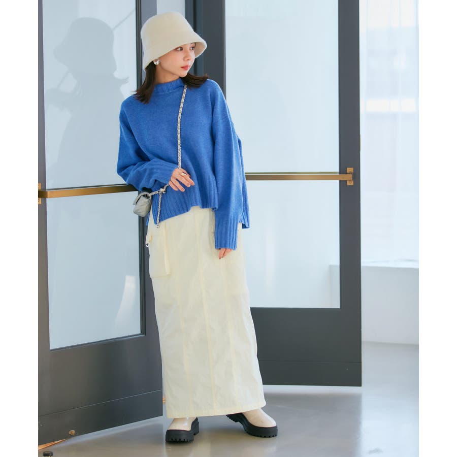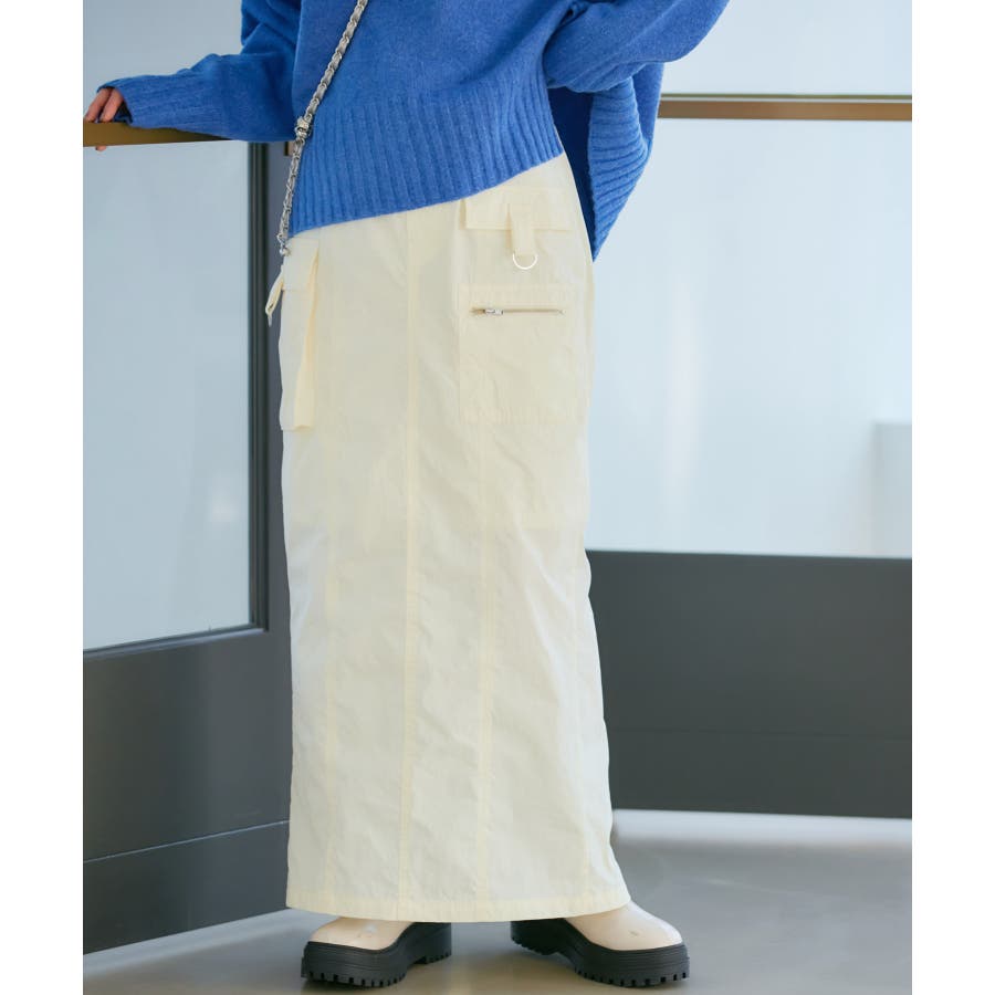 カーゴデザインも、のっぺりと見えがちなロングスカートのアクセントになっていて◎