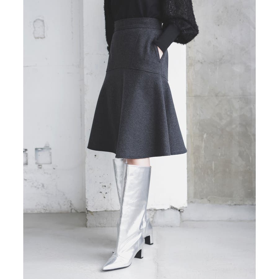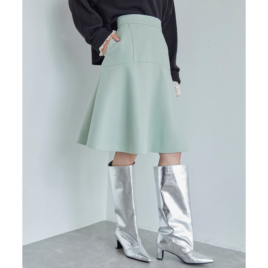 【洗える】ジャージメルトンニーレングスセミフレアスカート