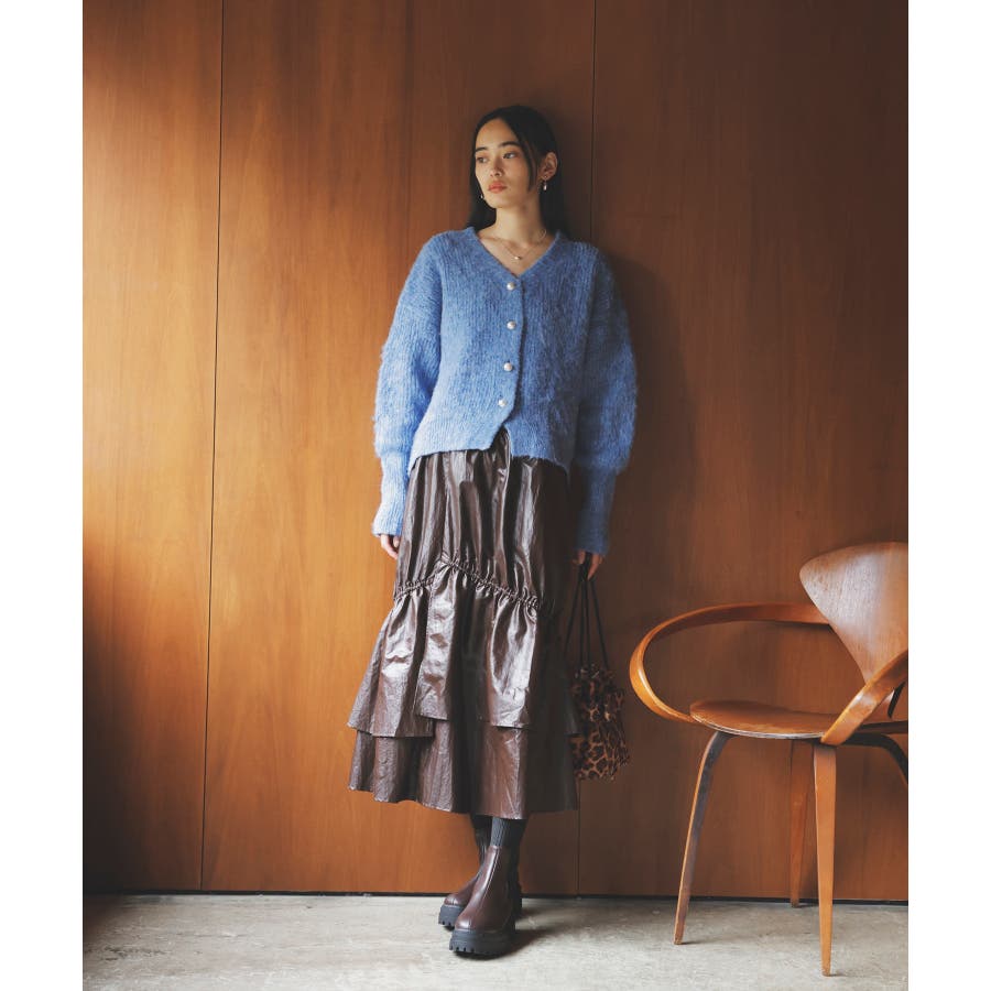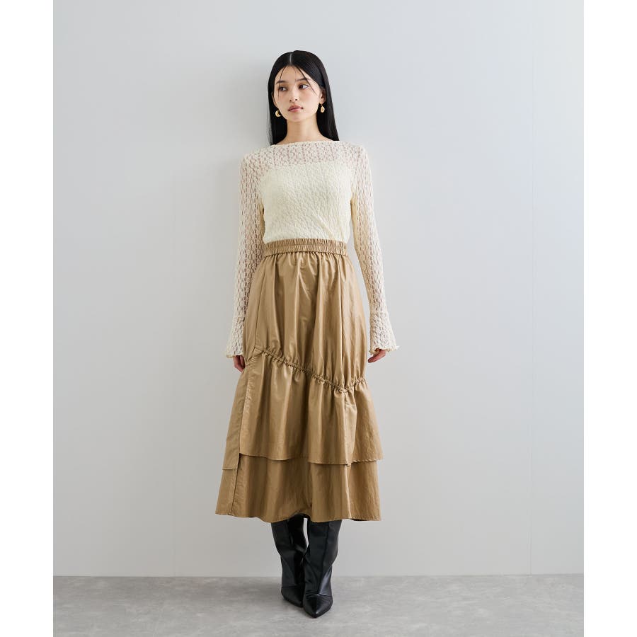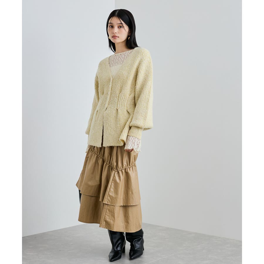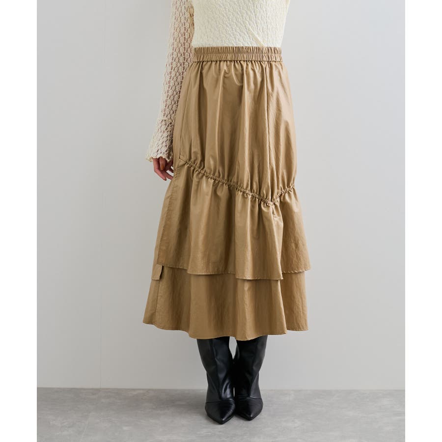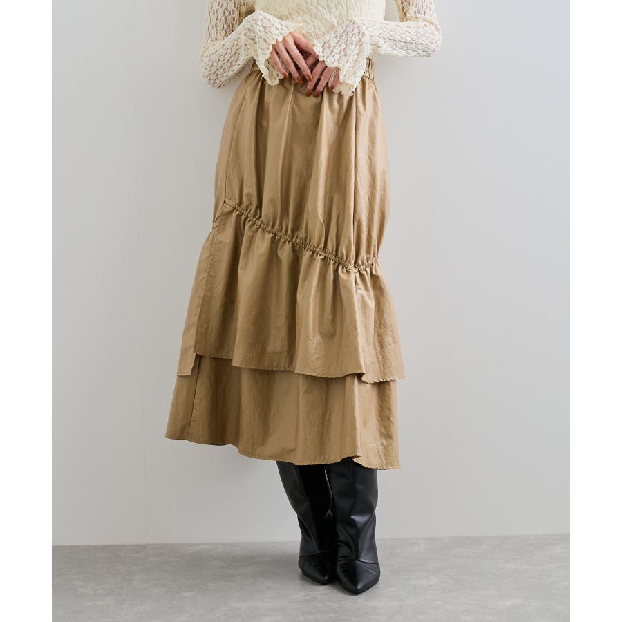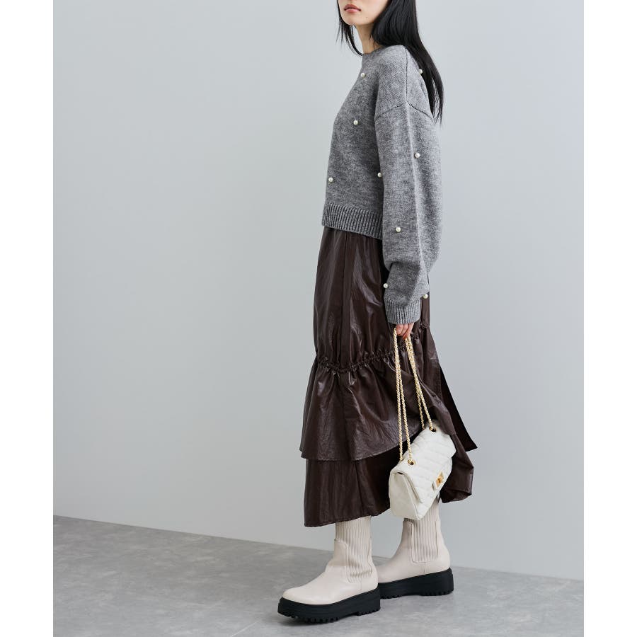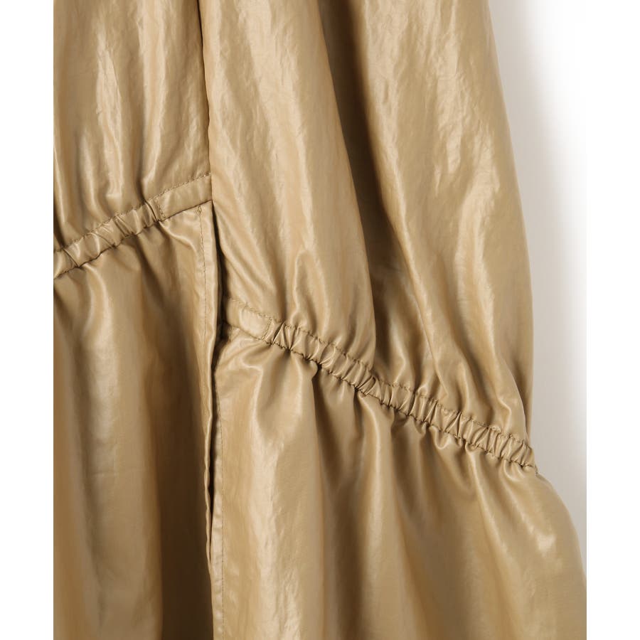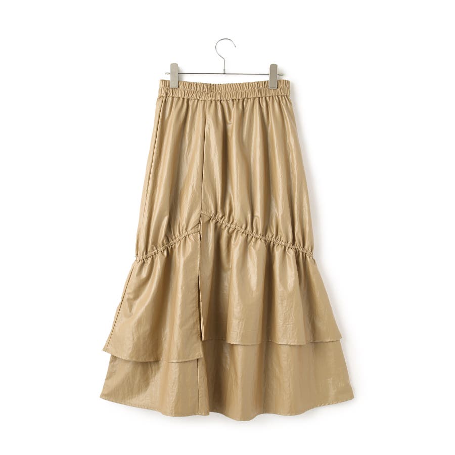 ◆2024-25秋冬◆ 【デザイン・シルエット】 艶加工をほどこしたギャザースカート。 ニットのスタイリングを引き立たせてくれる素材と艶感は今シーズンの一押し素材です。 ウエストがゴムでリラック感を兼ね備えているので、オンオフどちらでもデイリーに活躍するアイテムです。 【素材】 チンツ加工という生地に光沢感が出る加工を施し、レザーライクな印象にみせてくれる素材を使用しています。 【カラー】 幅広く合わせやすいダークブラウン、ベージュの2色展開です。 【おすすめのスタイリング】 スウェットやゆったりしたシルエットのトップスとの相性が抜群です。 素材に特徴があるので、シンプルなトップスを引き立たせてくれます。 ----------------------------- 裏地:なし 光沢感:あり 透け感:なし 伸縮性:なし ウエスト:ゴム ファスナー:なし ポケット:なし 生地の厚さ:普通 季節:春、秋、冬 ----------------------------- 【モデル着用サイズ】 ベージュ着用モデル身長:168cm、着用サイズ:F ダークブラウンモデル身長:164cm、着用サイズ:F (画像2枚目~モデル身長164cm) ※画像の商品はサンプルです。 実際の商品と仕様、加工、サイズが若干異なる場合がございます。 ※画像によっては実際の色味と異なる場合があります。正しい色味は生地アップ画像をご確認ください。