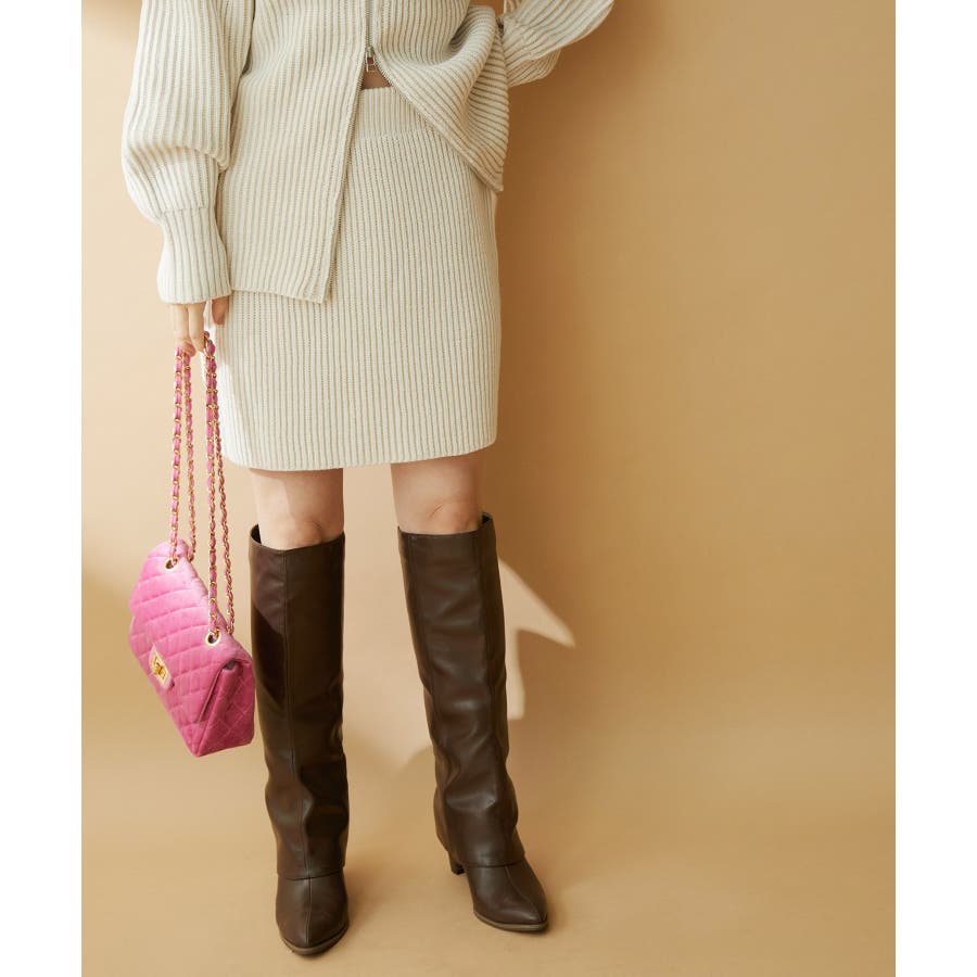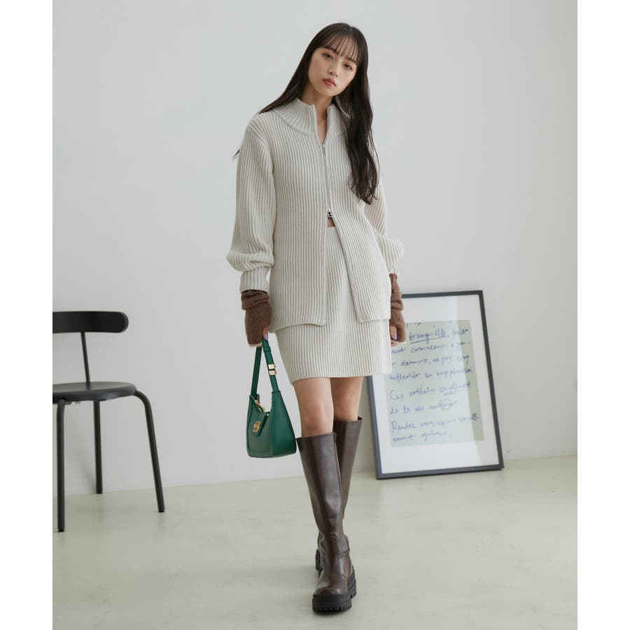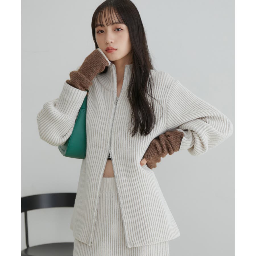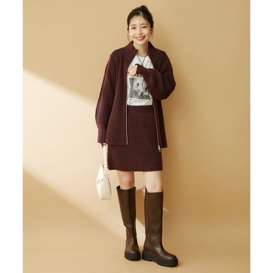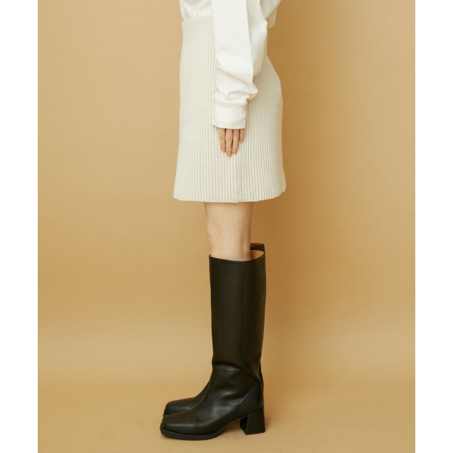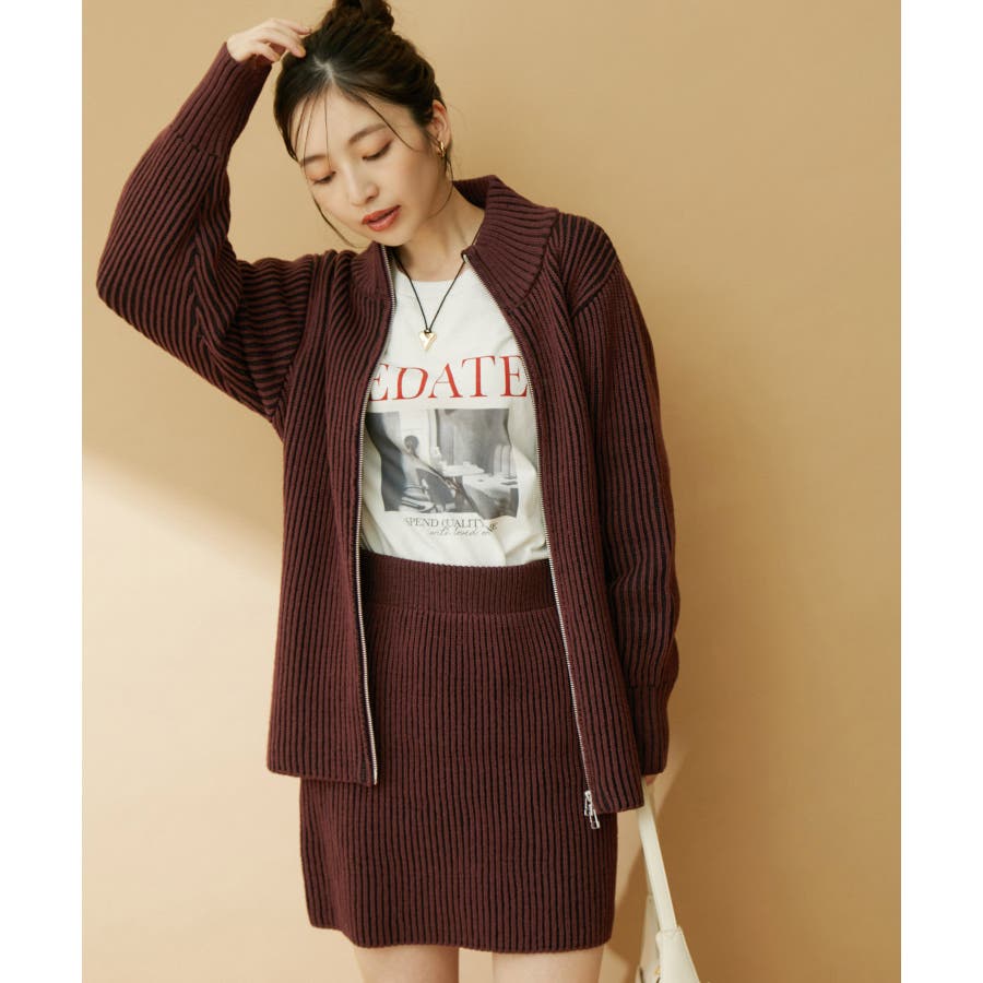 【デザイン・シルエット】 配色の畦編みがポイントのシンプルな台形ミニ丈ニットスカートです。