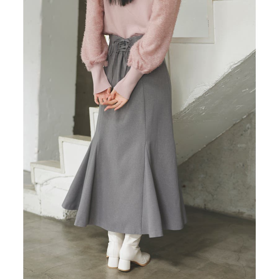 【新色追加】【美easy】ウーリッシュバックレースアップマーメイドスカート【洗え…