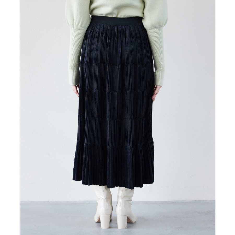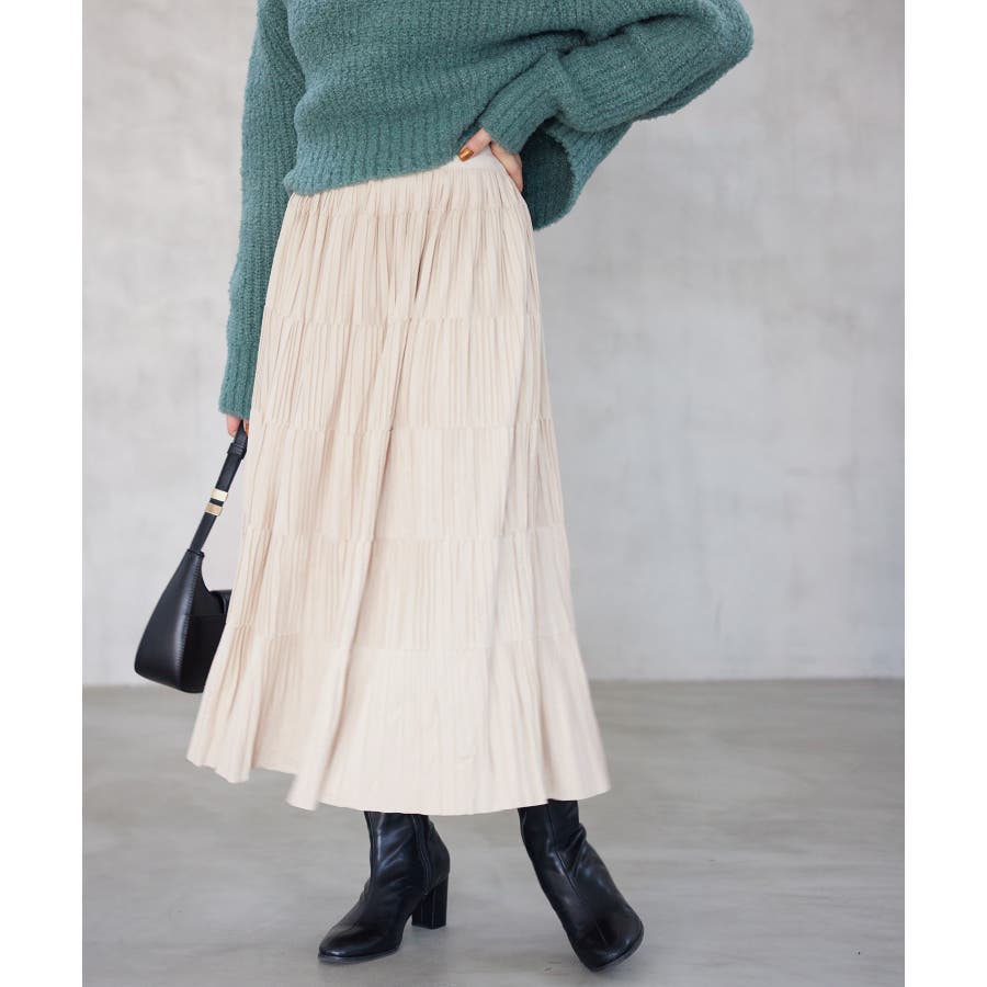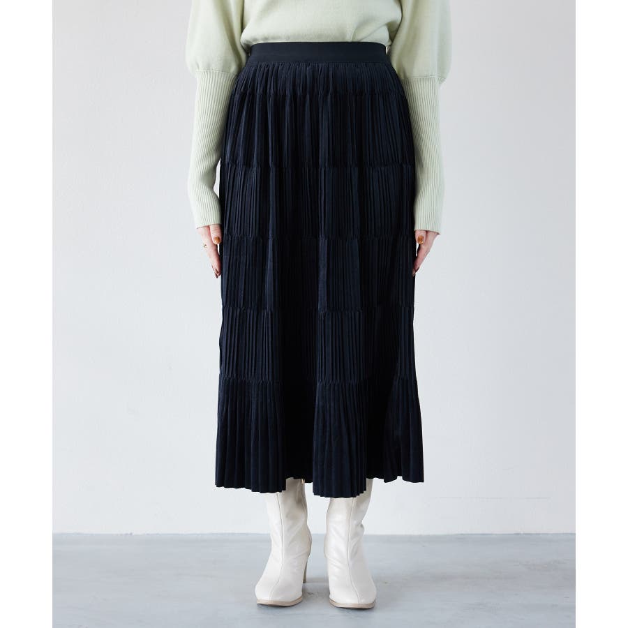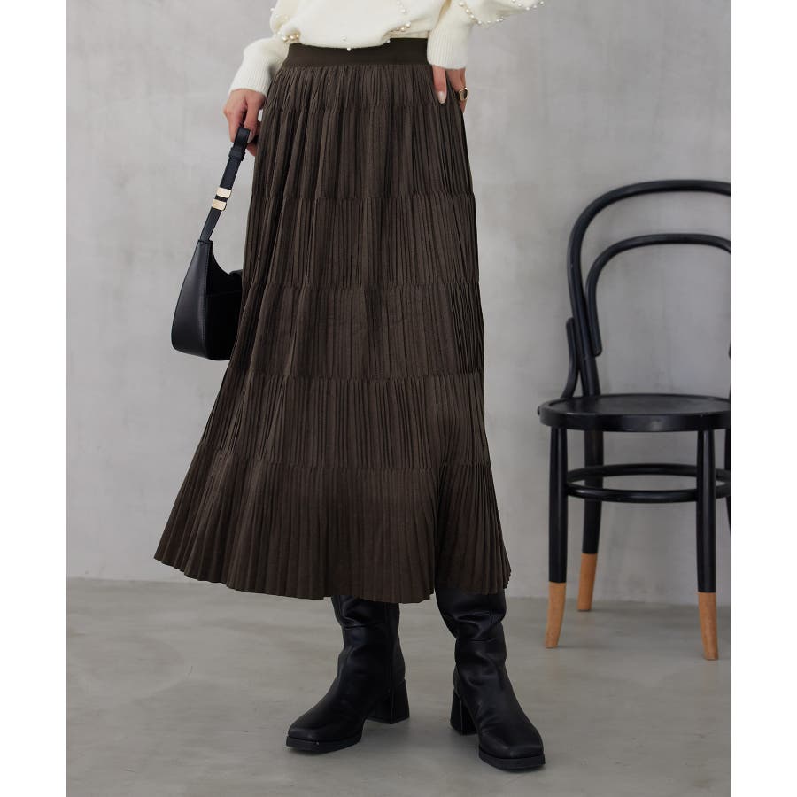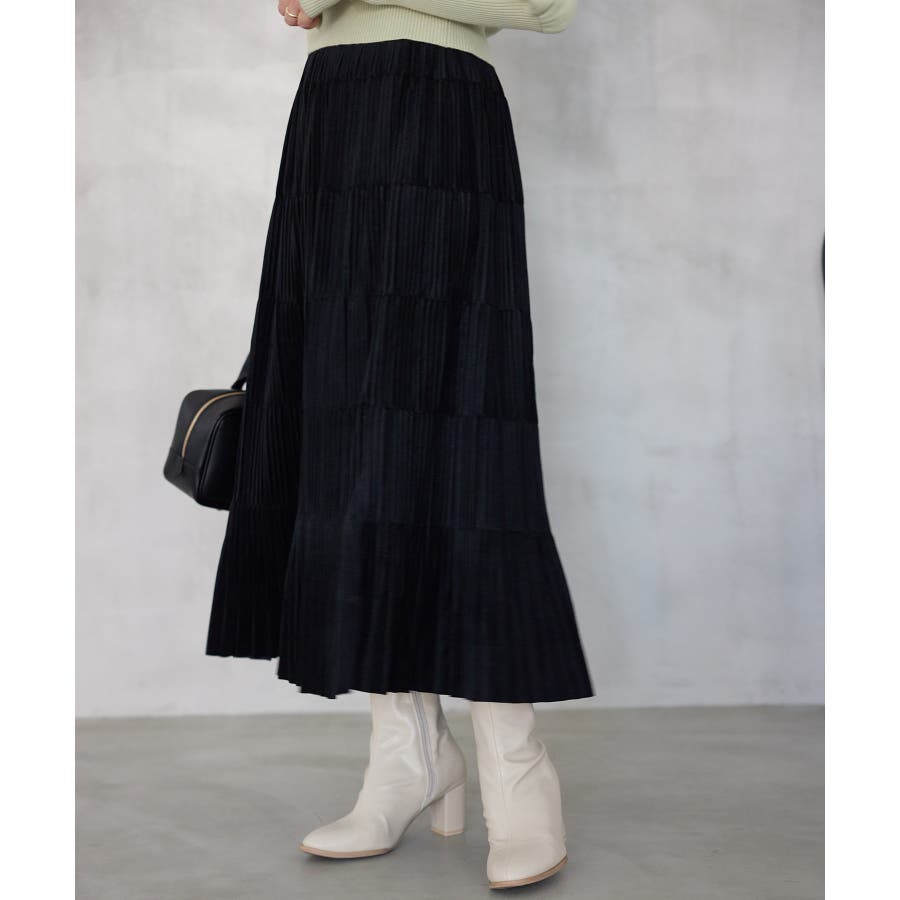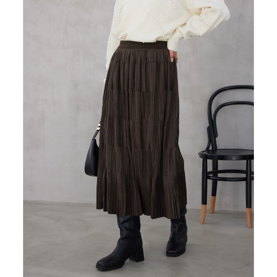 【デザイン・シルエット】 スエードタッチのティアードプリーツスカートです。