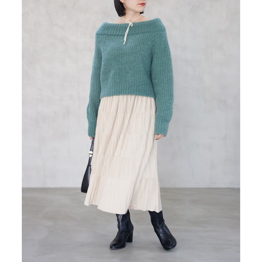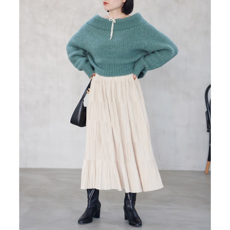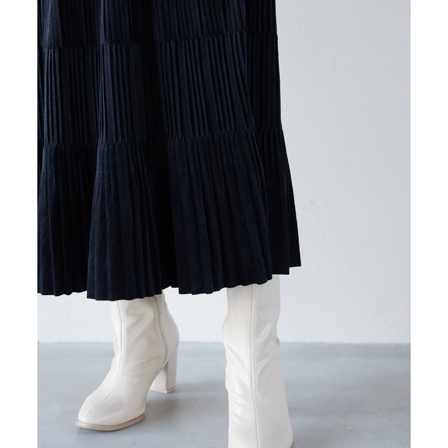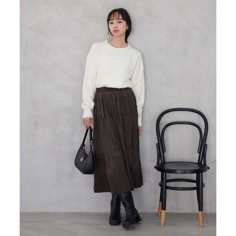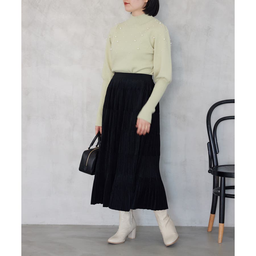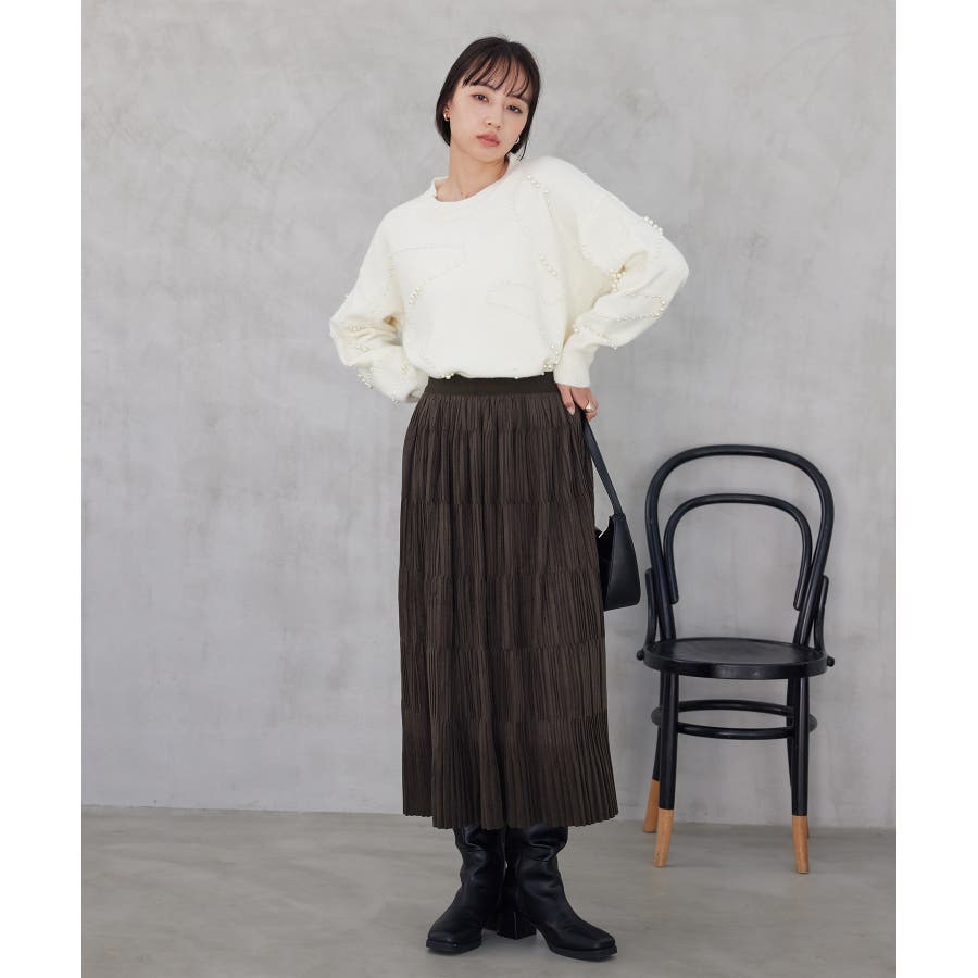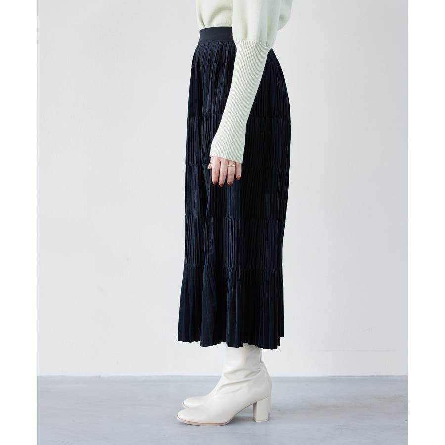 【デザイン・シルエット】 スエードタッチのティアードプリーツスカートです。