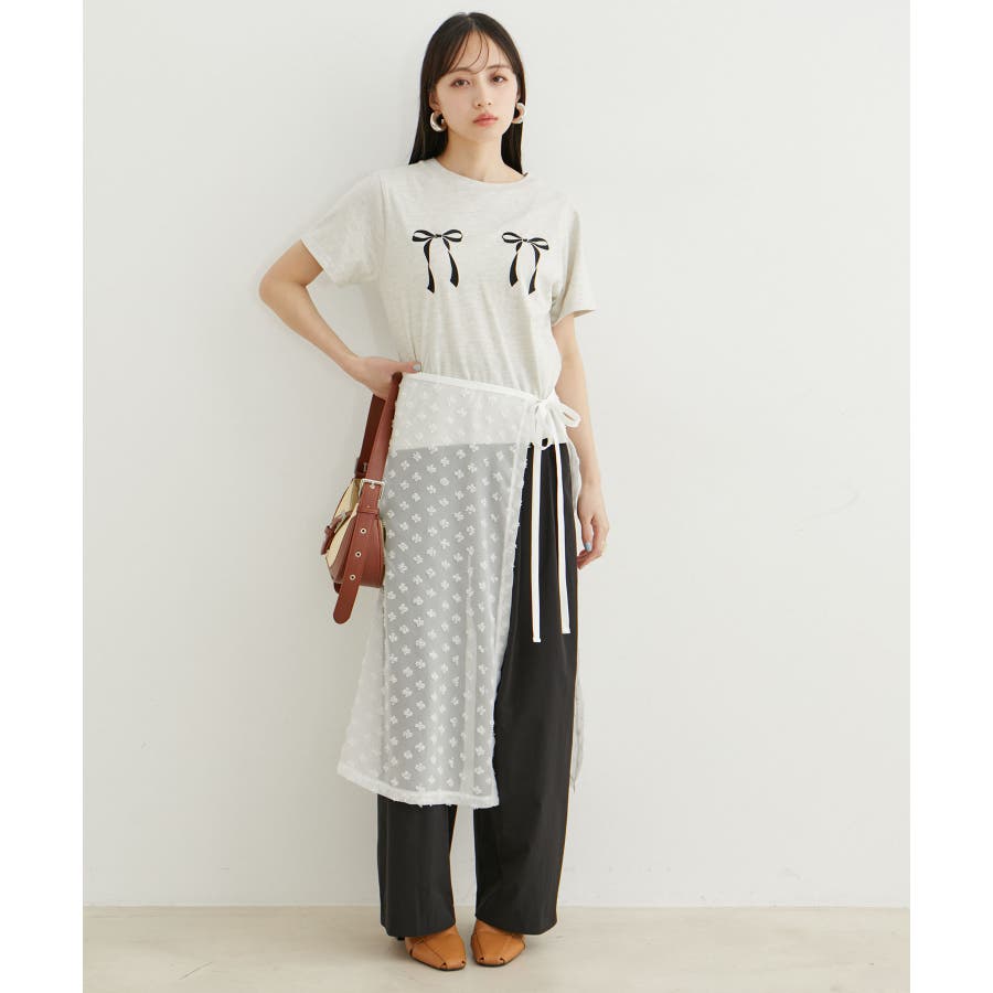 ◆2024春夏◆ 【デザイン・シルエット】 取り入れるだけでスタイリングを格上げしてくれるトレンドアイテム。 リボンやフラワーなどのモチーフが施されたレース生地をアソートで展開。 透け感のある素材が軽やかさを演出してくれ、これからの季節のレイヤードスタイルにぴったりです。 ウエスト部分は紐を長めに取っているので、巻く位置や向きを自由に変えられ好みの着こなしを楽しめます◎ 【素材】 リボンやフラワーモチーフのレース素材 【カラー】 リボン×ブラック、フラワー×ホワイト、フラワー×ブラックの3パターン展開 【おすすめのスタイリング】 Tシャツ×デニムのようなシンプルなスタイリングにプラスワンするだけでコーディネートが決まります◎ カラースカートや無地ワンピに重ねる着こなしもおすすめ。 ----------------------------- 裏地:なし 光沢感:なし 透け感:あり 伸縮性:なし ウエスト:紐(調整可) ファスナー:なし ポケット:なし 生地の厚さ:薄手 季節:通年 ----------------------------- 【モデル着用サイズ】 全色モデル身長:160cm、着用サイズ:F ※こちらは、WEB/1部店舗限定の商品です。実店舗での販売はしておりません。 ※画像の商品はサンプルです。 実際の商品と仕様、加工、サイズが若干異なる場合がございます。 ※画像によっては実際の色味と異なる場合があります。正しい色味は生地アップ画像をご確認ください。
