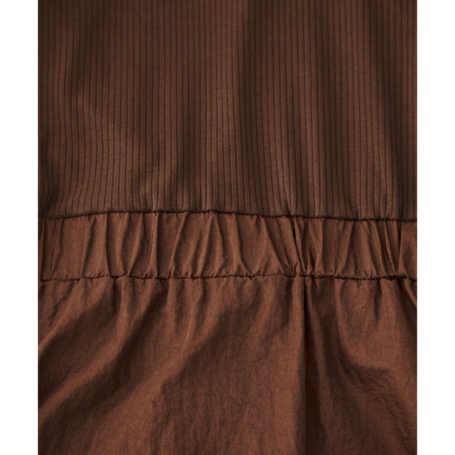 | 素材 | ブラック(01):(カットソー部分) 綿 93% ポリウレタン 7% (布帛部分) ナイロン 100%|ブラウン(22):(カットソー部分) 綿 93% ポリウレタン 7% (布帛部分) ナイロン 100%|ベージュ(27):(カットソー部分) 綿 93% ポリウレタン 7% (布帛部分) ナイロン 100% (スカート部分裏地) ポリエステル 100% |