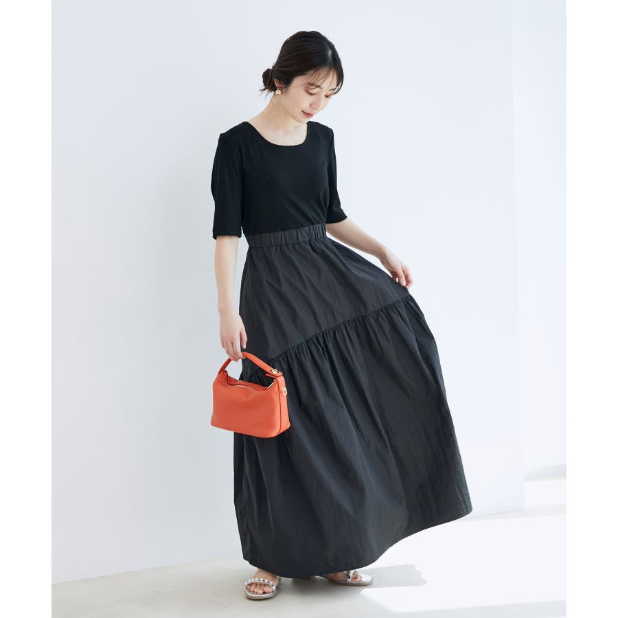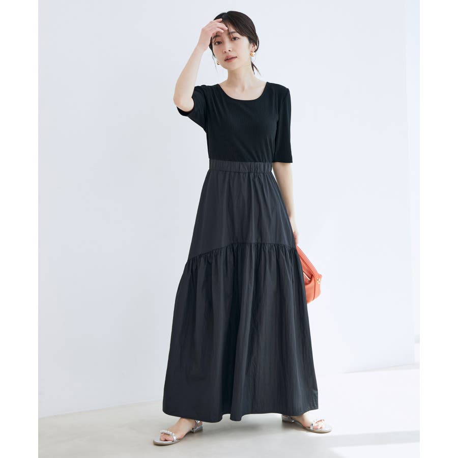 ぽっちゃりさんには不向きかもしれません。さん (50代以上 / 女性 / 身長160~165cm / 体重40~44kg)購入アイテム:カラー ブラック(01)サイズ Sいつものトップスサイズ:Sサイズ感:ぴったり - 異素材ドッキングスカート