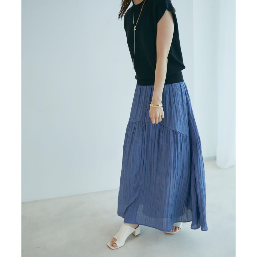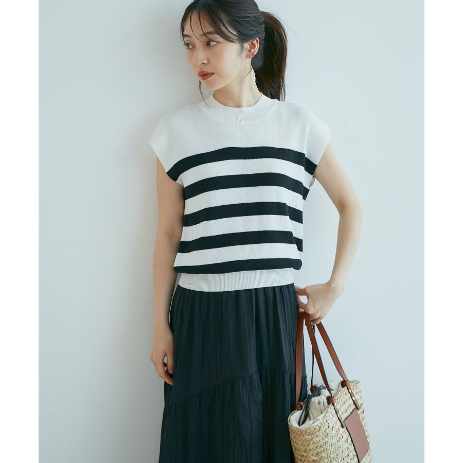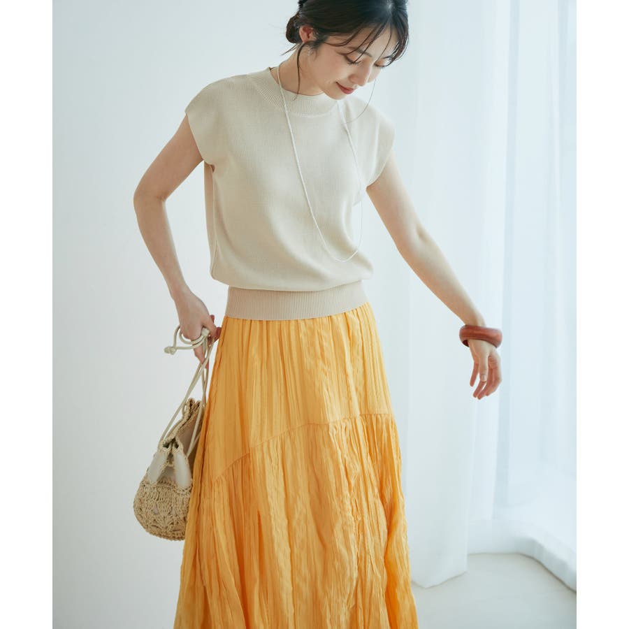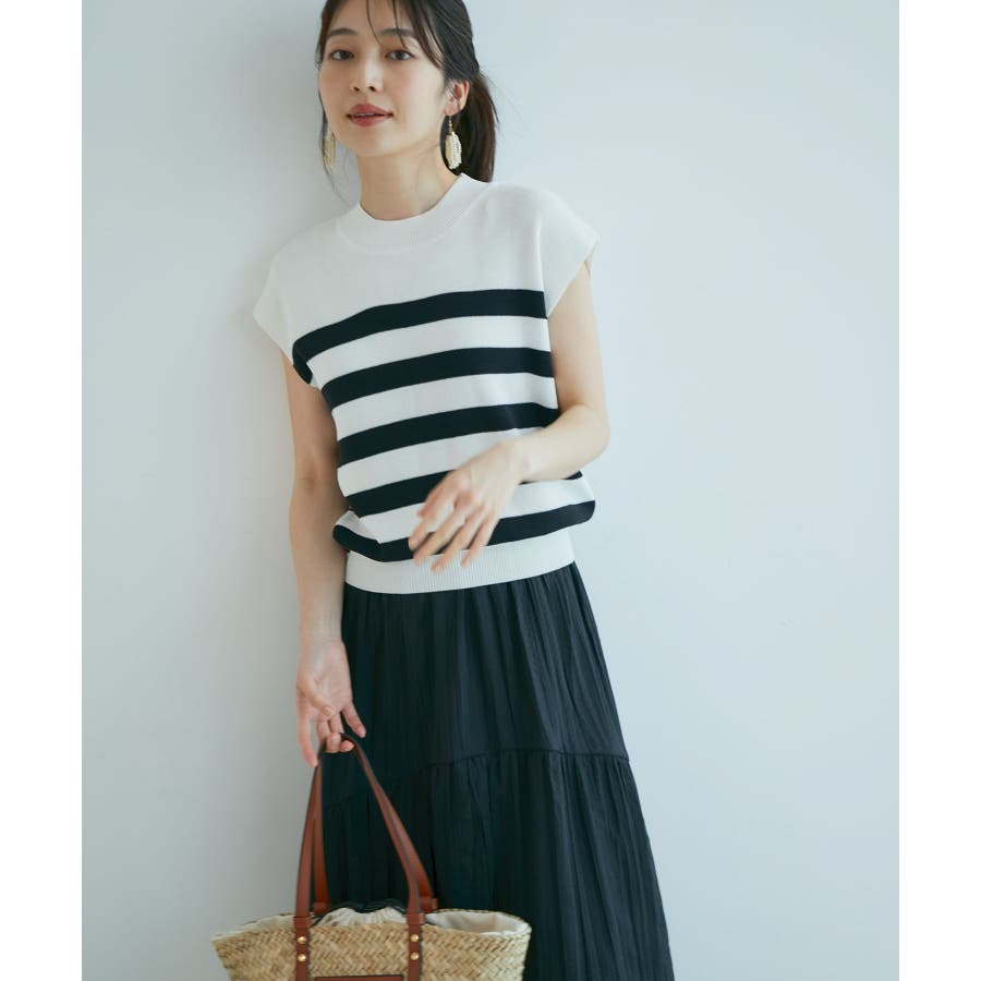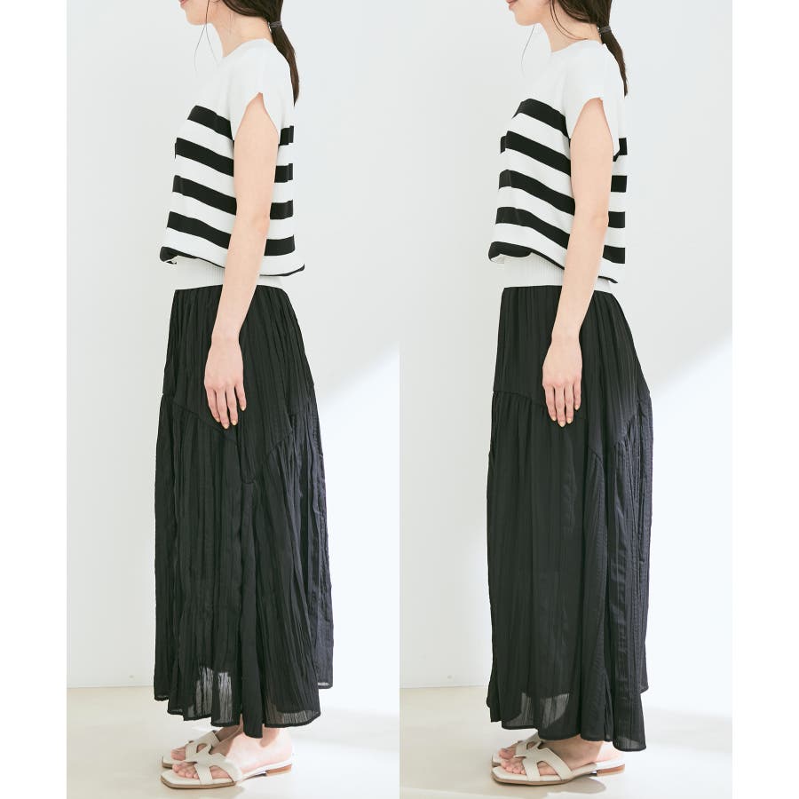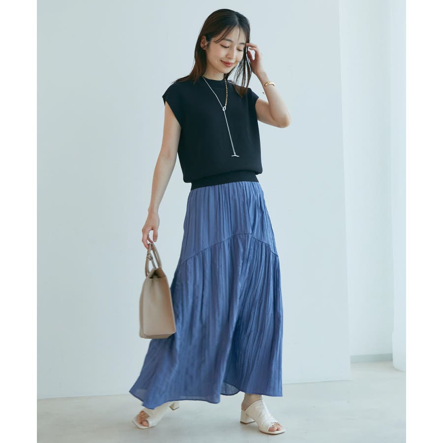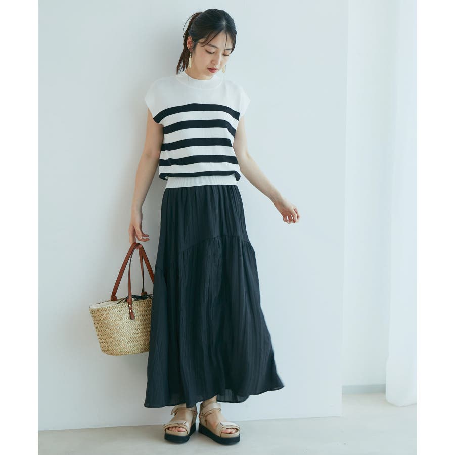 【デザイン・シルエット】 夏のテッパンでもあるフレンチスリーブニットとティアードプリーツスカートをドッキングした一枚で様になるワンピース! 低身長のお客様のニーズにもお応えして着丈のみ5cmの差寸を付けて通常のFサイズにプラスでFSサイズを投入しています! 【素材】 ニット部分はドライタッチの涼し気な素材を使用し、スカート部分は合繊素材のランダムプリーツを施しています。 【カラー】 ブラック×ブルー、ボーダー×ネイビー、アイボリー×イエロー、ラベンダー×ラベンダーの4色展開。 【おすすめのスタイリング】 1枚で綺麗に決まります◎ 足元はグルカサンダルとの合わせがおすすめ! 涼しげなハットをプラスしてアクセントにしても◎ ----------------------------- 裏地:あり 光沢感:なし 透け感:キナリのみややあり ウエスト:ゴム ポケット:なし 伸縮性:ニット部分あり 生地の厚さ:普通 ボタン:なし 季節:春~初秋 ----------------------------- 【モデル着用サイズ】 全色モデル身長:160cm、着用サイズ:F (サイズ比較:左FS、右F) ※画像の商品はサンプルです。 実際の商品と仕様、加工、サイズが若干異なる場合がございます。