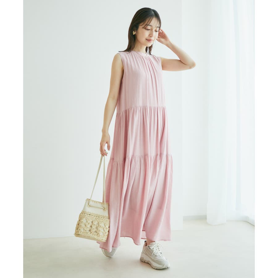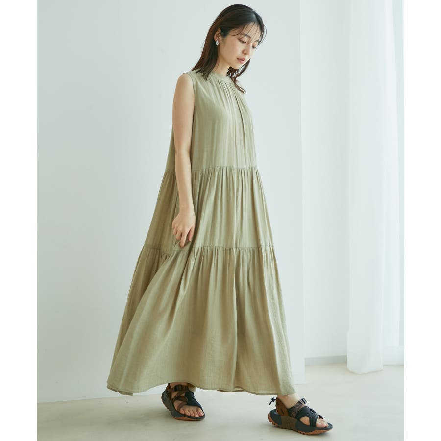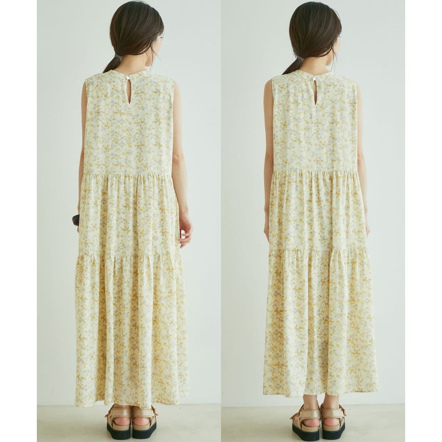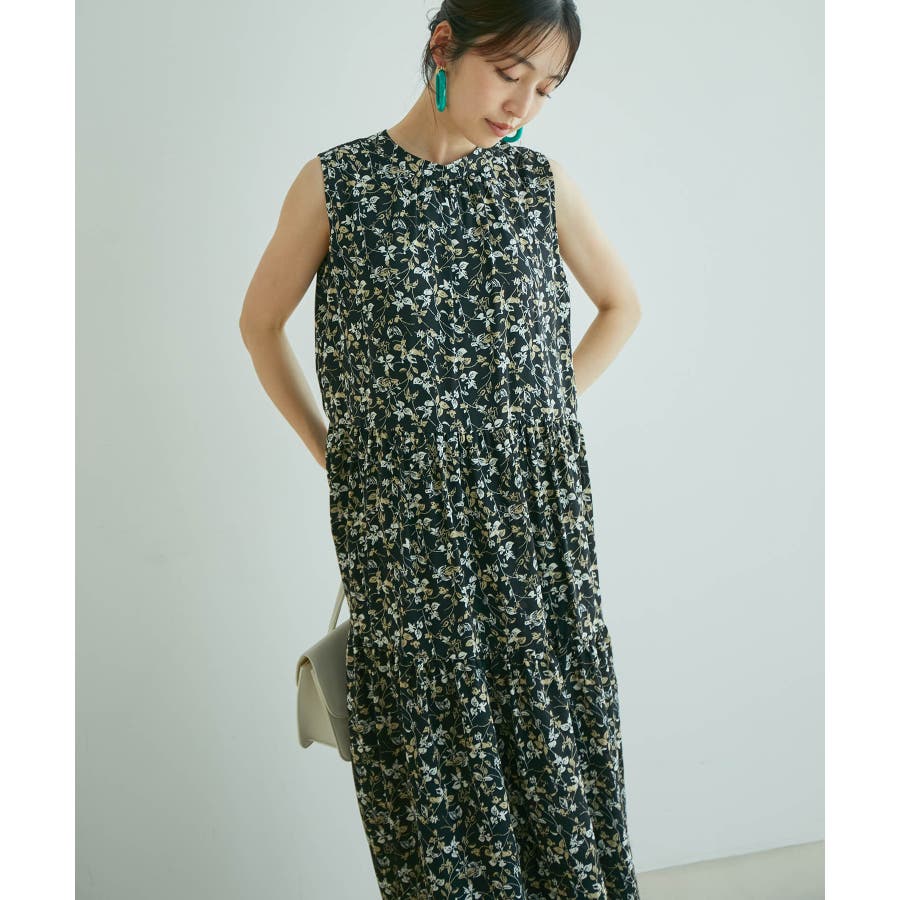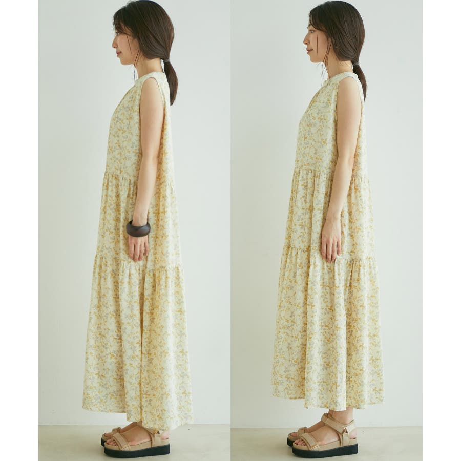 【選べる着丈・洗える】柄アソートスタンドカラーティアードノースリーブワンピース