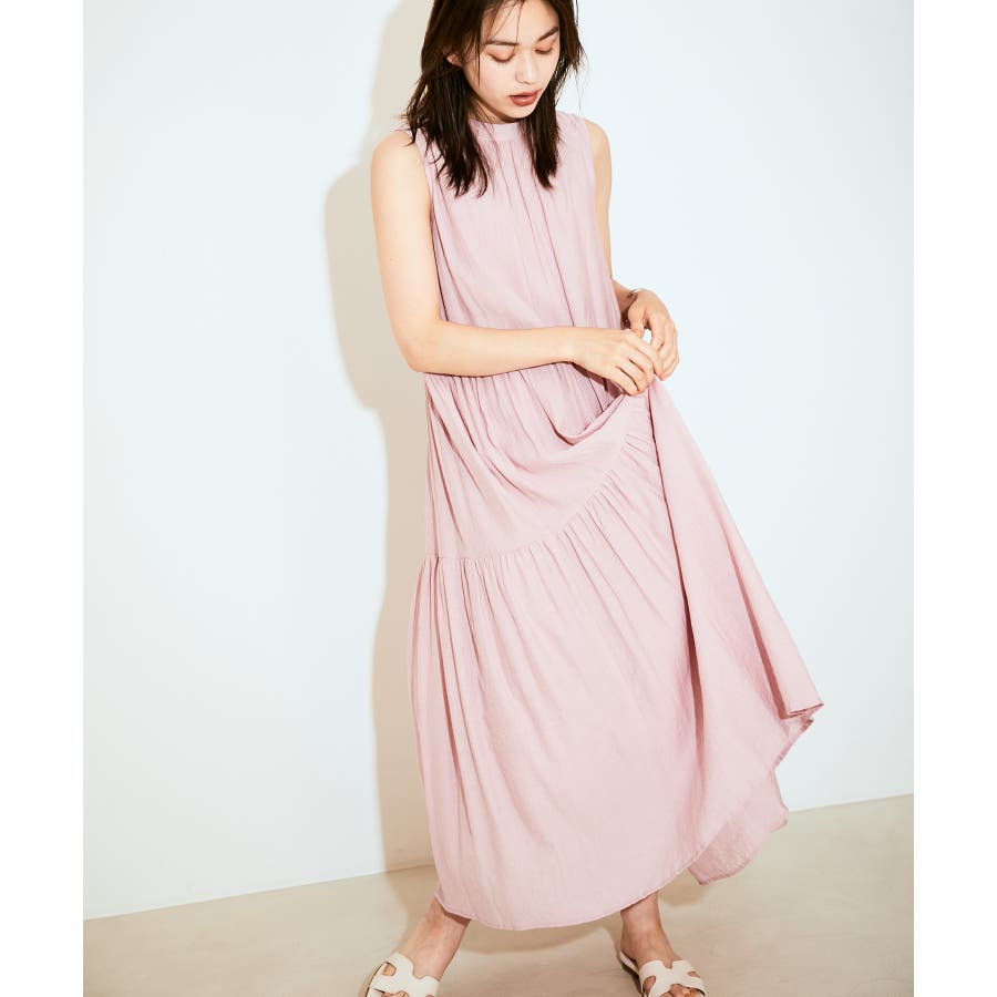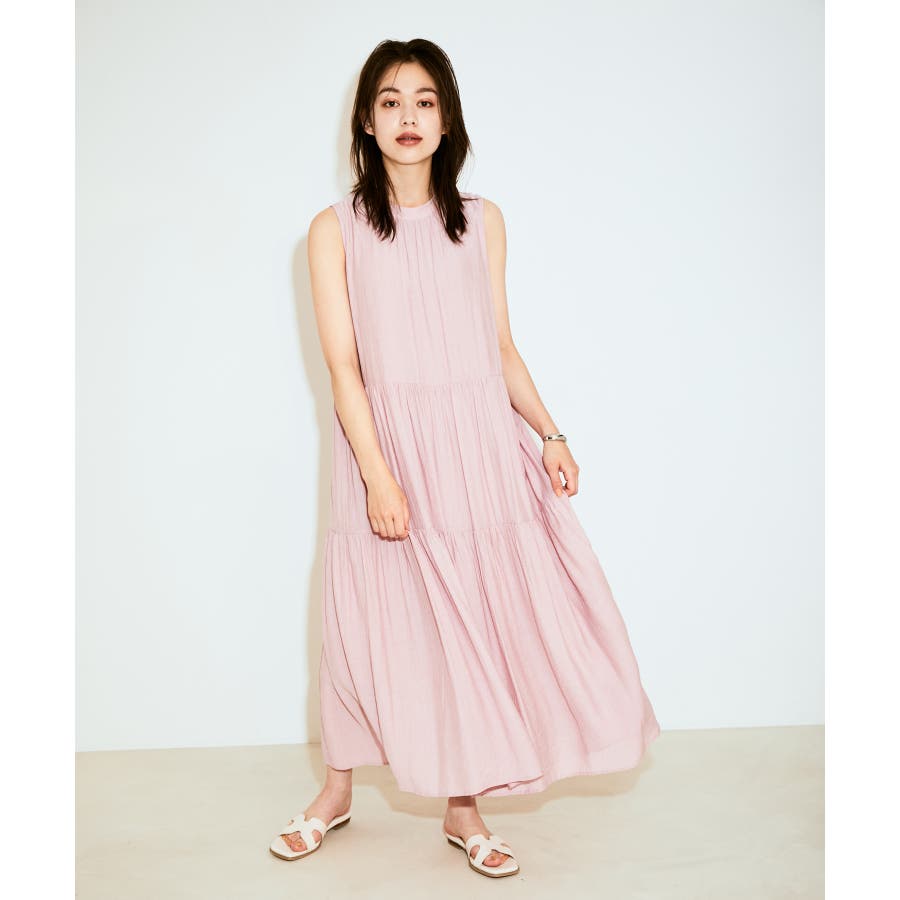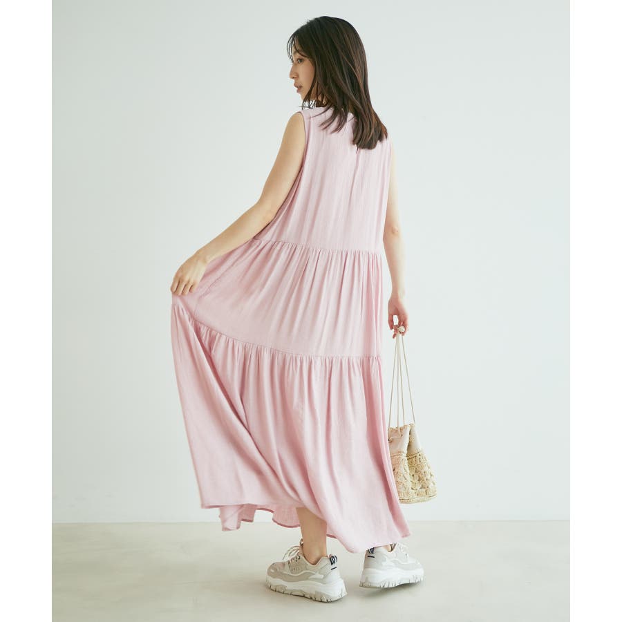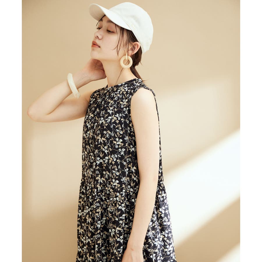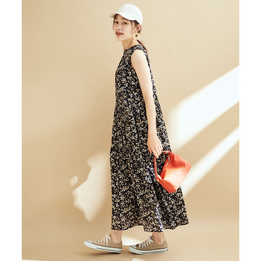 【選べる着丈・洗える】柄アソートスタンドカラーティアードノースリーブワンピース