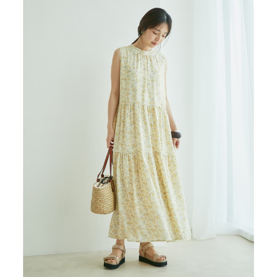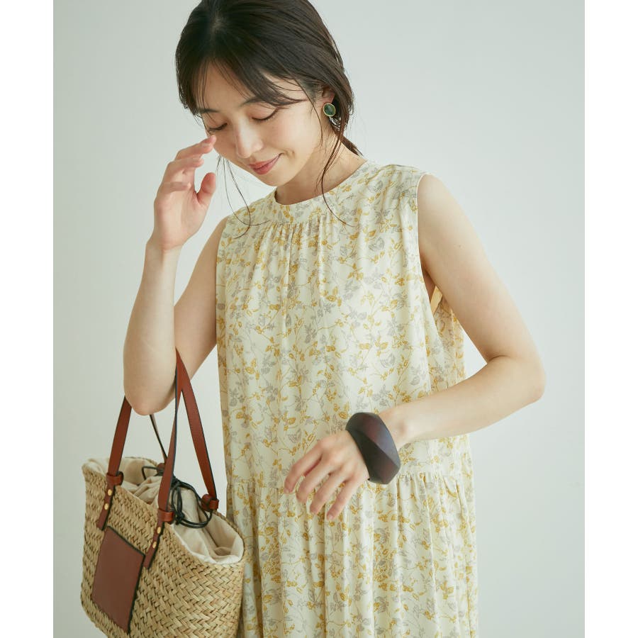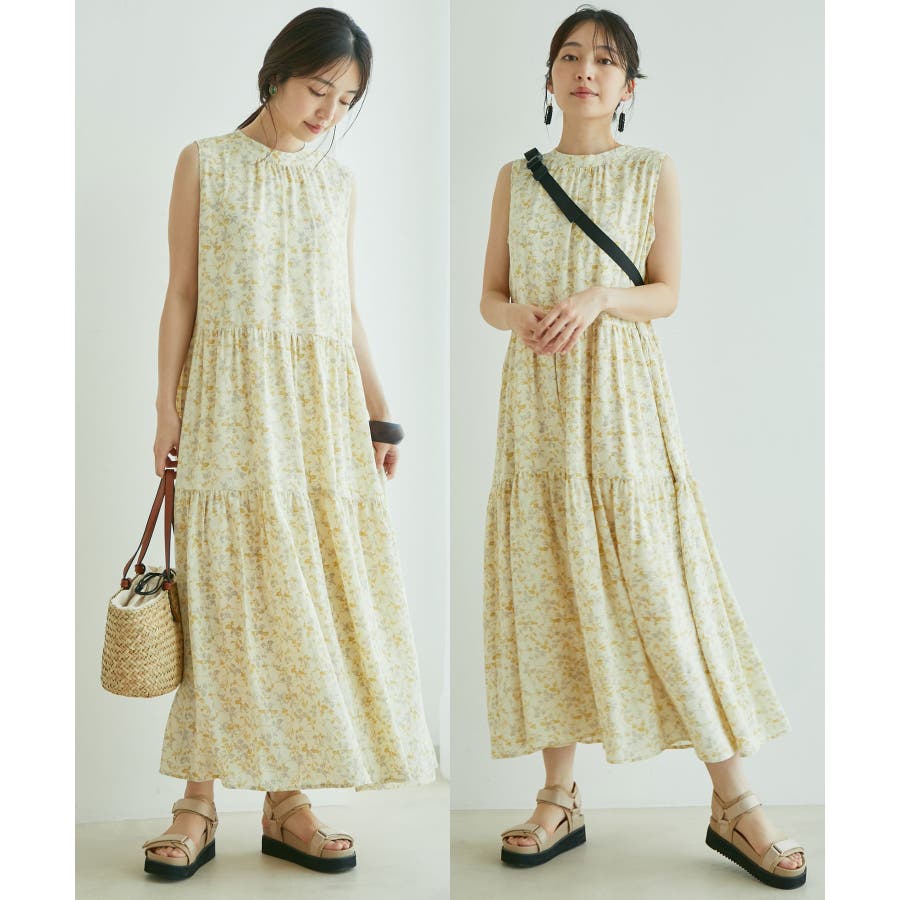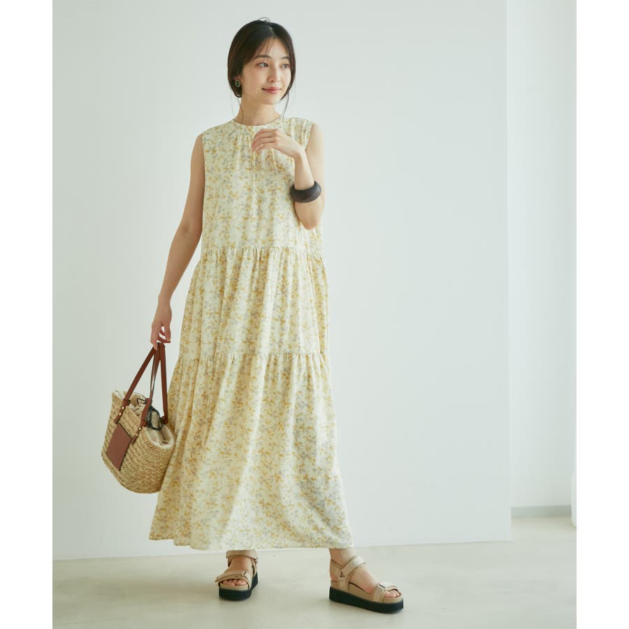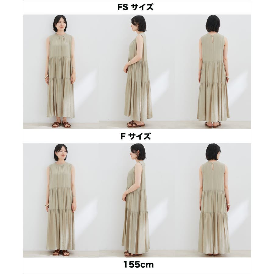 【デザイン・シルエット】 夏のお出かけにヘビーローテーション間違い無しの楽ちんでストレスフリーの着心地の良いティアードワンピースです。 シンプルなリーフ柄は、落ち着きのある華やかさで大人のスタイリングが楽しめます。 サイズはF・FSの2サイズで、お好みや身長に合わせて選んでいただけます。 FはFSより着丈のみ5cm長いお作りです。 【素材】 さらりとしたドライタッチのポリエステル楊柳。 ※カラーによって組成とお手入れ方法が異なります。 ブラック・キナリ系:(表地)ポリエステル 100%(裏地)ポリエステル 100%/洗濯機洗い可能 カーキ系・ピンク:(表地)レーヨン 83% ナイロン 17%(裏地)ポリエステル 100%/手洗い可能 【カラー】 落ち着いたブラック・柔らかなキナリ×イエロー・気分が上がるピンク・日焼けの肌にマッチするライトカーキの4色展開。 花柄と無地の2パターンご用意しました。 【おすすめのスタイリング】 足元は今年らしくグルカサンダルとの合わせがおすすめ! 1枚ではもちろん、シアーカーディガンを肩掛けしてアクセントにしても◎ ----------------------------- 裏地:あり 光沢感:なし 透け感:花柄:ややあり、無地:なし 伸縮性:あり、なし ポケット:なし ボタン:後ろ首元にあり 生地の厚さ:普通 季節:春~初秋 ----------------------------- 【モデル着用サイズ】 全色モデル身長:160cm、着用サイズ:F 詳細カット左:F、右:FS 詳細31~37枚目モデル身長:167cm、着用サイズ:F ※画像の商品はサンプルです。 実際の商品と仕様、加工、サイズが若干異なる場合がございます。