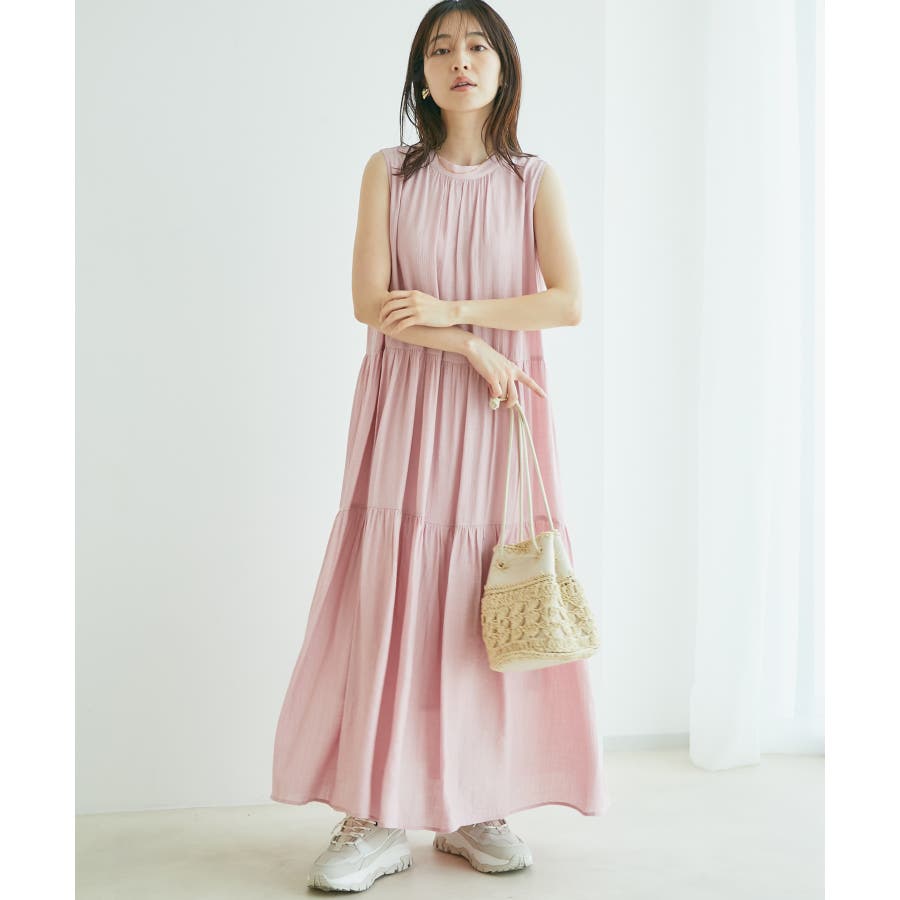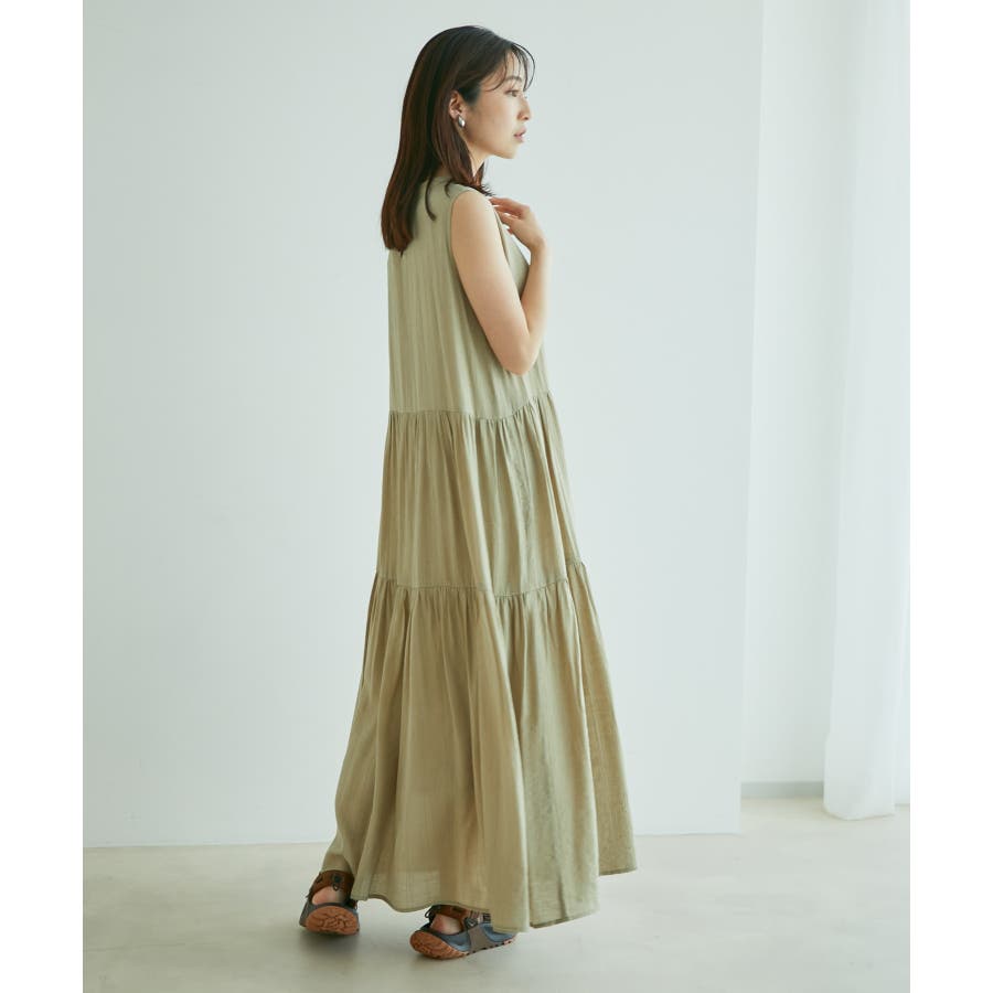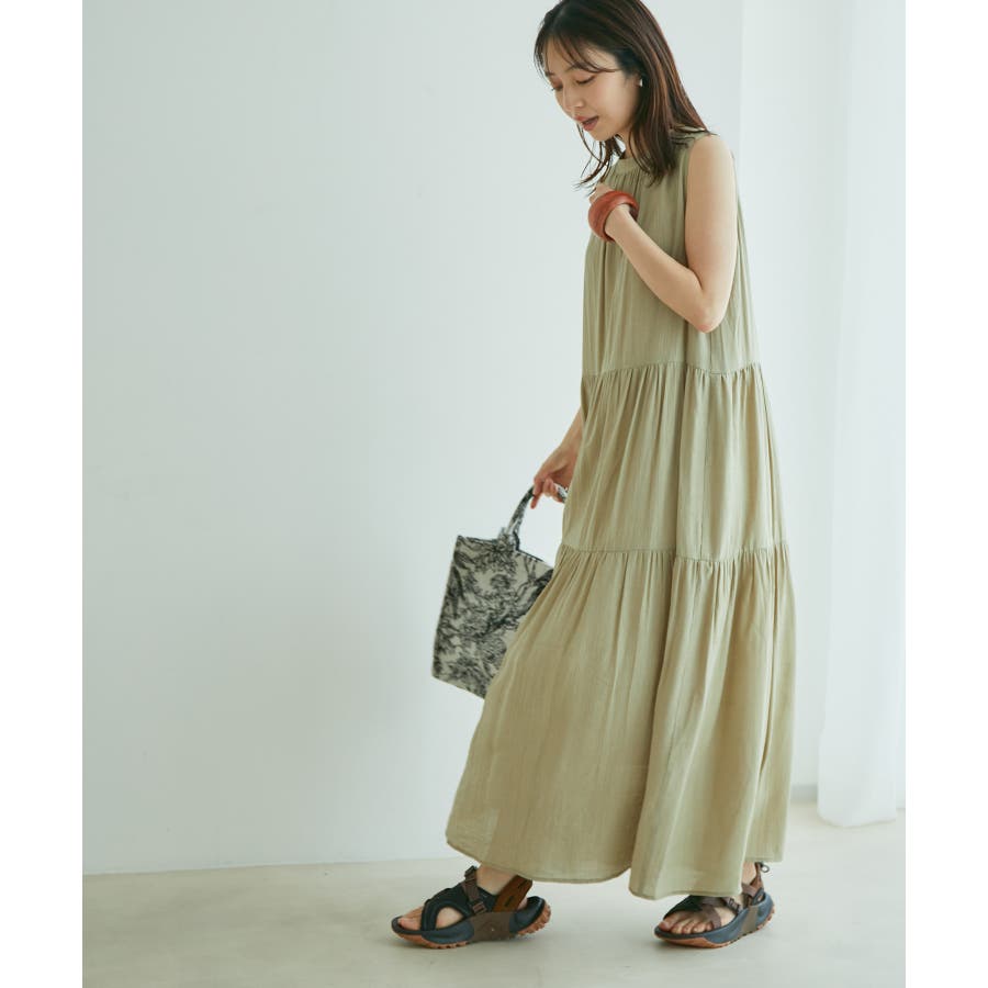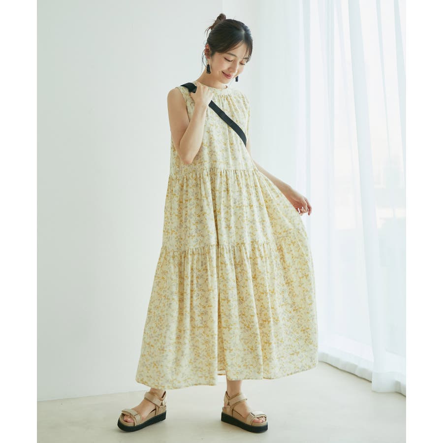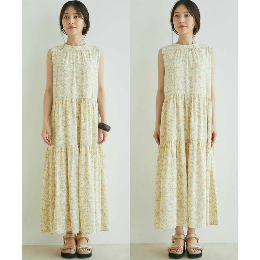 【デザイン・シルエット】 夏のお出かけにヘビーローテーション間違い無しの楽ちんでストレスフリーの着心地の良いティアードワンピースです。 シンプルなリーフ柄は、落ち着きのある華やかさで大人のスタイリングが楽しめます。 サイズはF・FSの2サイズで、お好みや身長に合わせて選んでいただけます。 FはFSより着丈のみ5cm長いお作りです。 【素材】 さらりとしたドライタッチのポリエステル楊柳。 ※カラーによって組成とお手入れ方法が異なります。 ブラック・キナリ系:(表地)ポリエステル 100%(裏地)ポリエステル 100%/洗濯機洗い可能 カーキ系・ピンク:(表地)レーヨン 83% ナイロン 17%(裏地)ポリエステル 100%/手洗い可能 【カラー】 落ち着いたブラック・柔らかなキナリ×イエロー・気分が上がるピンク・日焼けの肌にマッチするライトカーキの4色展開。 花柄と無地の2パターンご用意しました。 【おすすめのスタイリング】 足元は今年らしくグルカサンダルとの合わせがおすすめ! 1枚ではもちろん、シアーカーディガンを肩掛けしてアクセントにしても◎ ----------------------------- 裏地:あり 光沢感:なし 透け感:花柄:ややあり、無地:なし 伸縮性:あり、なし ポケット:なし ボタン:後ろ首元にあり 生地の厚さ:普通 季節:春~初秋 ----------------------------- 【モデル着用サイズ】 全色モデル身長:160cm、着用サイズ:F 詳細カット左:F、右:FS 詳細31~37枚目モデル身長:167cm、着用サイズ:F ※画像の商品はサンプルです。 実際の商品と仕様、加工、サイズが若干異なる場合がございます。