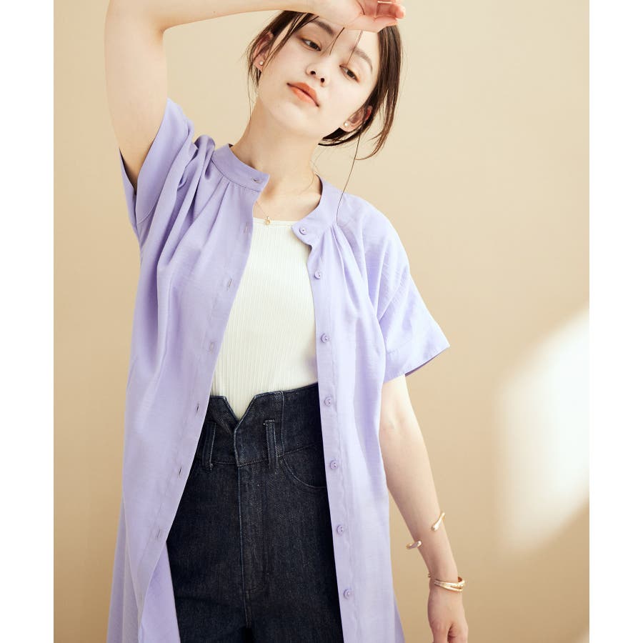 【デザイン・シルエット】 前後2WAYのシャツワンピースです。 衿元タックのドレープ感が目を惹くデザインポイント◎ 肌なじみの良いしなやかな素材感と微光沢が女性らしい上品さを演出します。 取り外し可能なベルト付きで、様々な着こなしをお楽しみいただけます。 FSサイズはFサイズより着丈のみ5cm短いサイズ感です。 【素材】 程よくハリがありつつ柔らかな素材感。 【カラー】 使い勝手の良い無地3色と大人な花柄の全4色展開。 【おすすめのスタイリング】 パンプスやサンダル合わせの上品な着こなしが◎ 前開きの羽織として、パンツやデニムとのレイヤードでカジュアルMIXもおすすめです! ----------------------------- 裏地:なし 光沢感:ややあり 透け感:なし 伸縮性:なし ポケット:なし ボタン:あり 生地の厚さ:普通 その他仕様:取り外し可能なベルト付き 季節:春~秋 ----------------------------- 【モデル着用サイズ】 全色モデル身長:160cm、着用サイズ:F ラベンダー着用モデル身長:167cm、着用サイズ:F ベージュ着用モデル身長:161cm、着用サイズ:F ※画像の商品はサンプルです。 実際の商品と仕様、加工、サイズが若干異なる場合がございます。