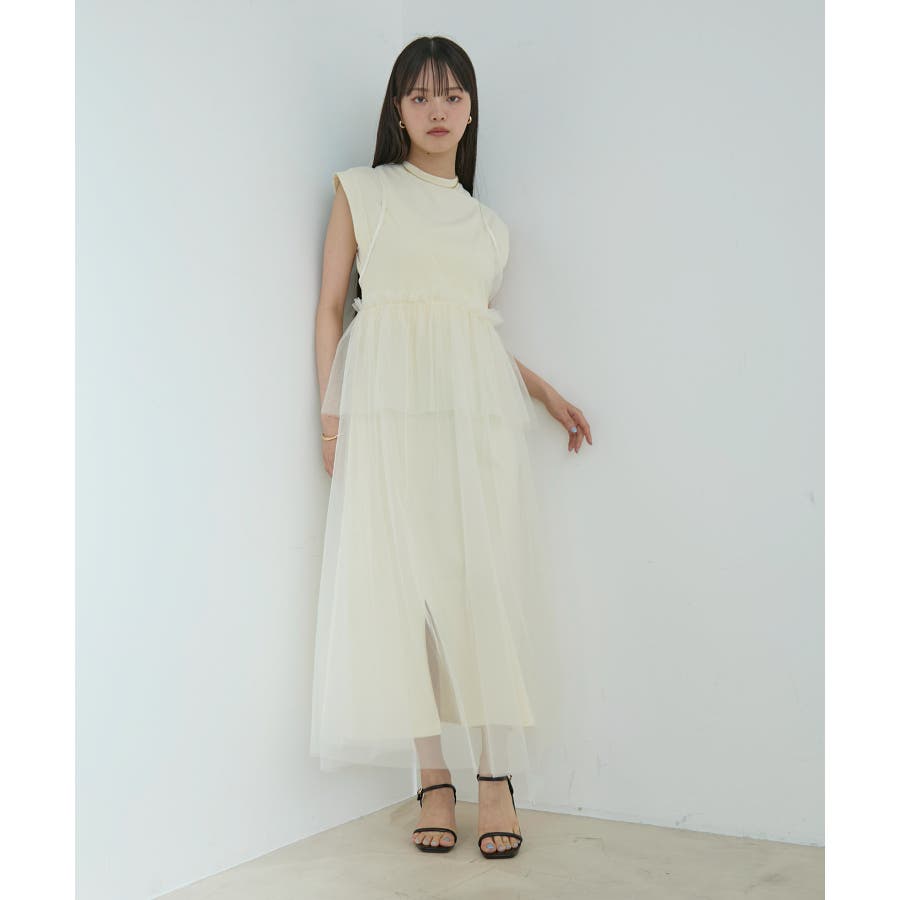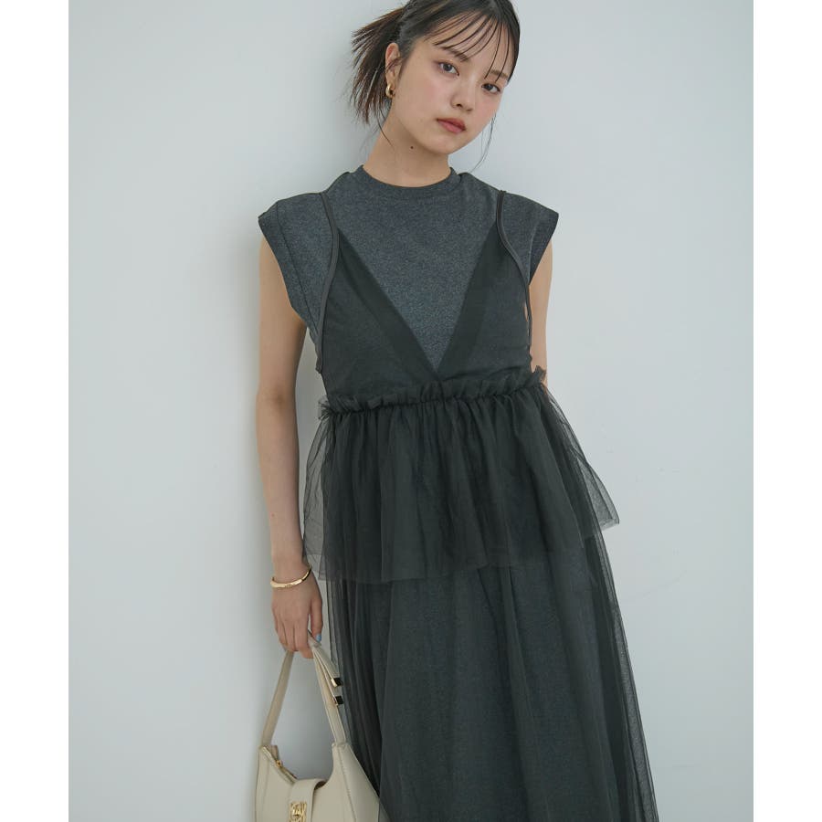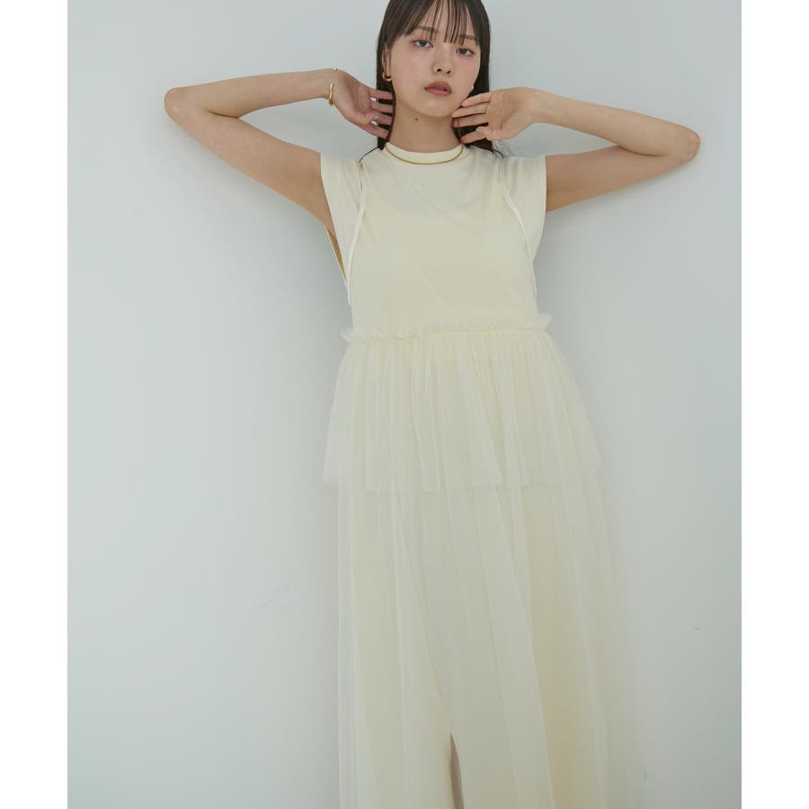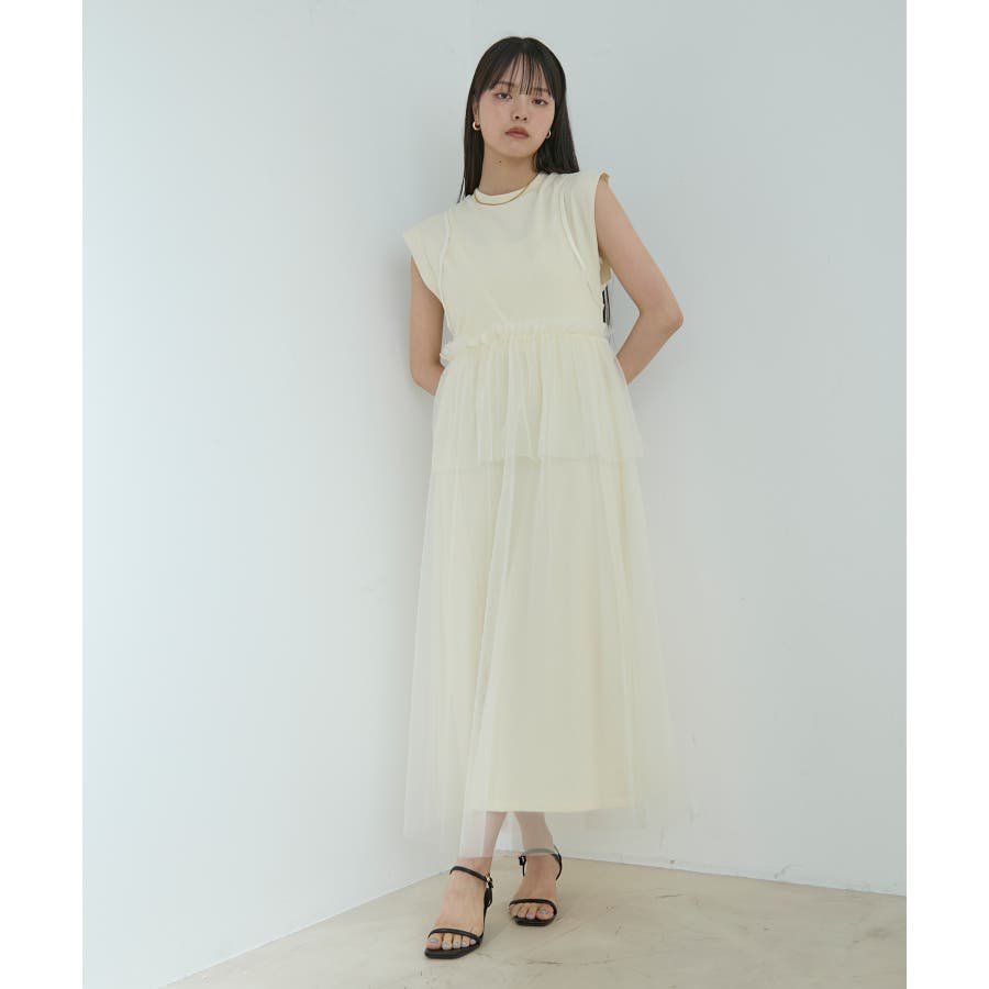 ◆2024春夏◆ 【デザイン・シルエット】 裏毛カットソーとトレンドのチュールをドッキングしたワンピース。