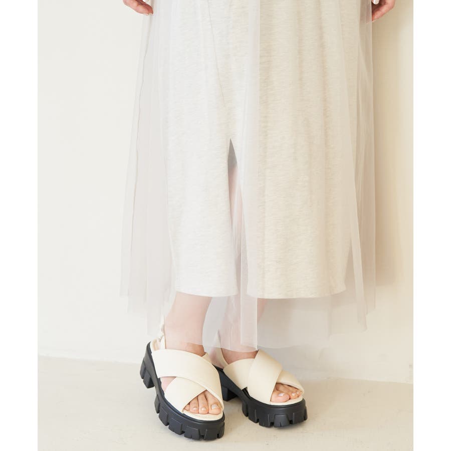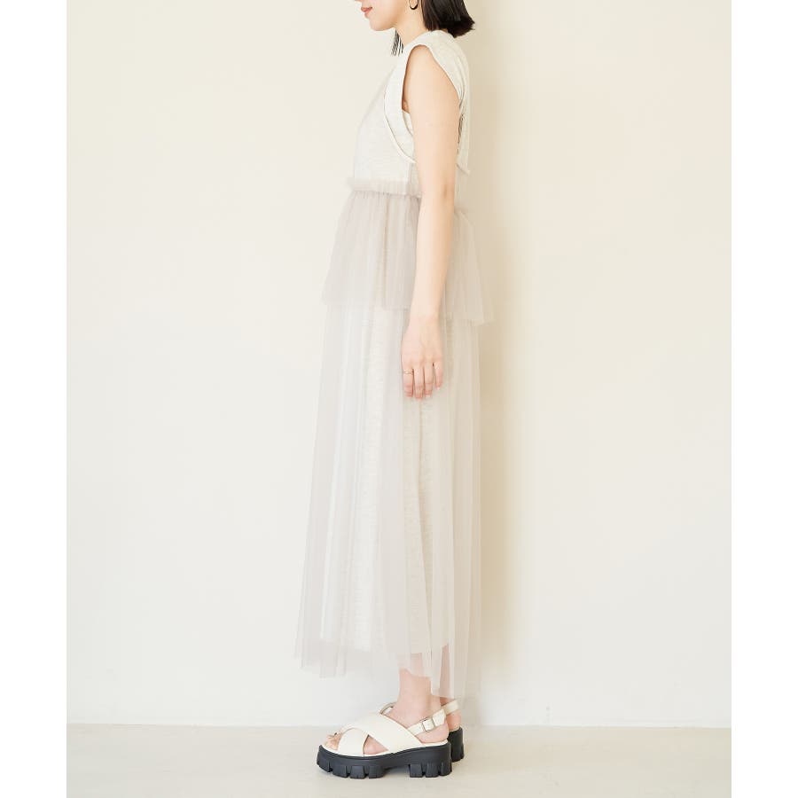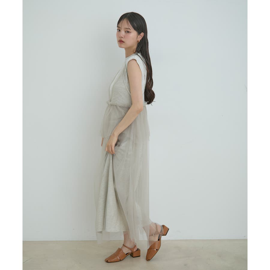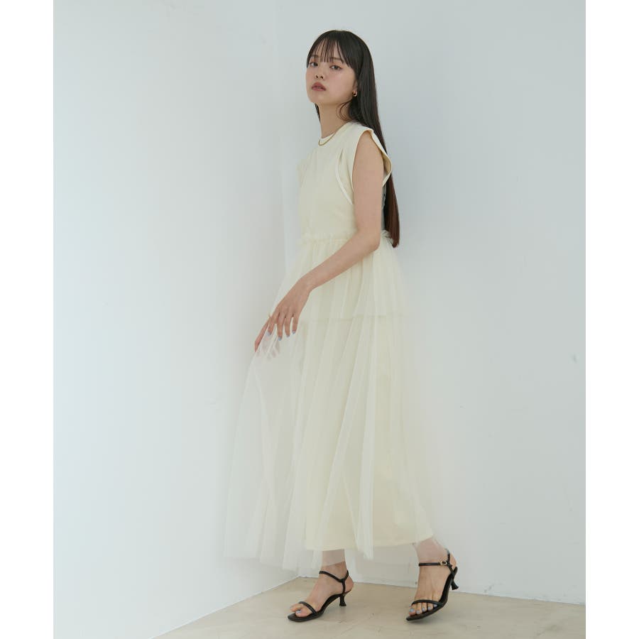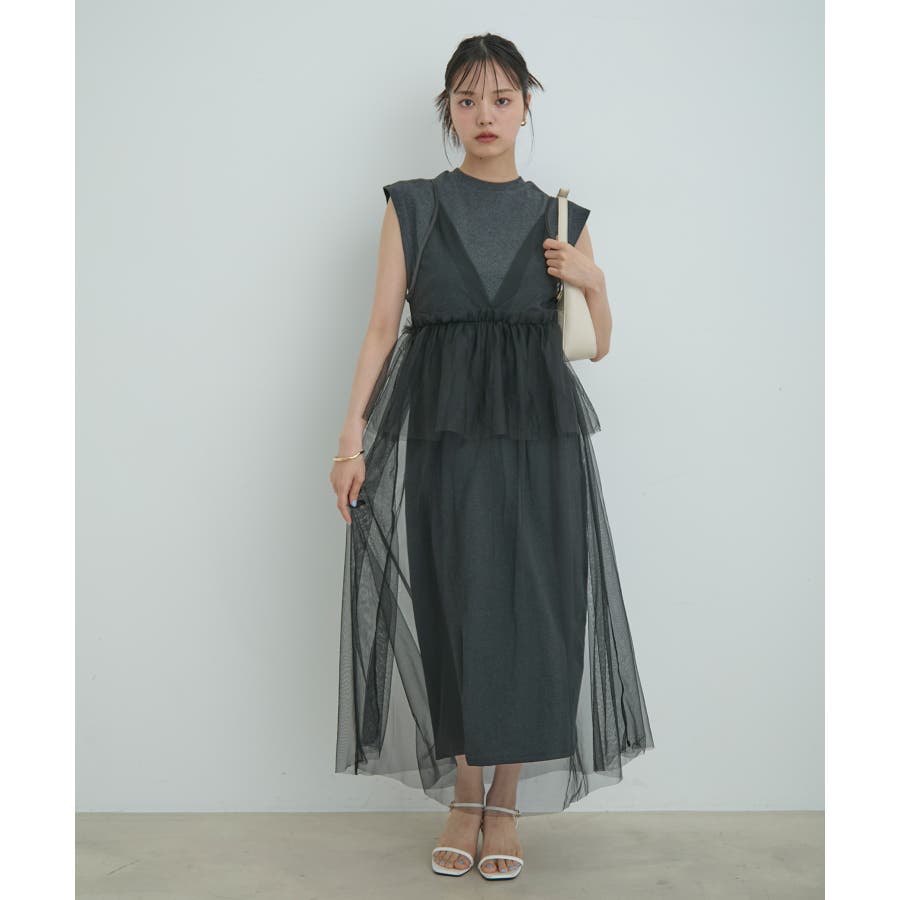 ◆2024春夏◆ 【デザイン・シルエット】 裏毛カットソーとトレンドのチュールをドッキングしたワンピース。