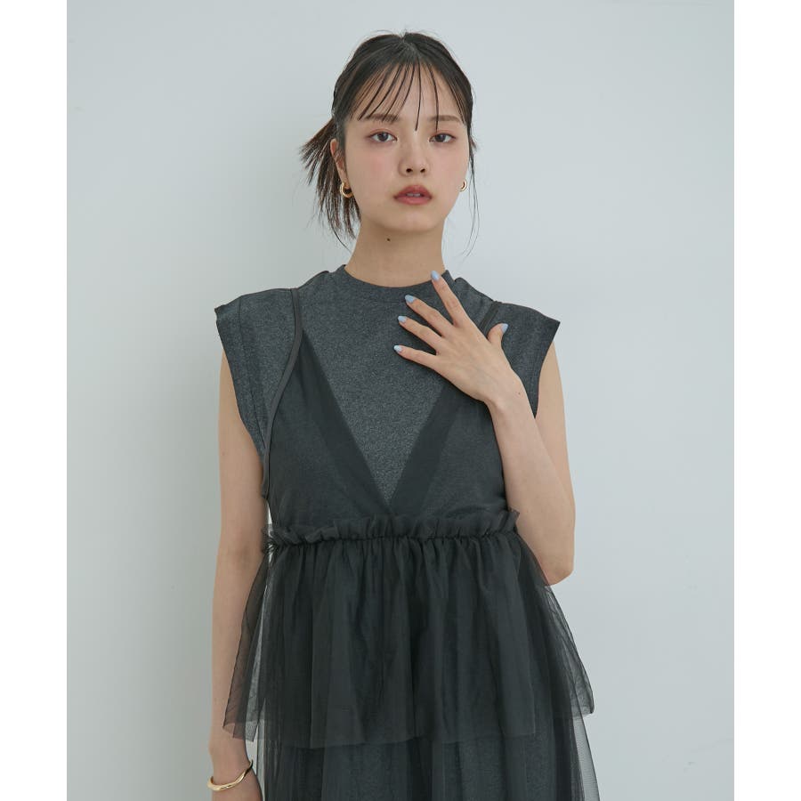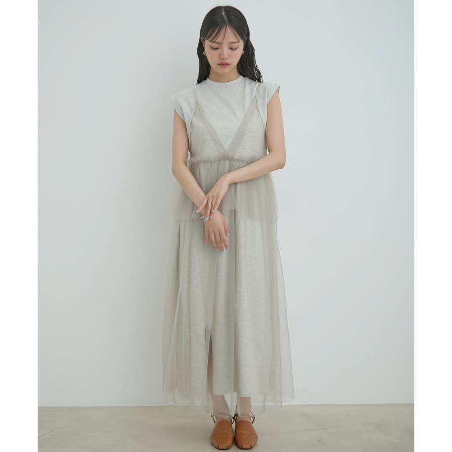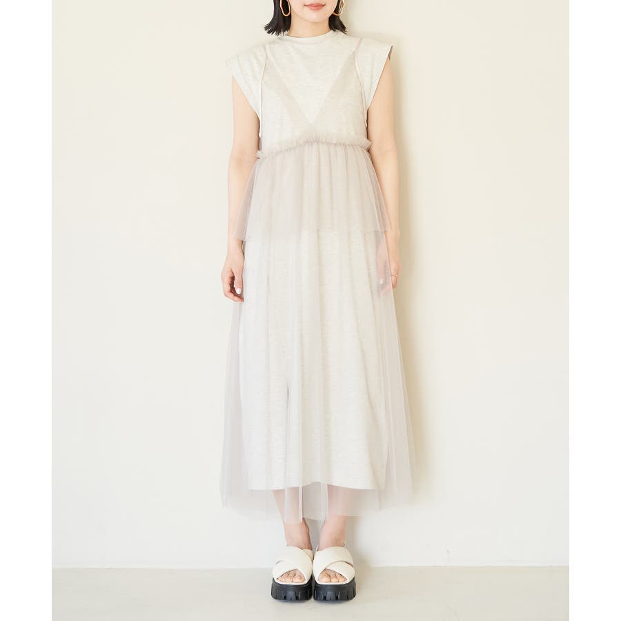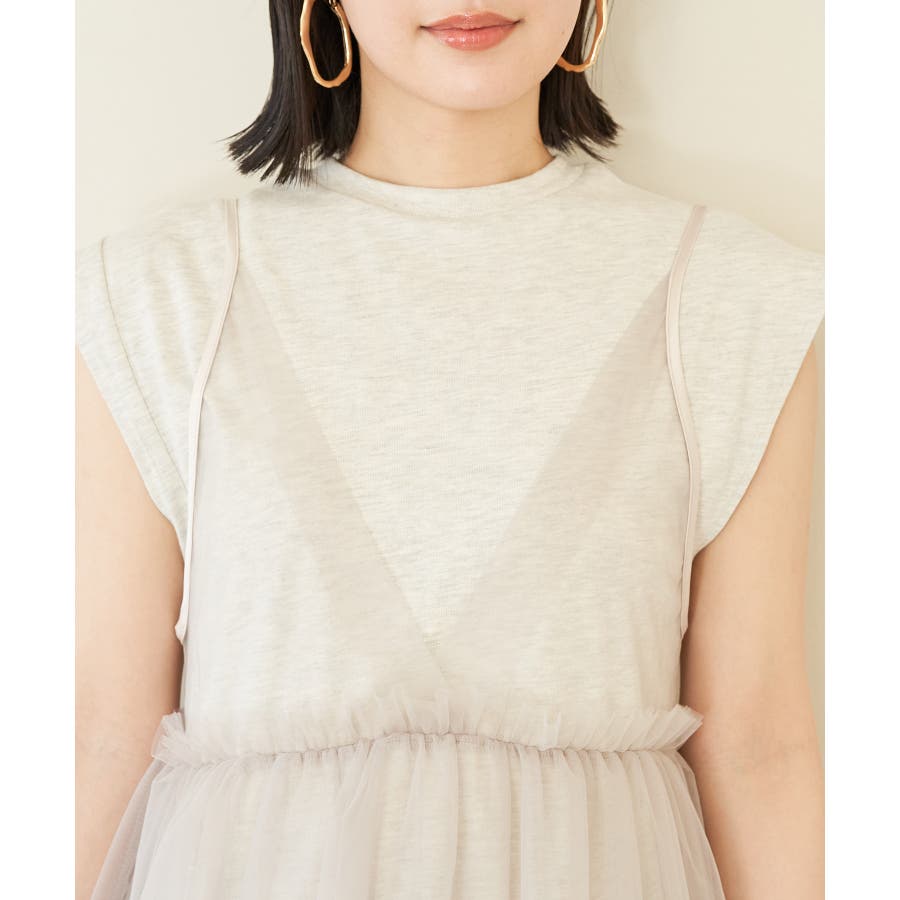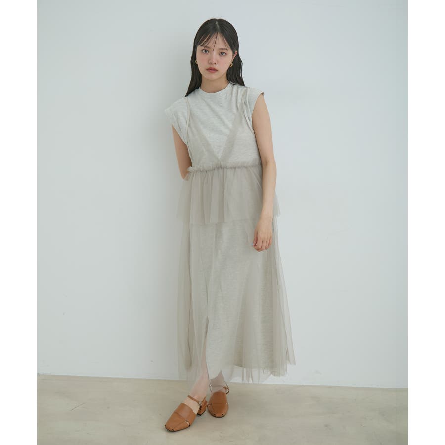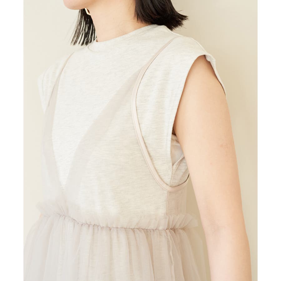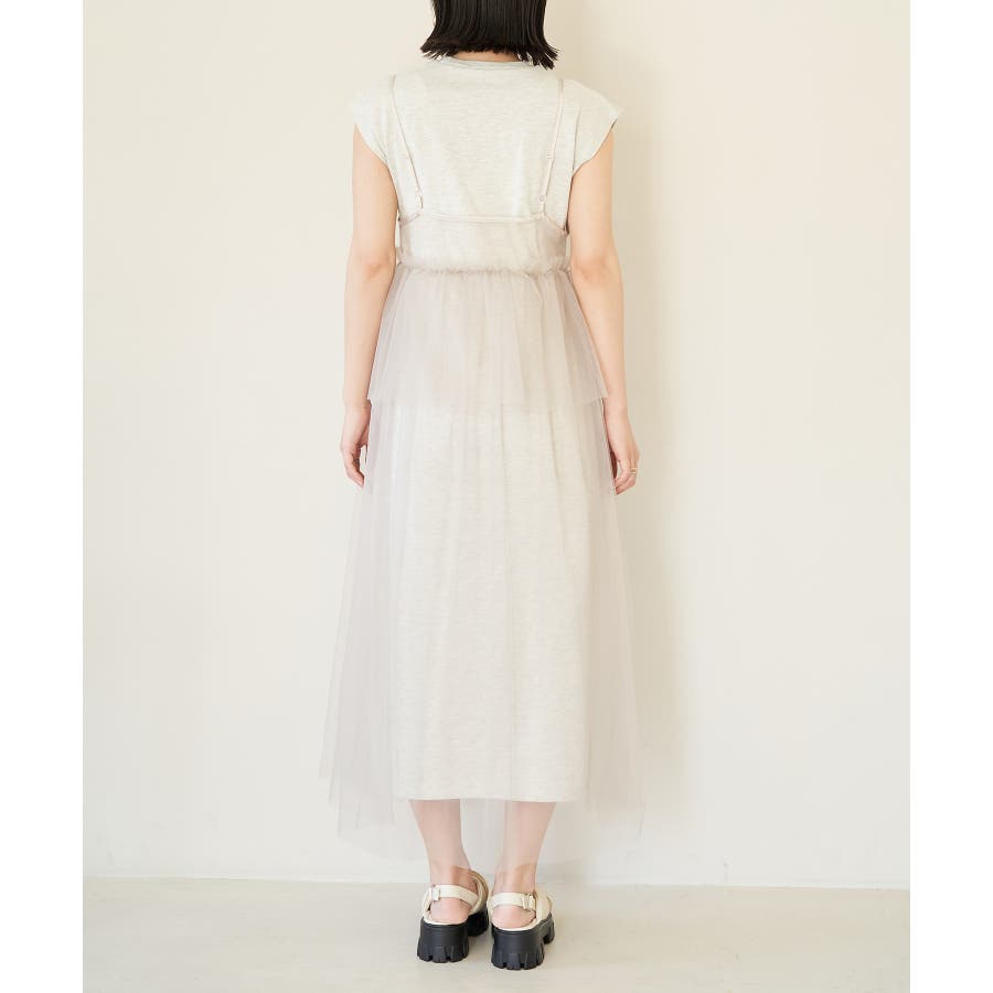 【洗える】チュールコンビカットワンピース