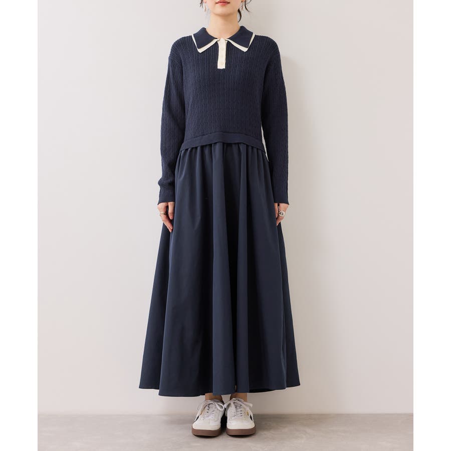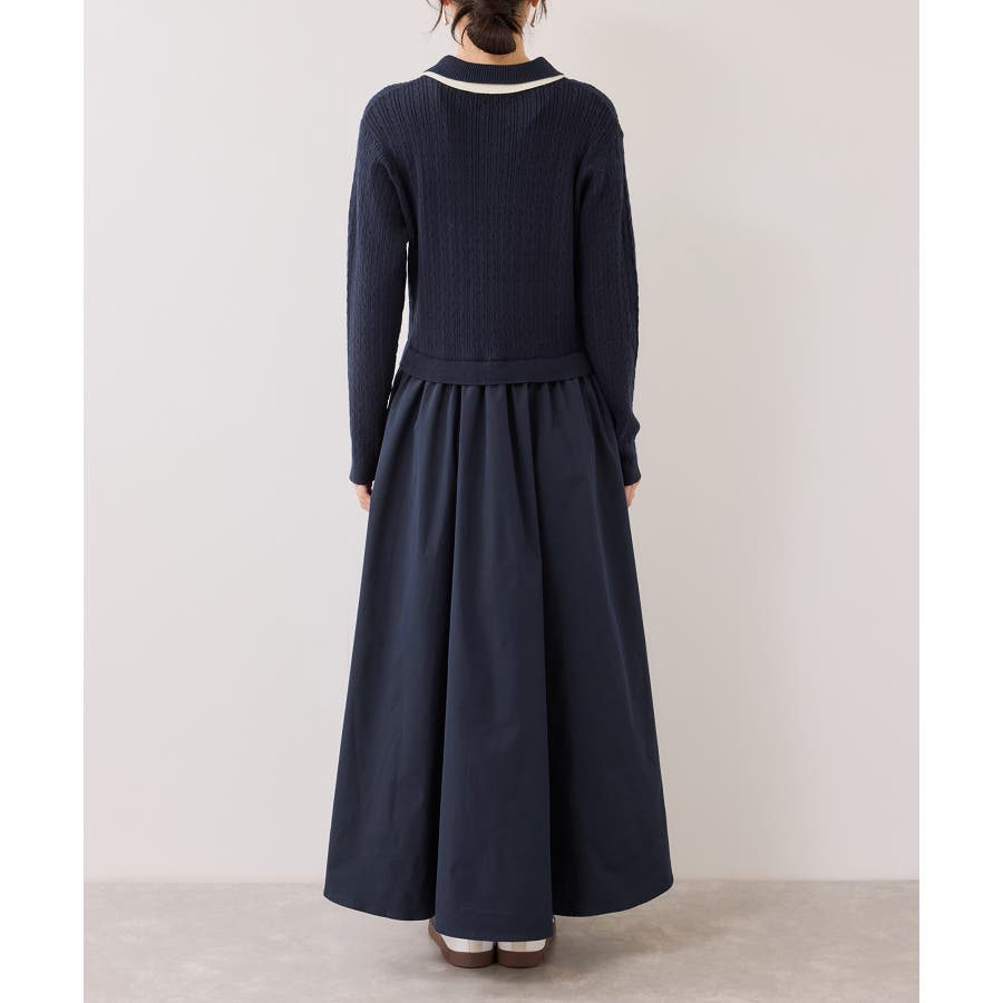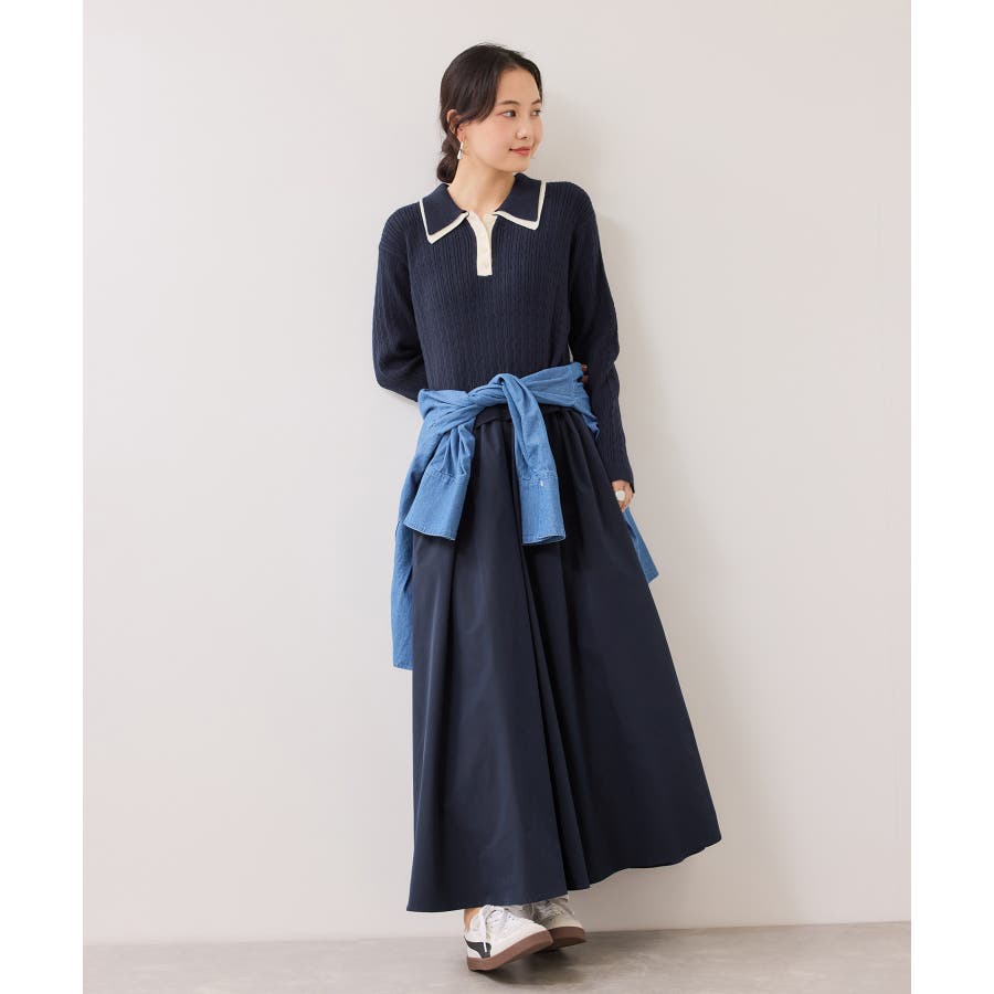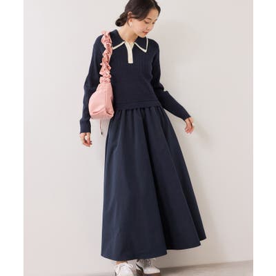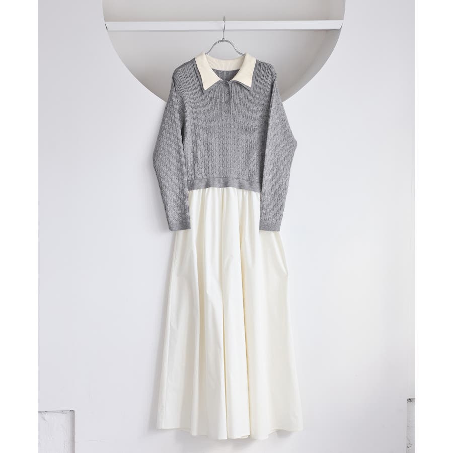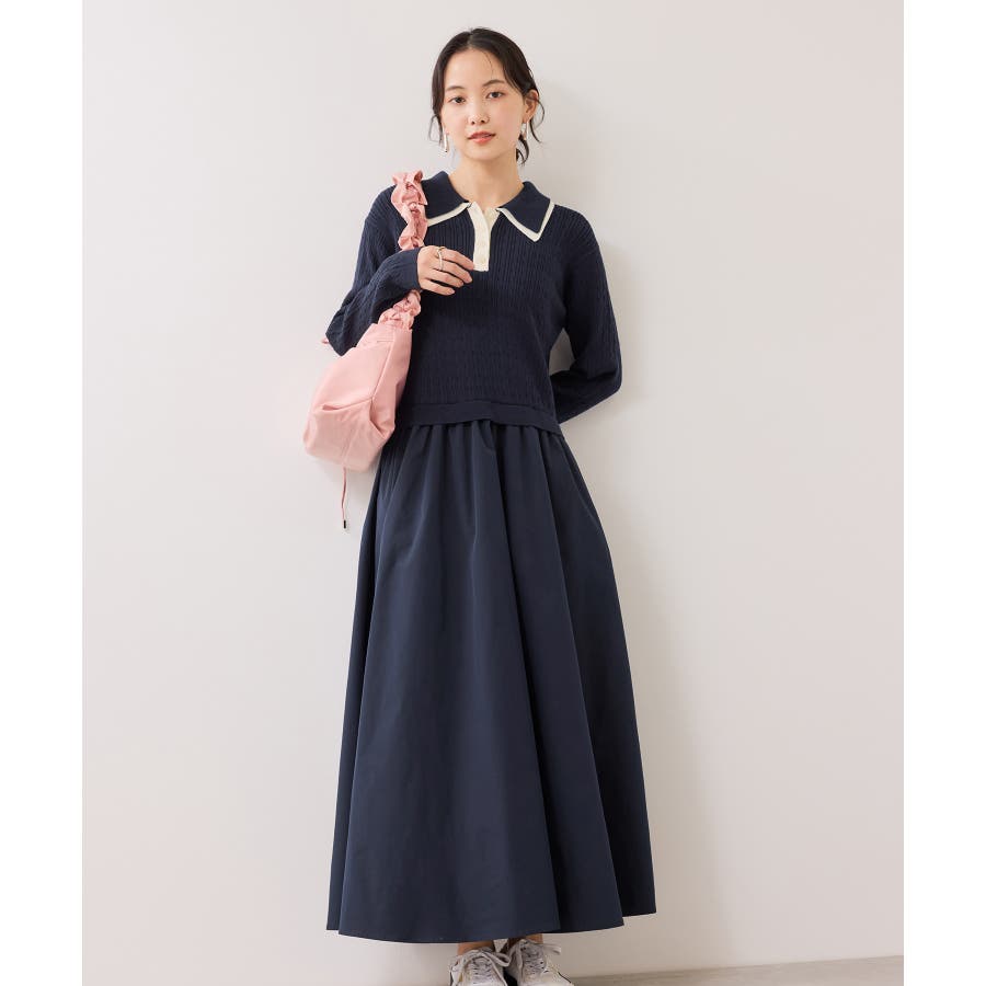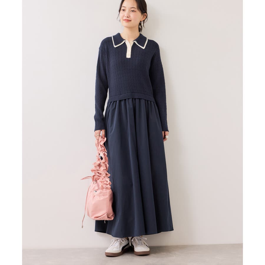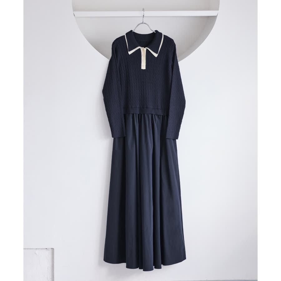 ダブルカラーポロニットドッキングワンピース