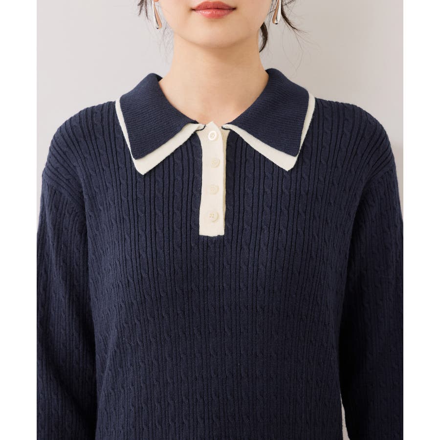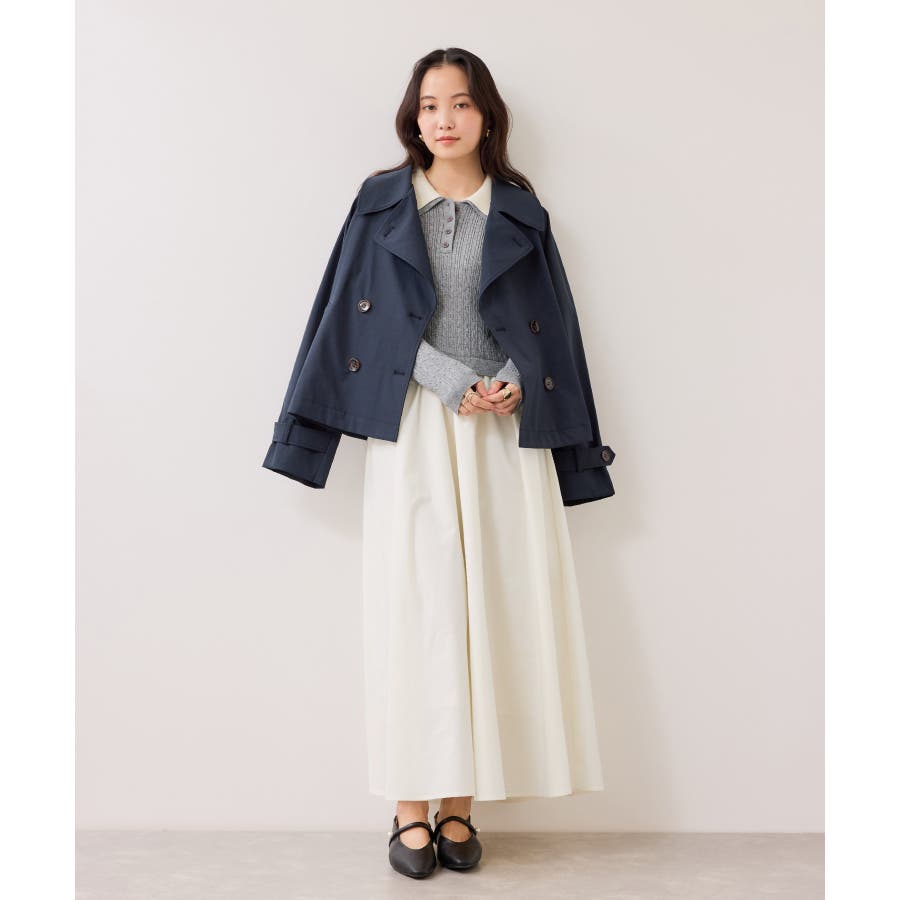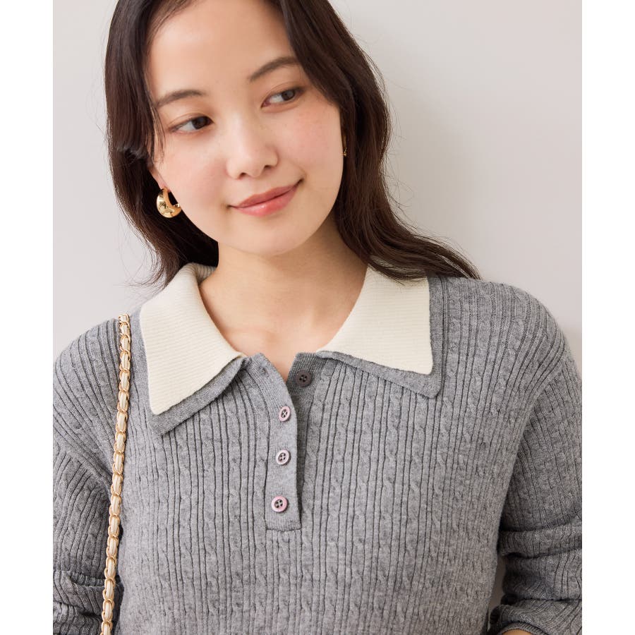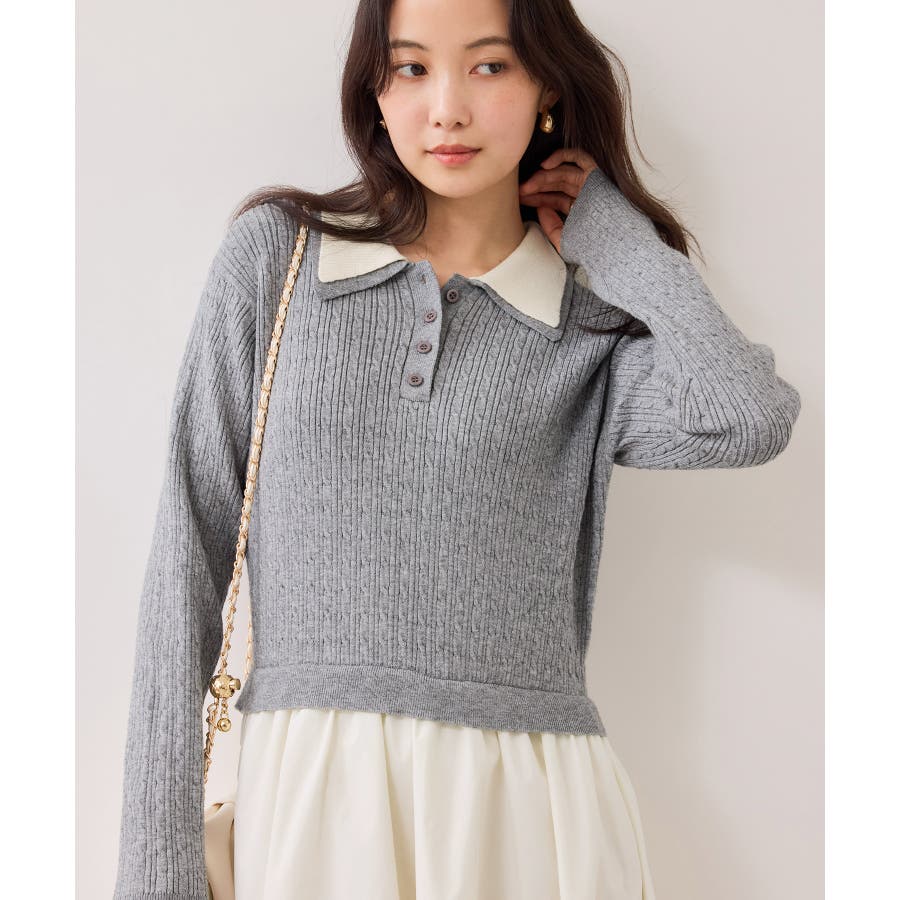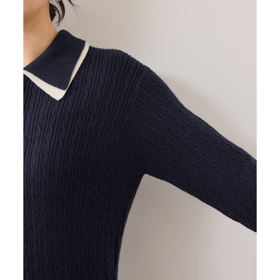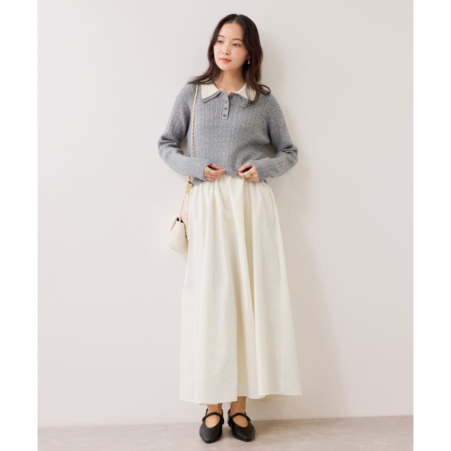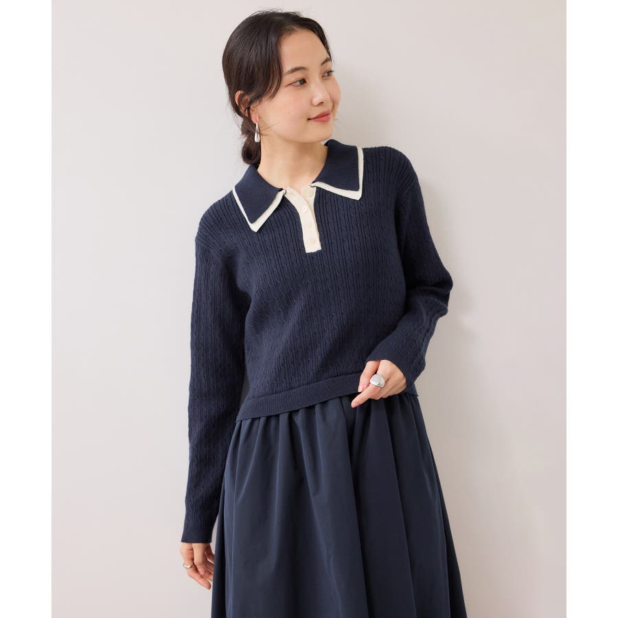 コンパクトなトップスに裾がふんわりと広がったスカートでメリハリのあるシルエット。トップス部分は細いケーブル編み。襟周りはダブルカラーと配色使いでトレンド感のある1枚。お出かけや通勤にも着回し可能。着るだけでこなれ感のあるスタイリングが完成します!