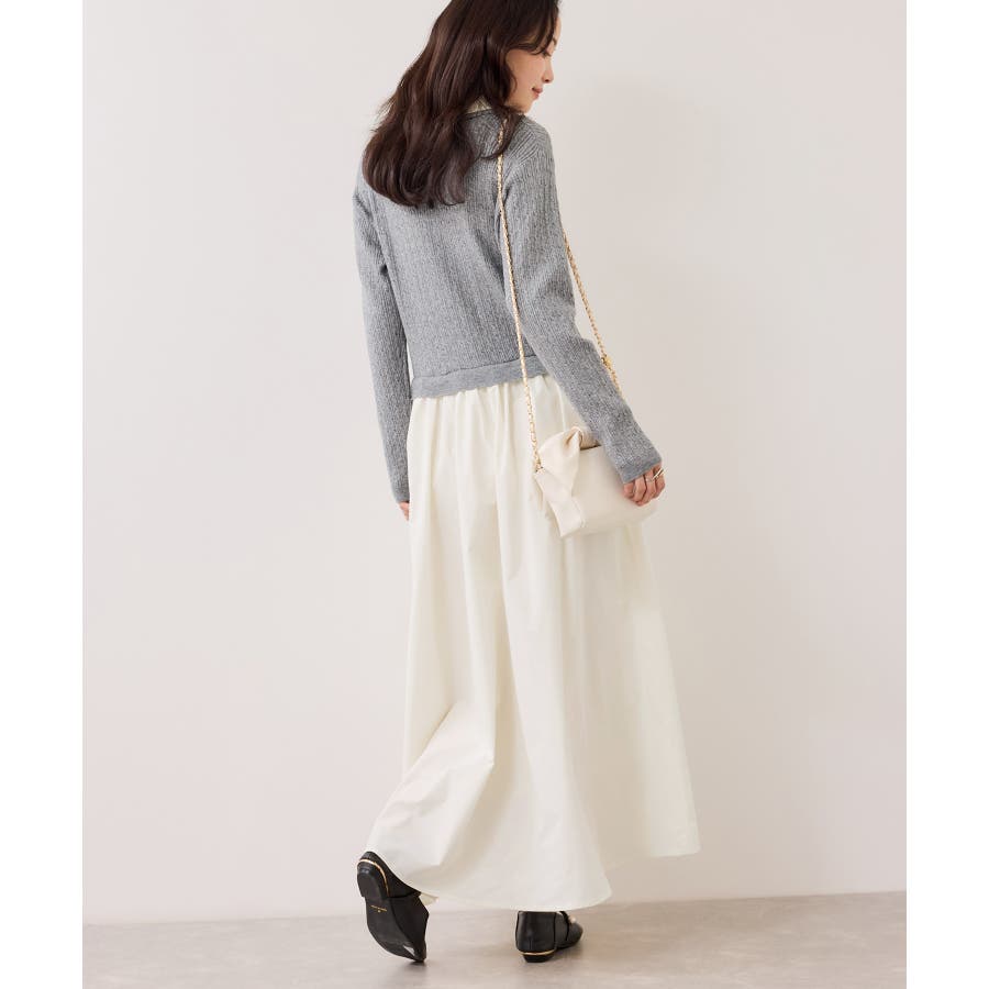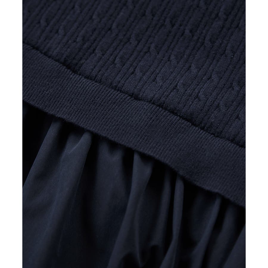 トップス部分は柔らかく肌触りの良いケーブル編みのニット。スカート部分は程よく張り感のあるタフタ素材です。