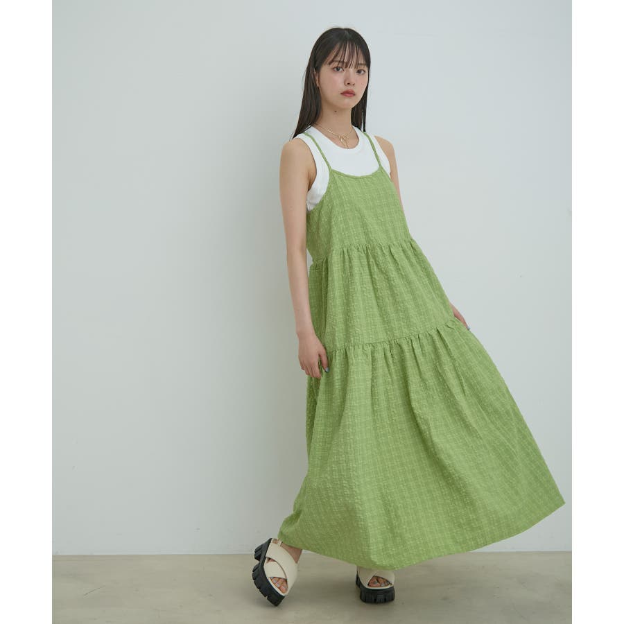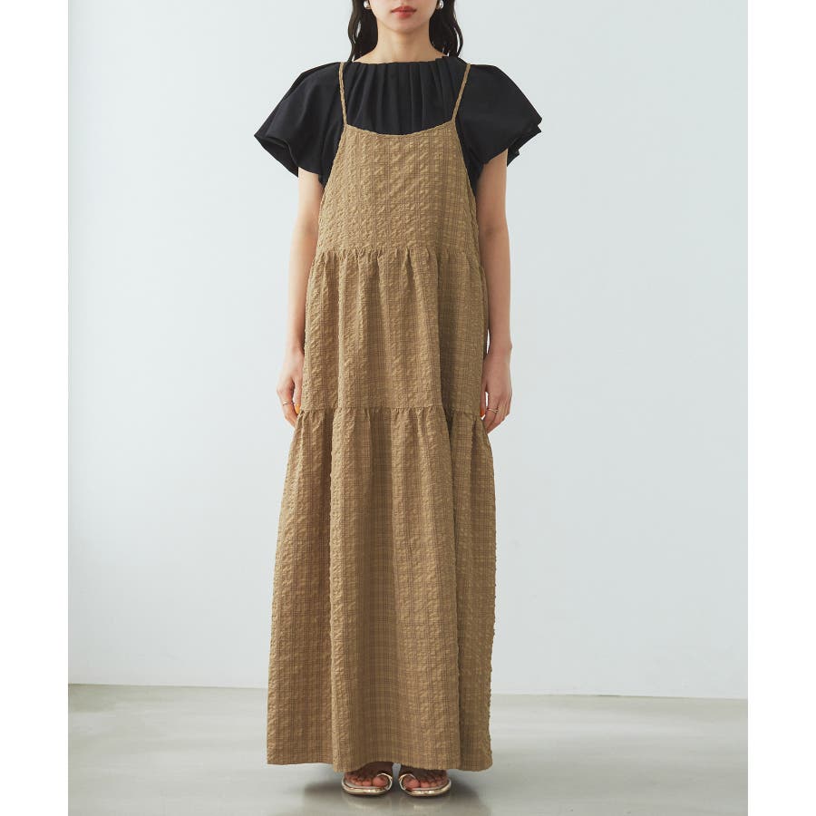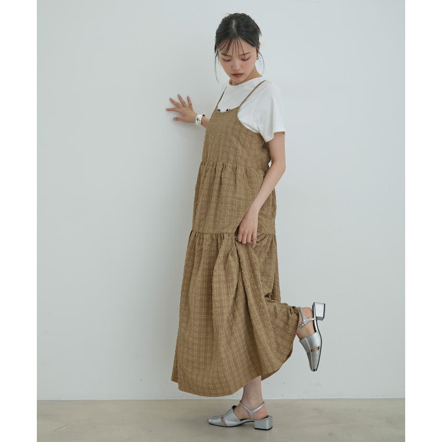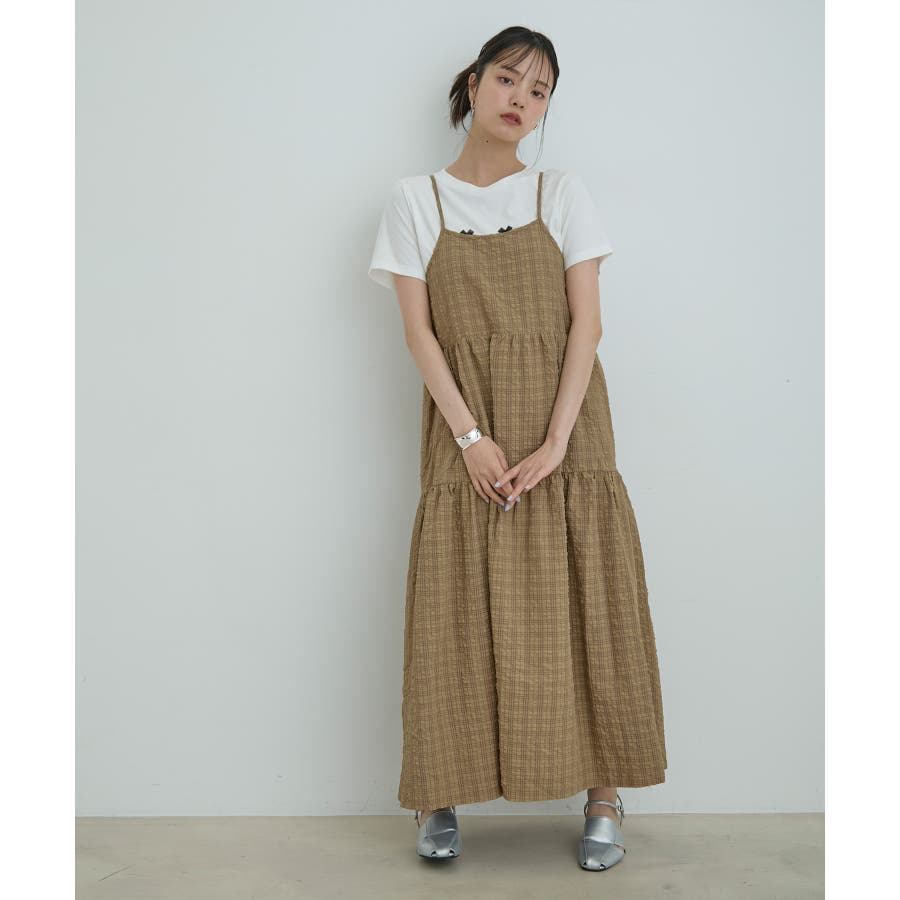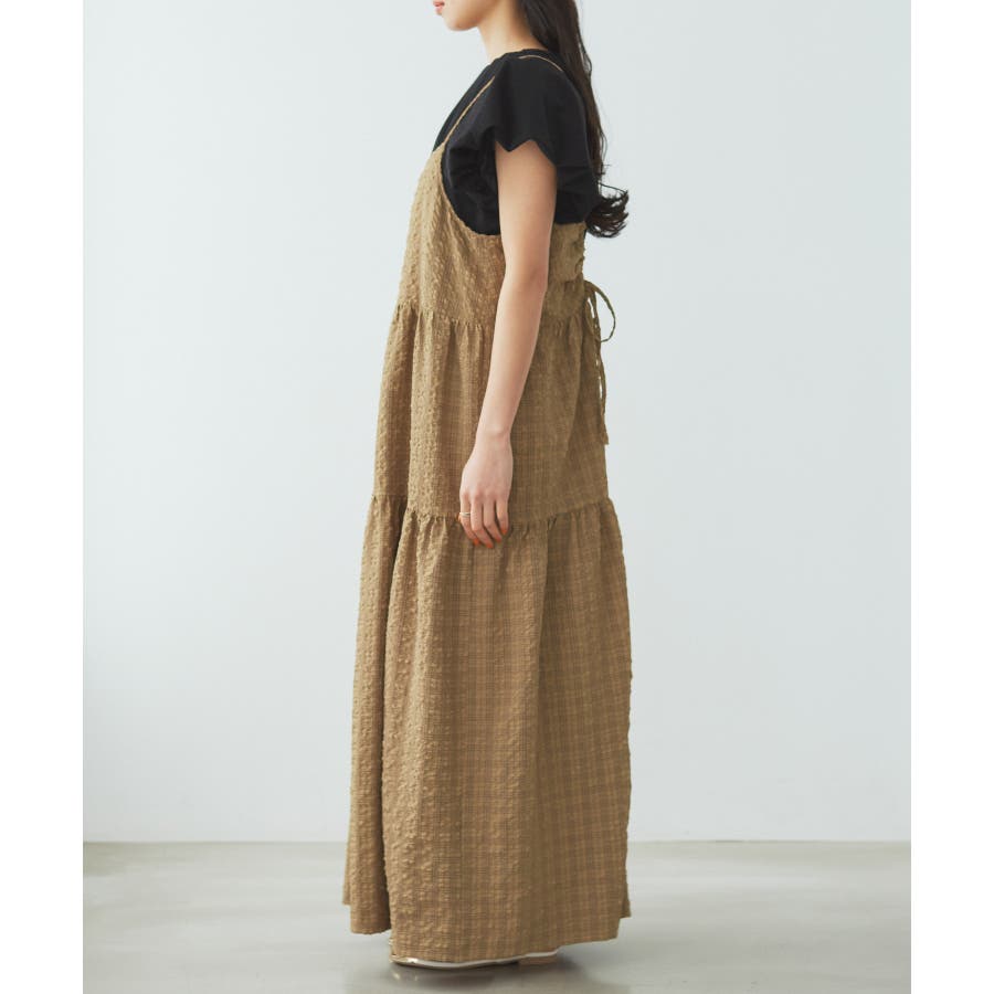【洗える】ぽこぽこチェック柄ティアードキャミワンピース