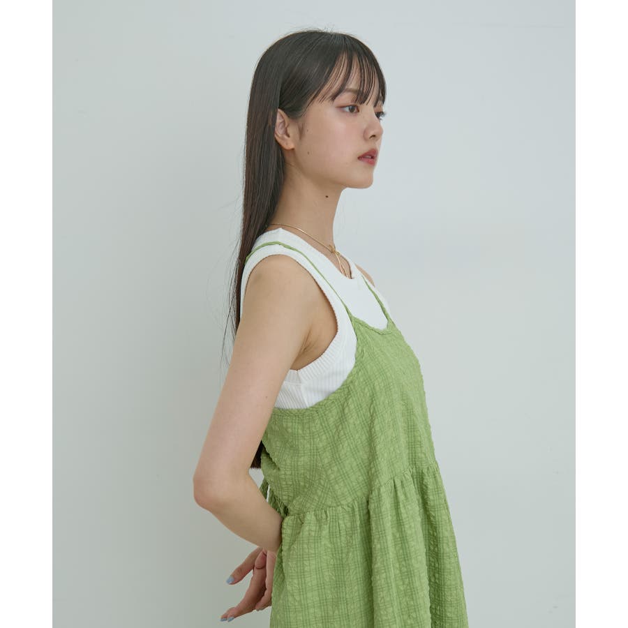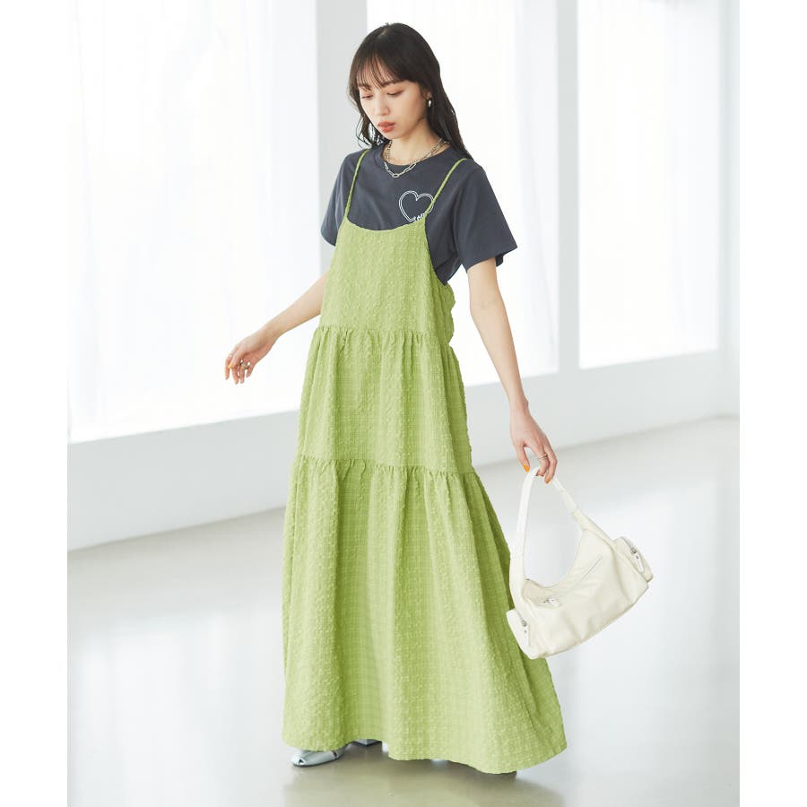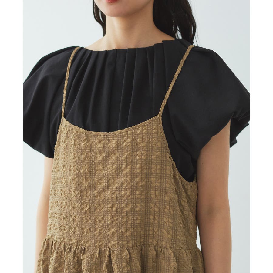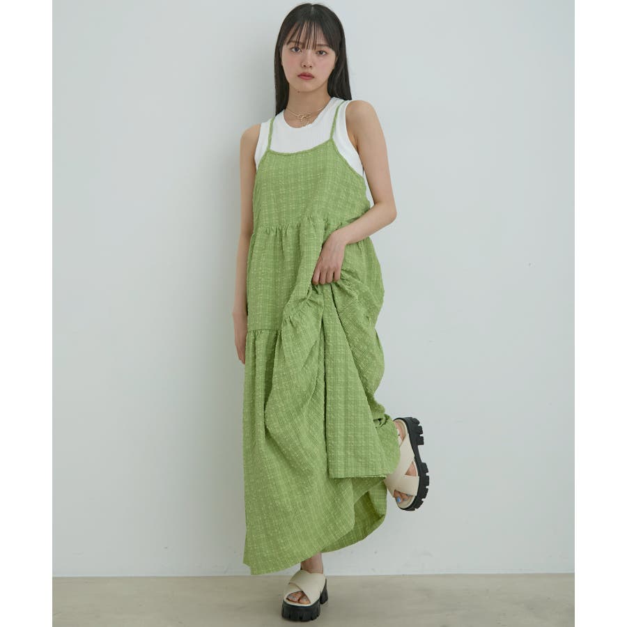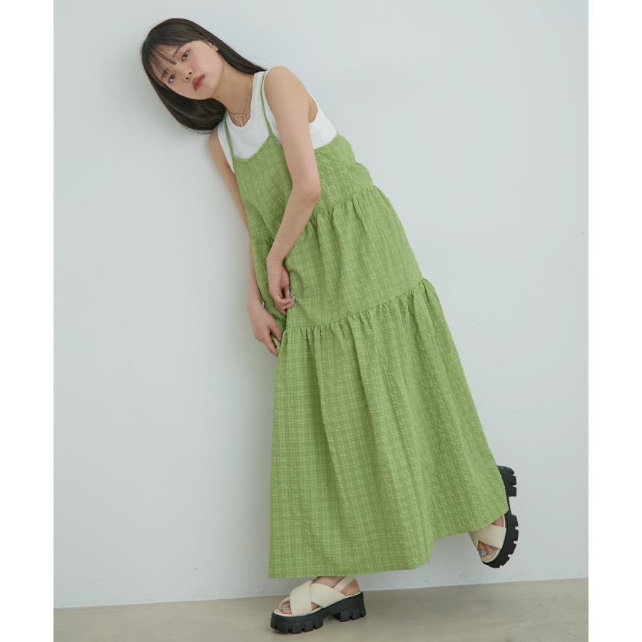 【洗える】ぽこぽこチェック柄ティアードキャミワンピース