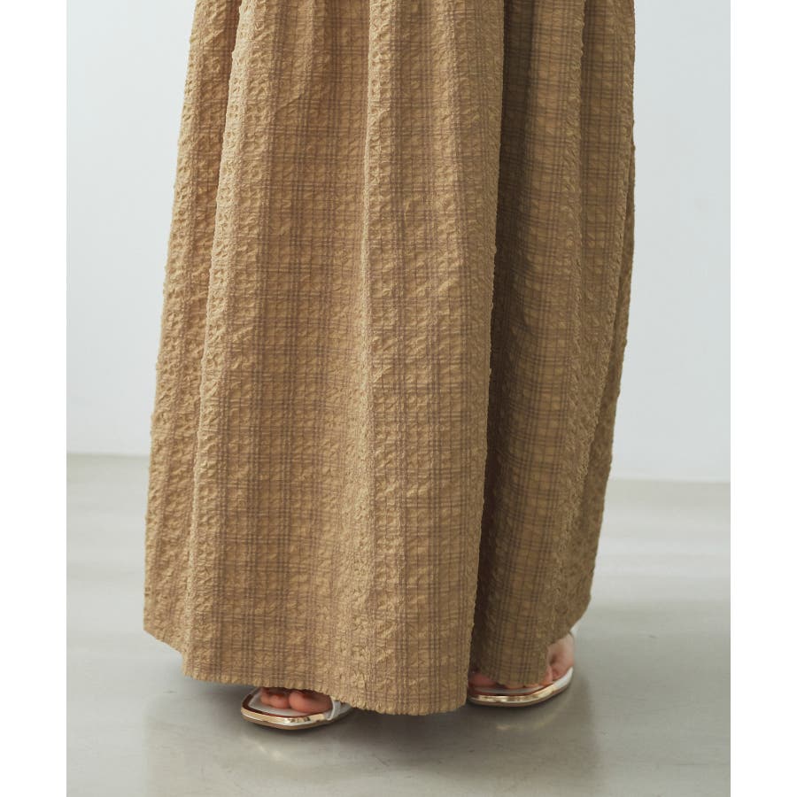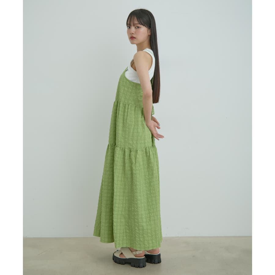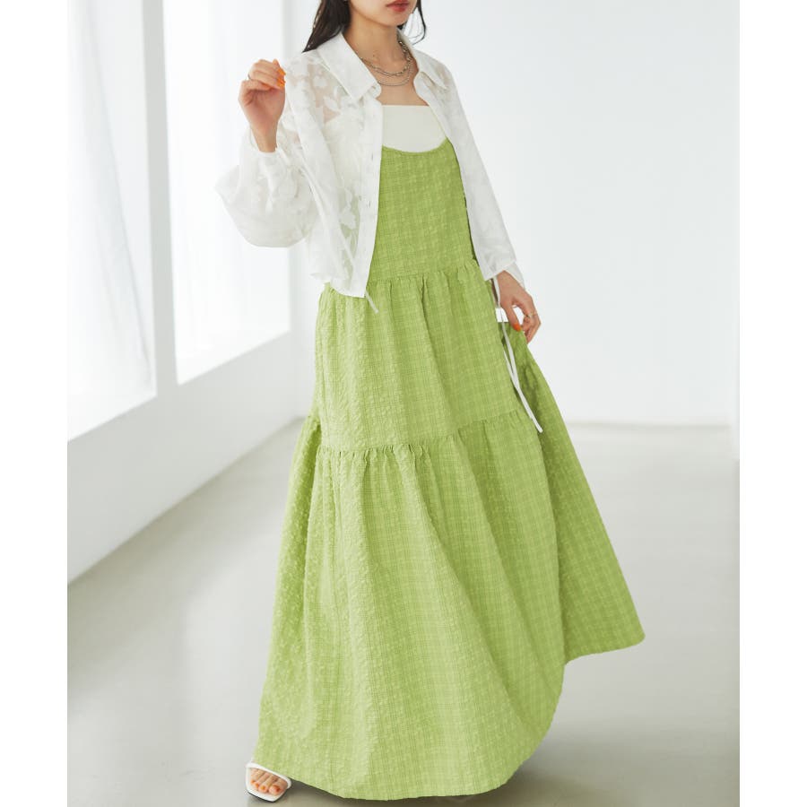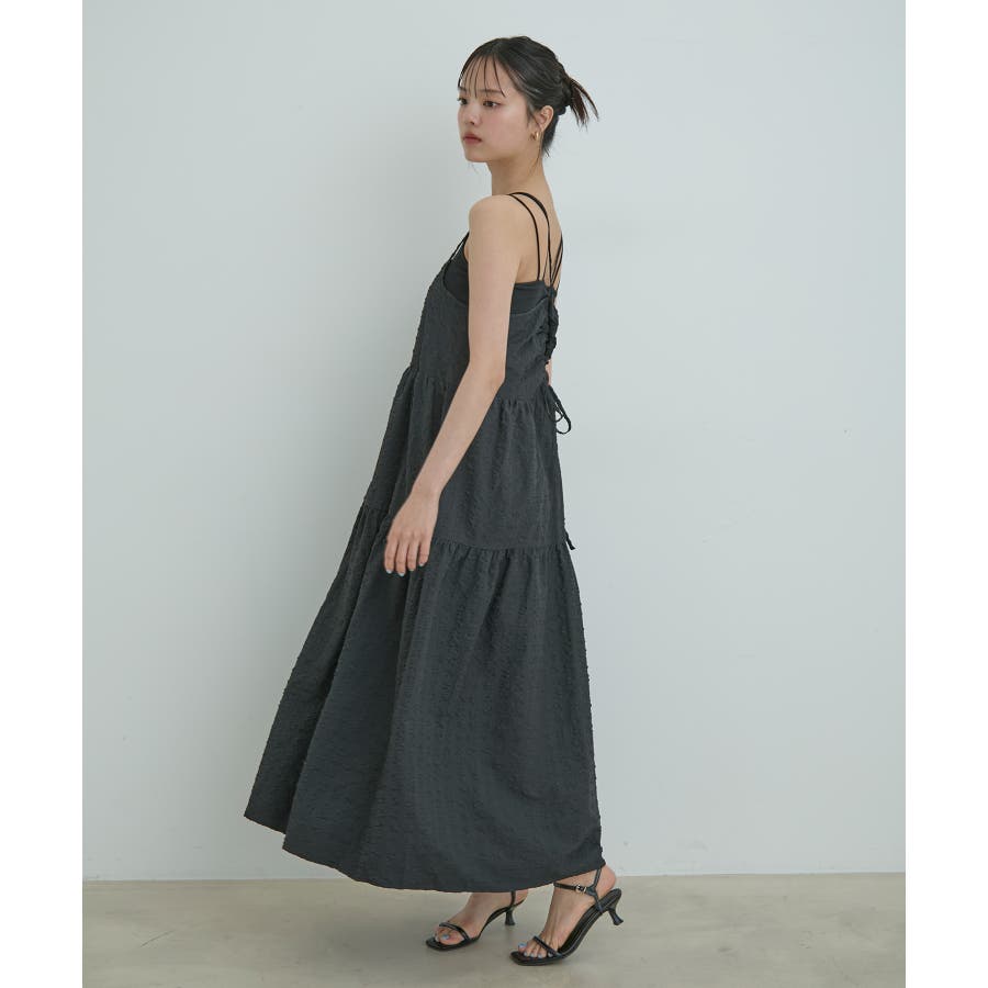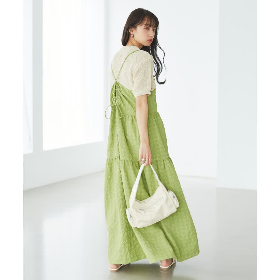 ◆2024春夏◆ 【デザイン・シルエット】 トレンドのぽこぽことした表面変化のある生地を使用したキャミワンピースです。 インナーを変えて、春、夏、秋とロングシーズン着用できるロングキャミワンピースです。