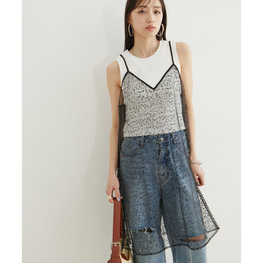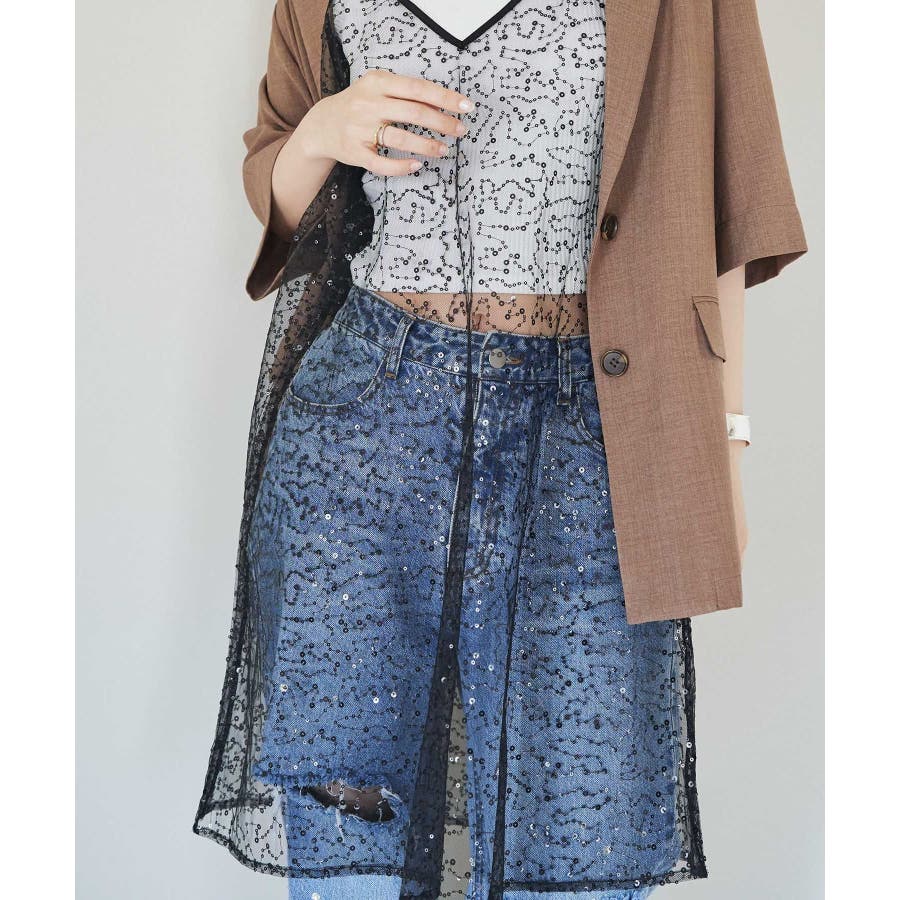 ◆2024春夏◆ 【デザイン・シルエット】 きらきらのスパンコールでレイヤードスタイルをシーズンレスで楽しめます!