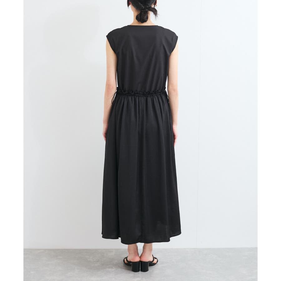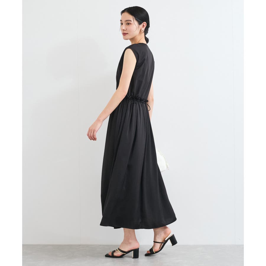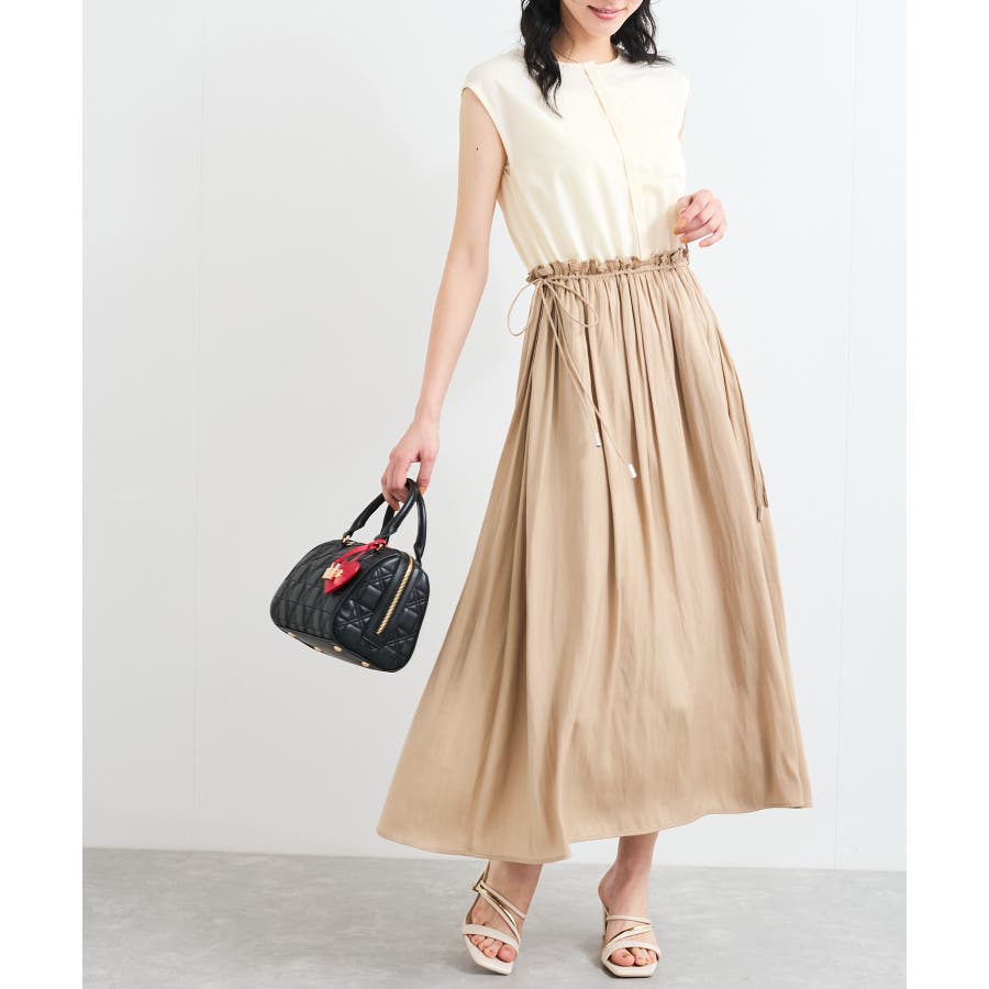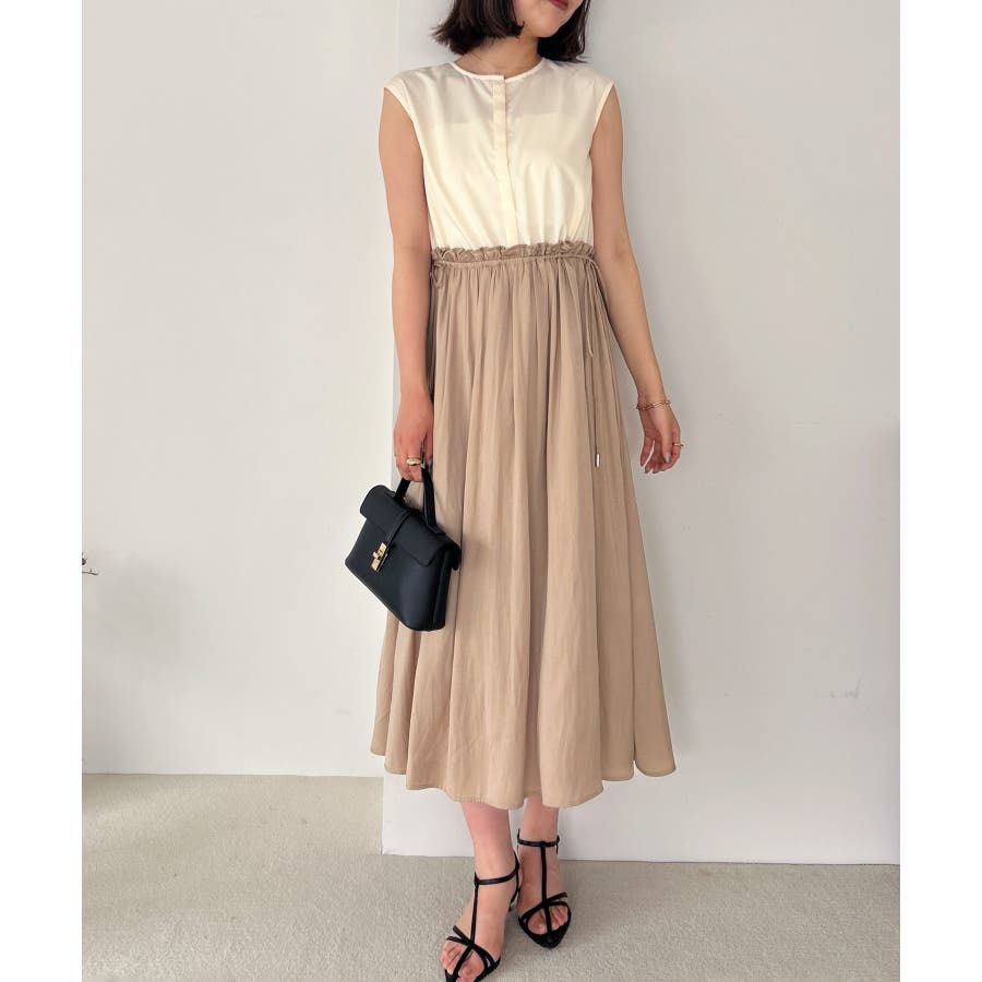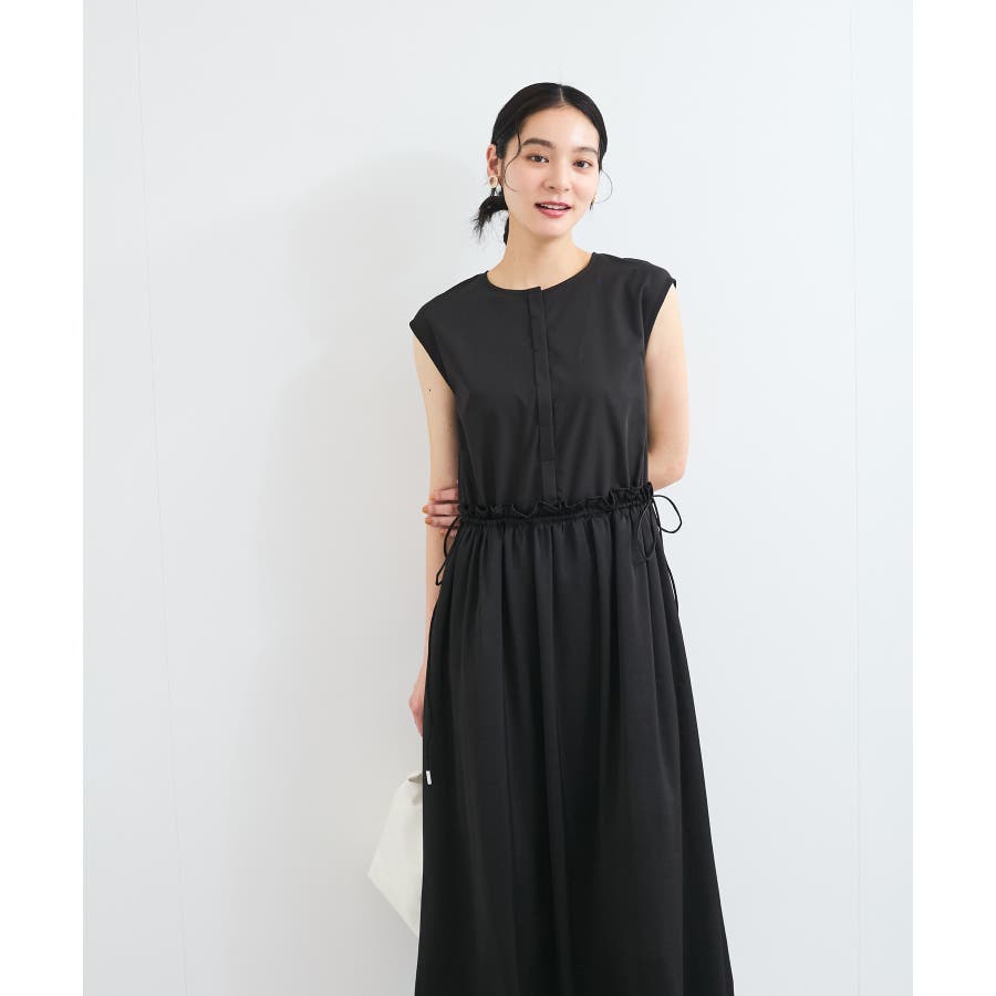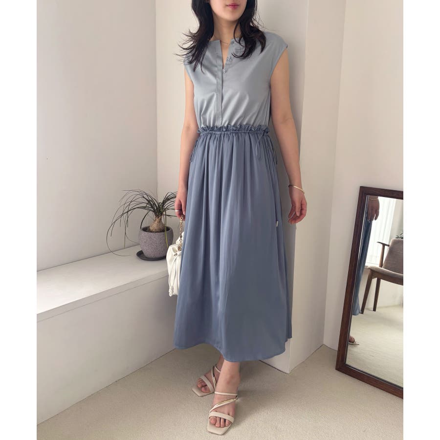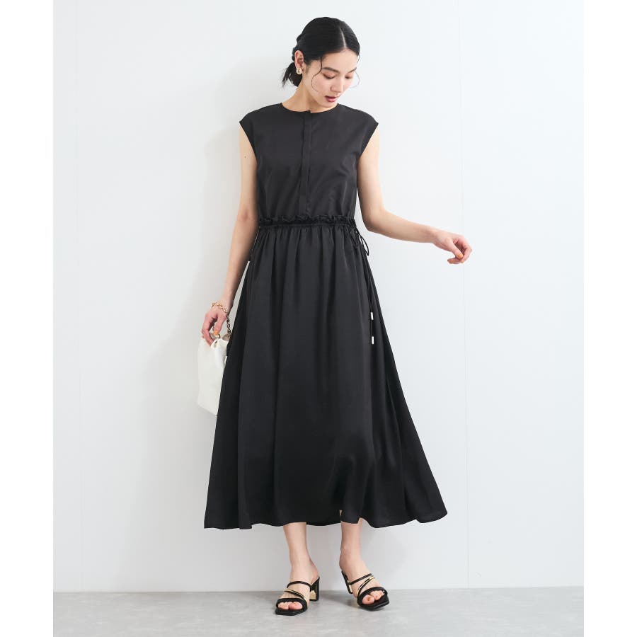 ・ウエストの程よいフリルと、シャーリングリボンの着映え要素が大人フェミニンな表情を演出してくれます。