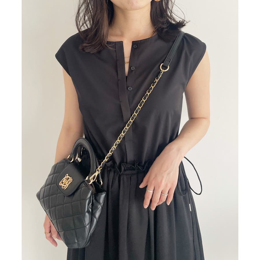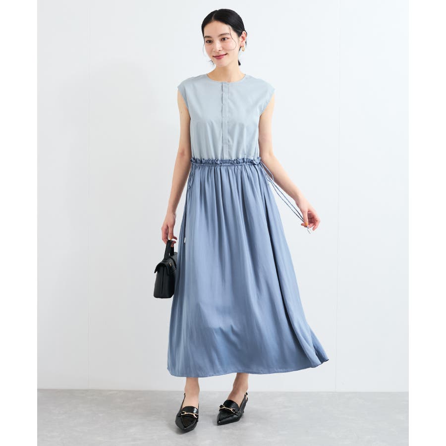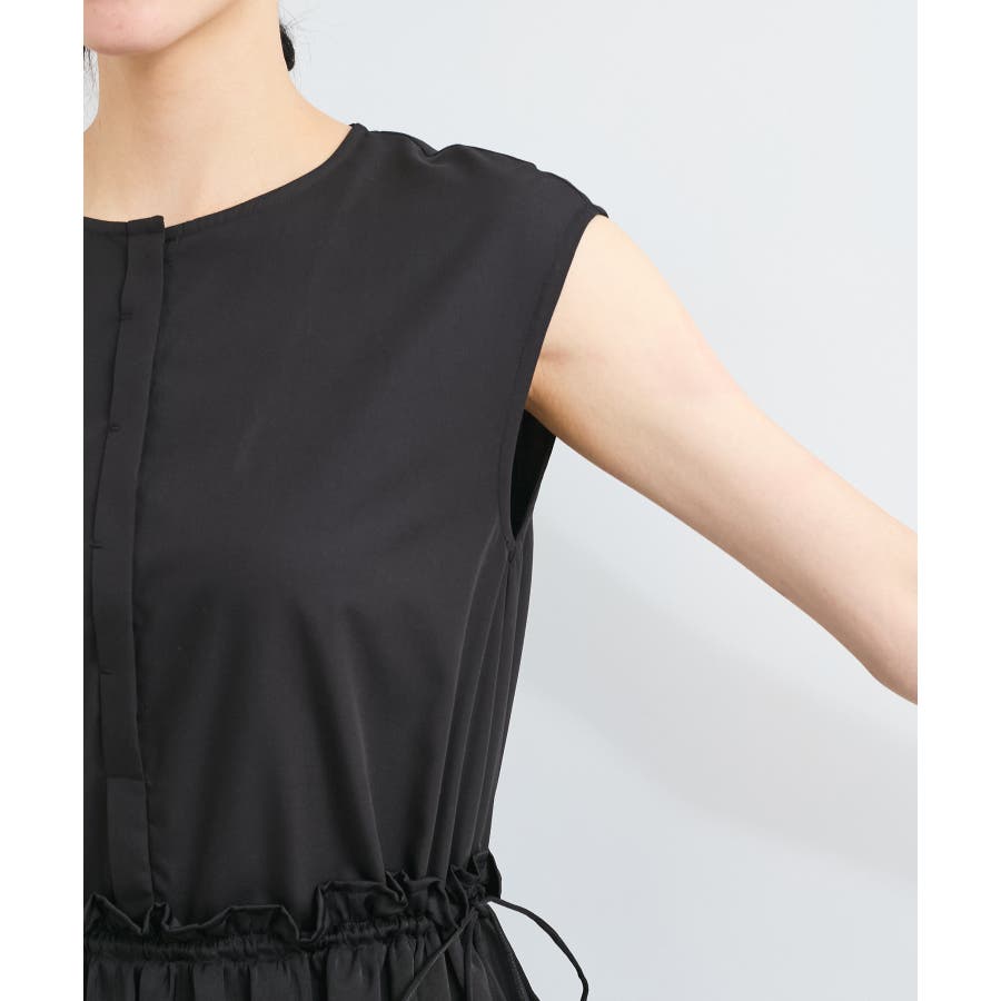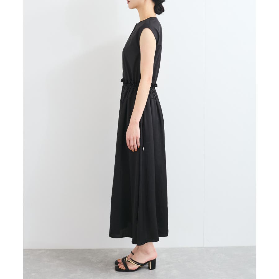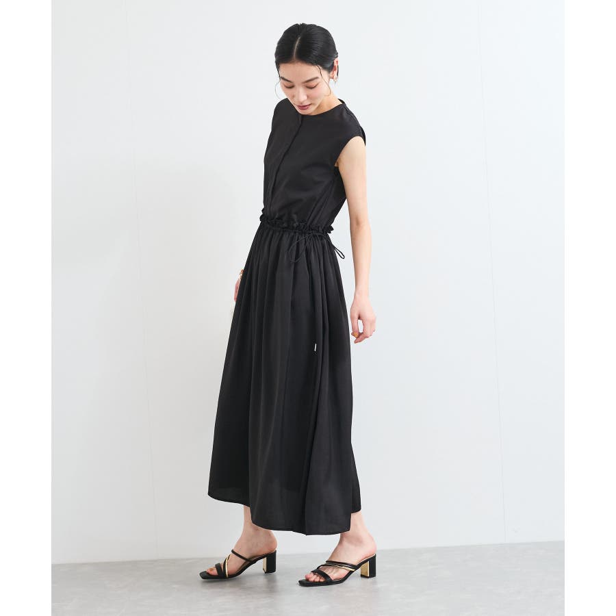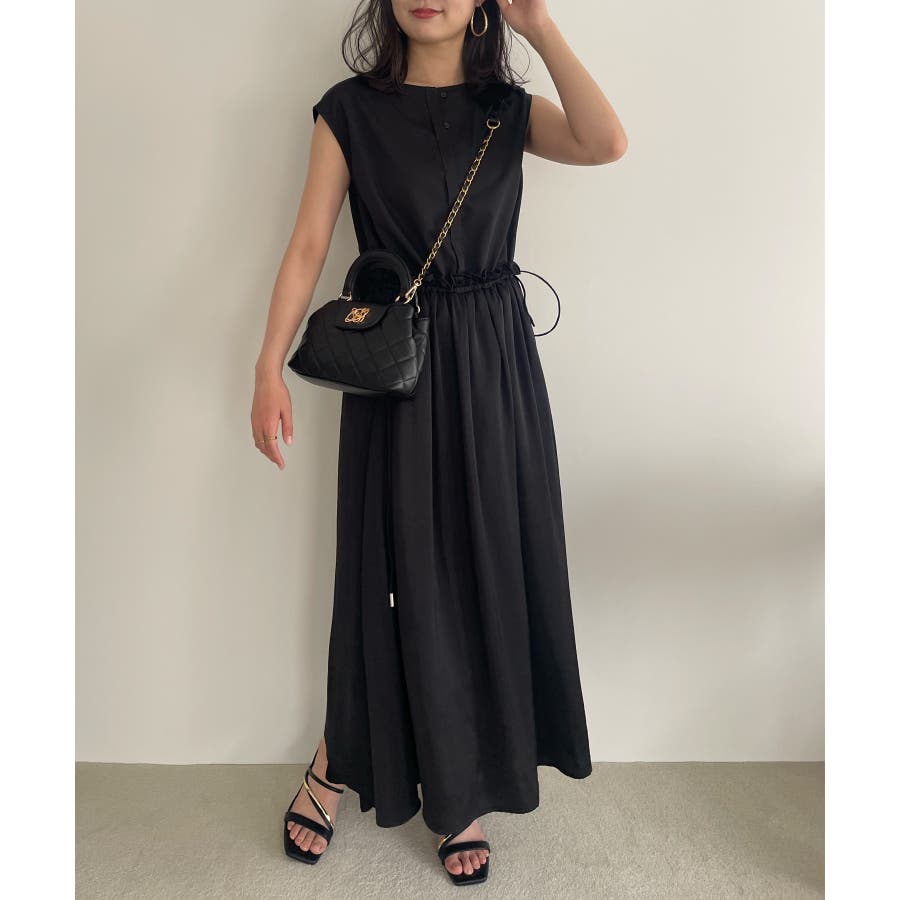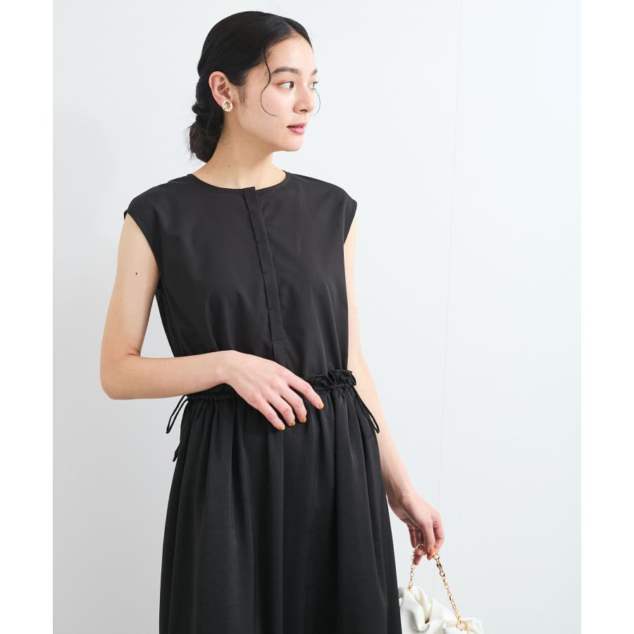 ・ウエストの程よいフリルと、シャーリングリボンの着映え要素が大人フェミニンな表情を演出してくれます。