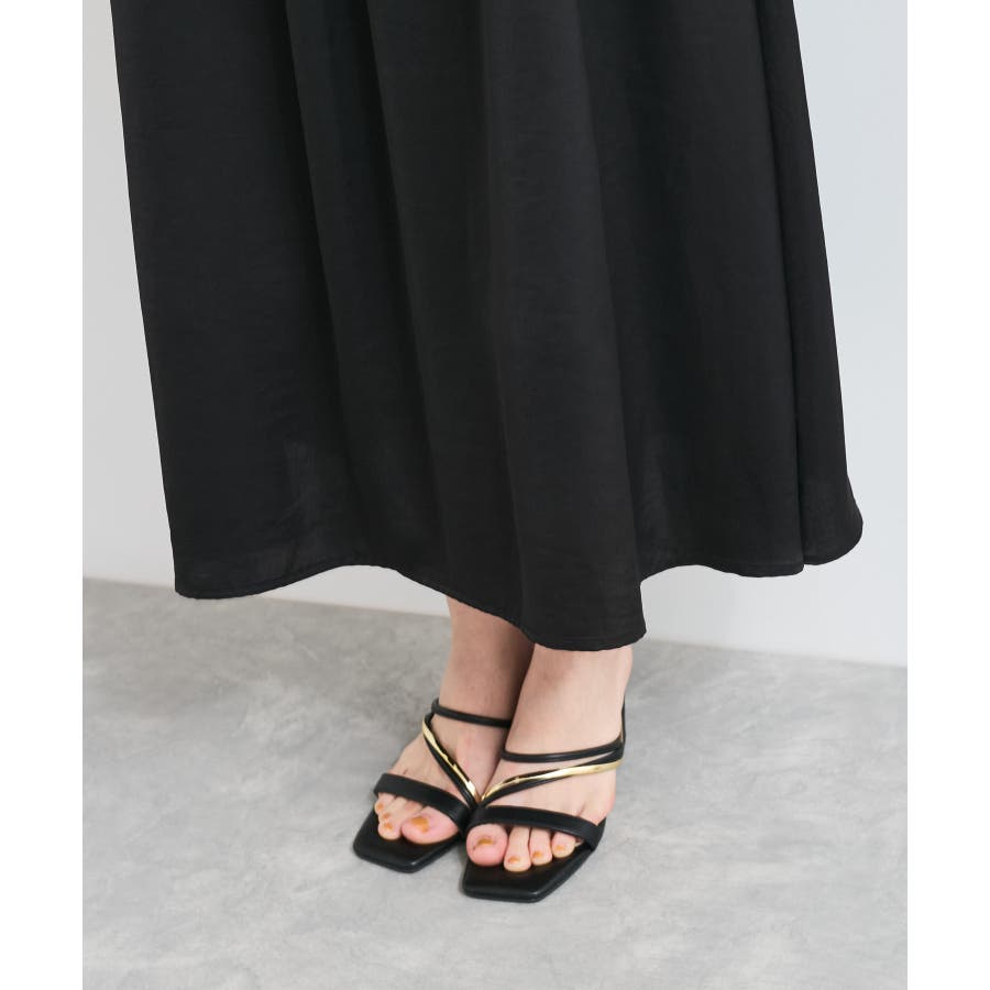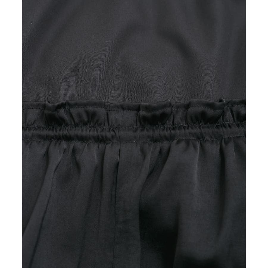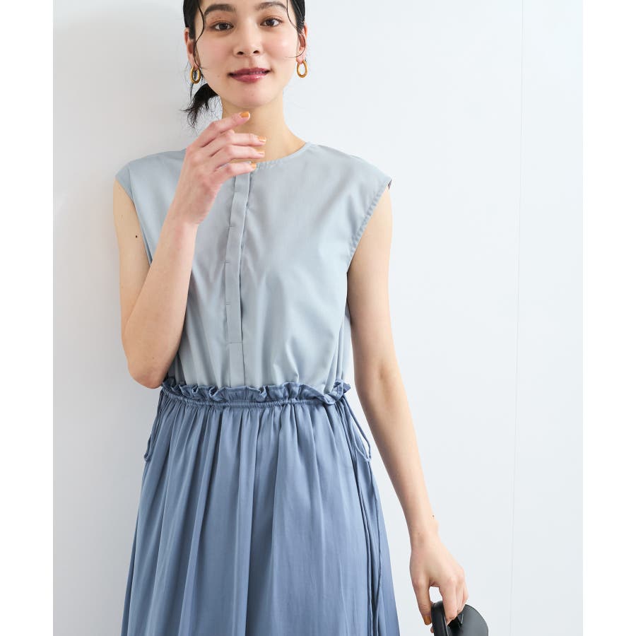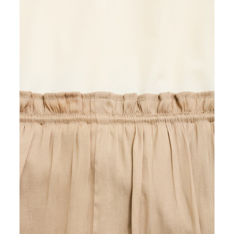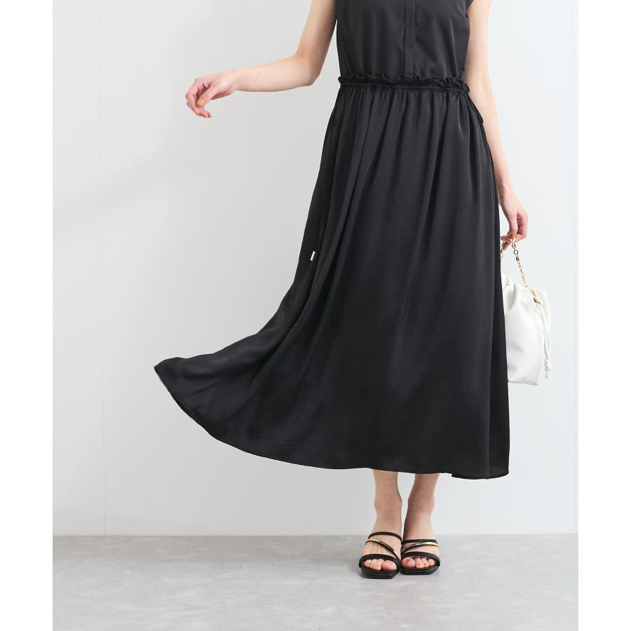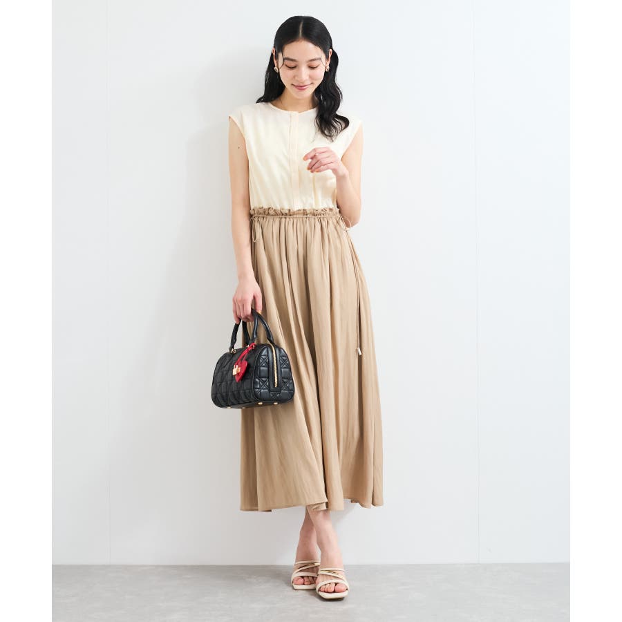 スカートはたっぷり寄せたギャザーから流れるようなシルエットが特徴的で、女性らしく軽やかな印象に見せてくれます。