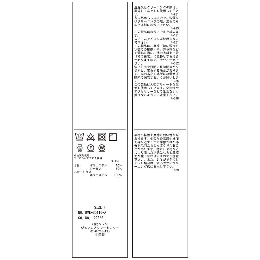 | 素材 | (本体) ポリエステル 70% レーヨン 30% (スカート部分) ポリエステル 100% (裏地) ポリエステル 100% |