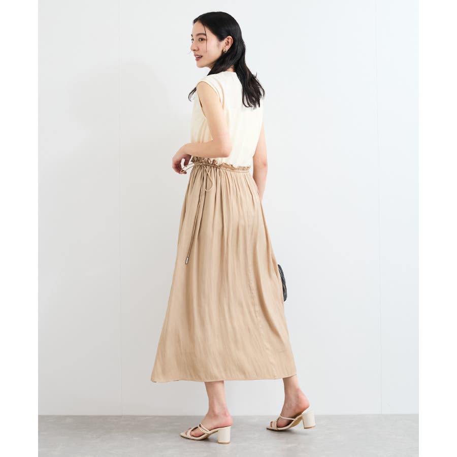 ・スカートは広がりすぎない落ち感のある生地を使用し、 縦長シルエットで着るだけでスタイルをより美しく見せてくれます。