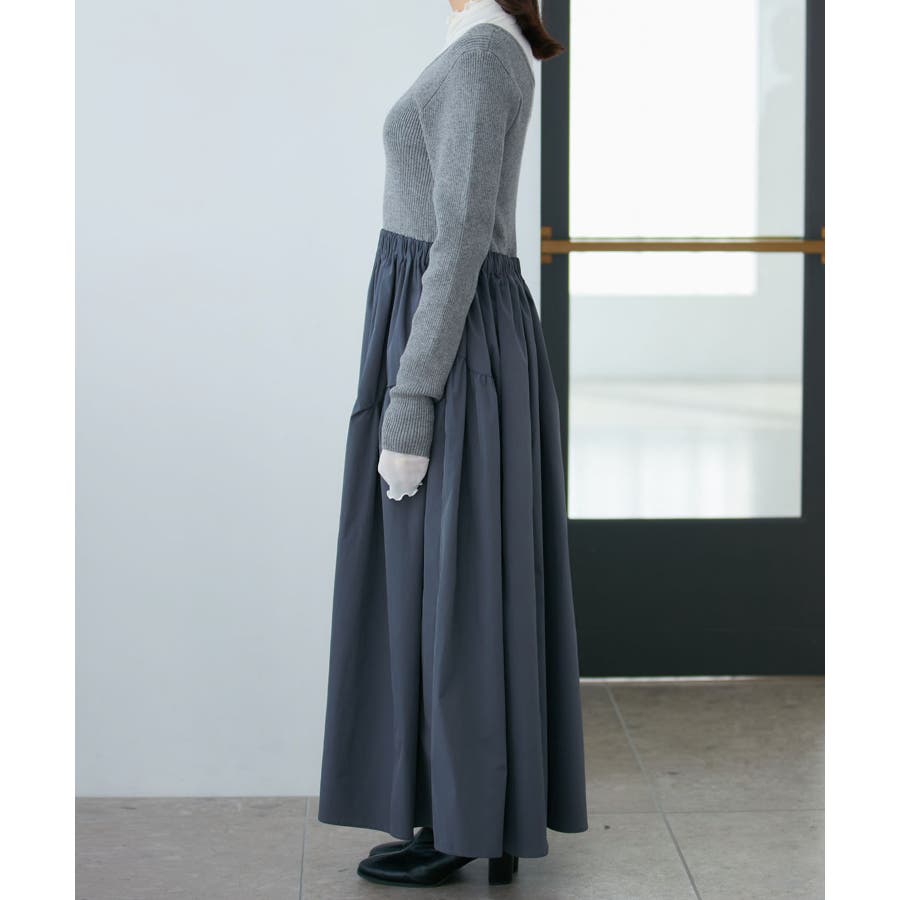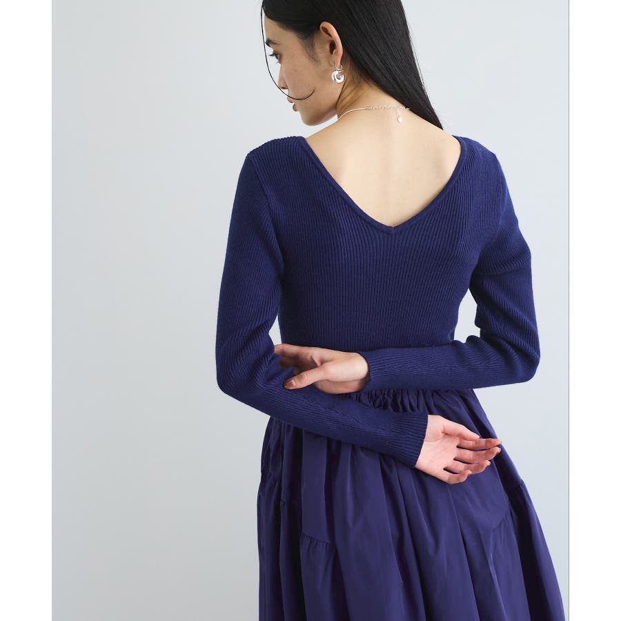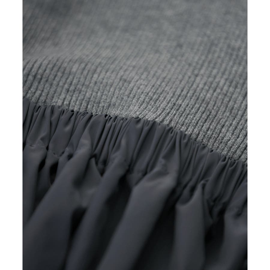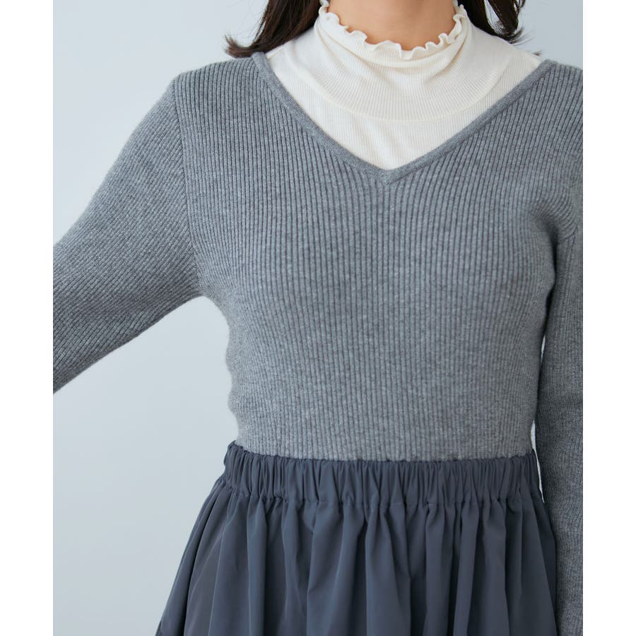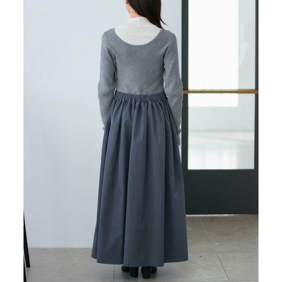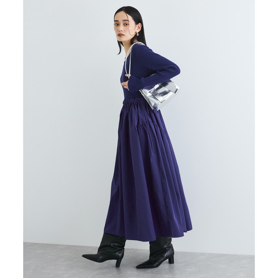 【デザイン・シルエット】 リブニットとタフタのドッキングワンピースです。