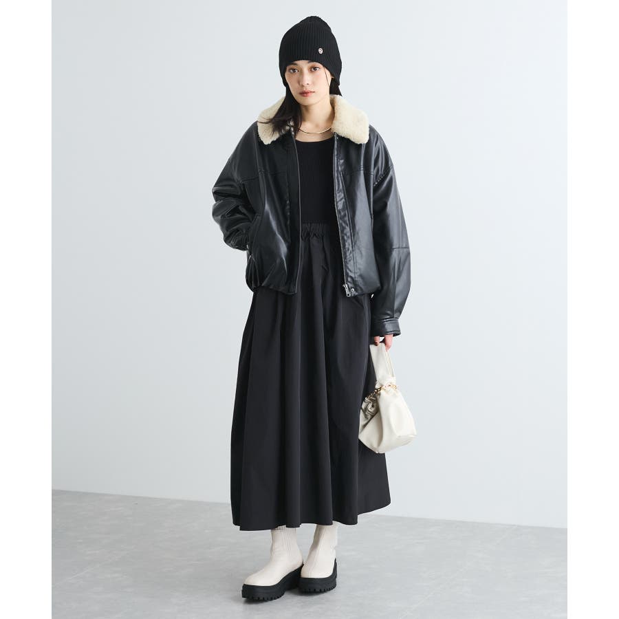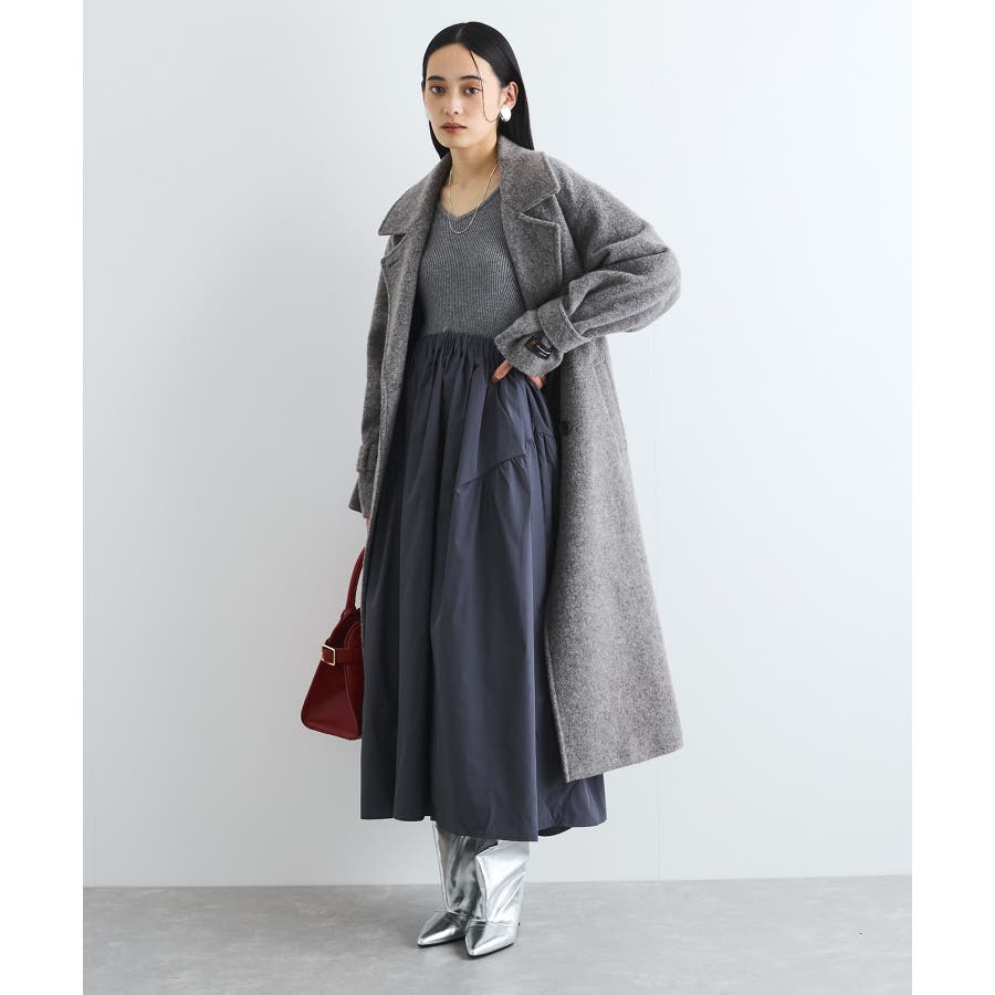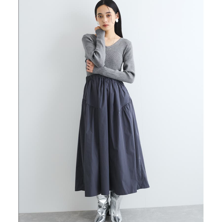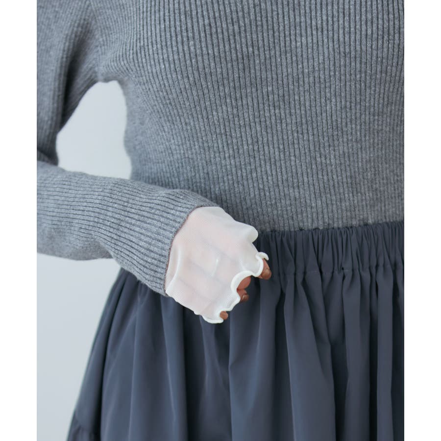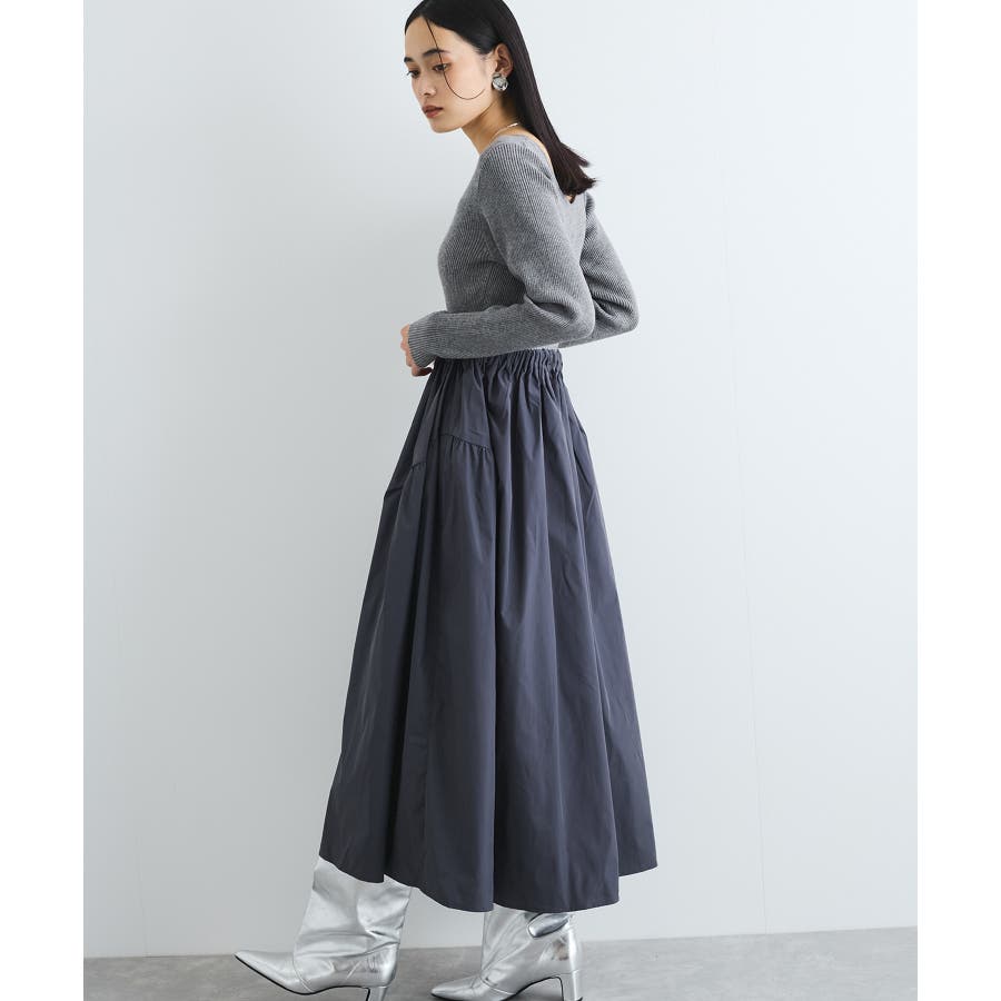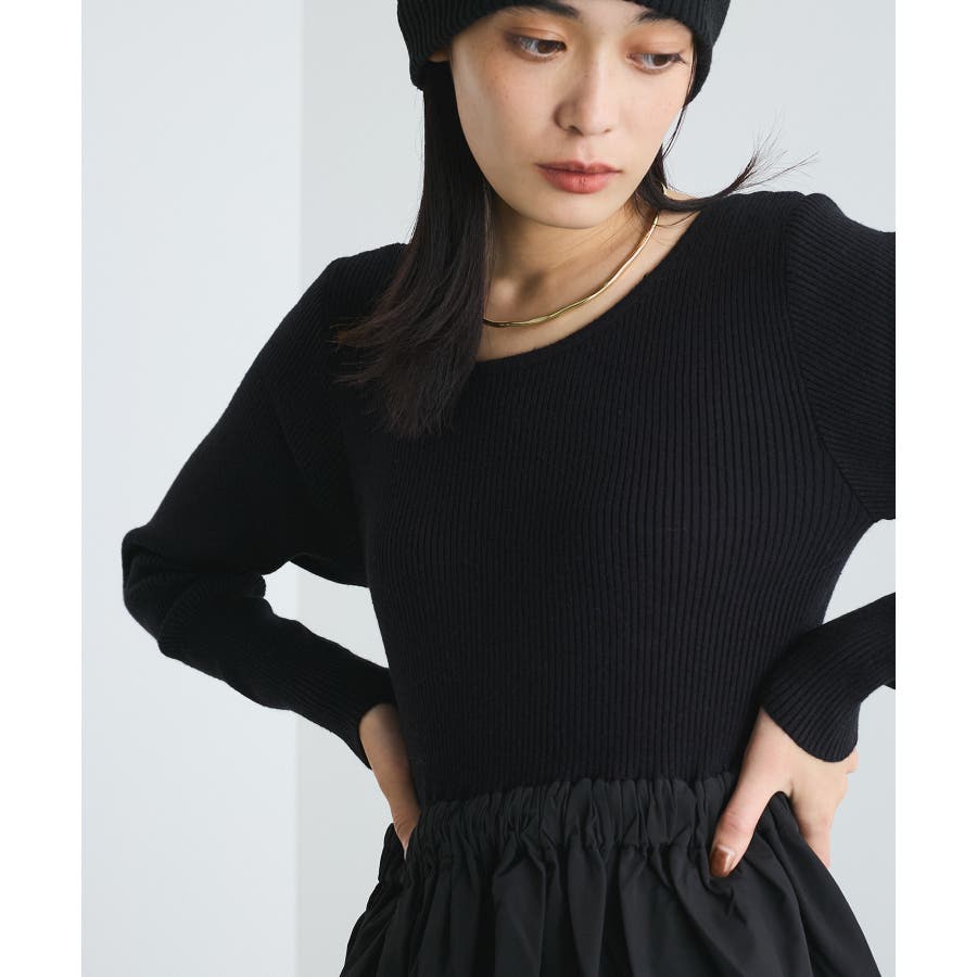 【デザイン・シルエット】 リブニットとタフタのドッキングワンピースです。