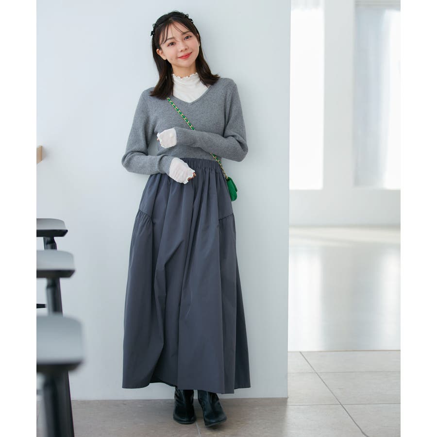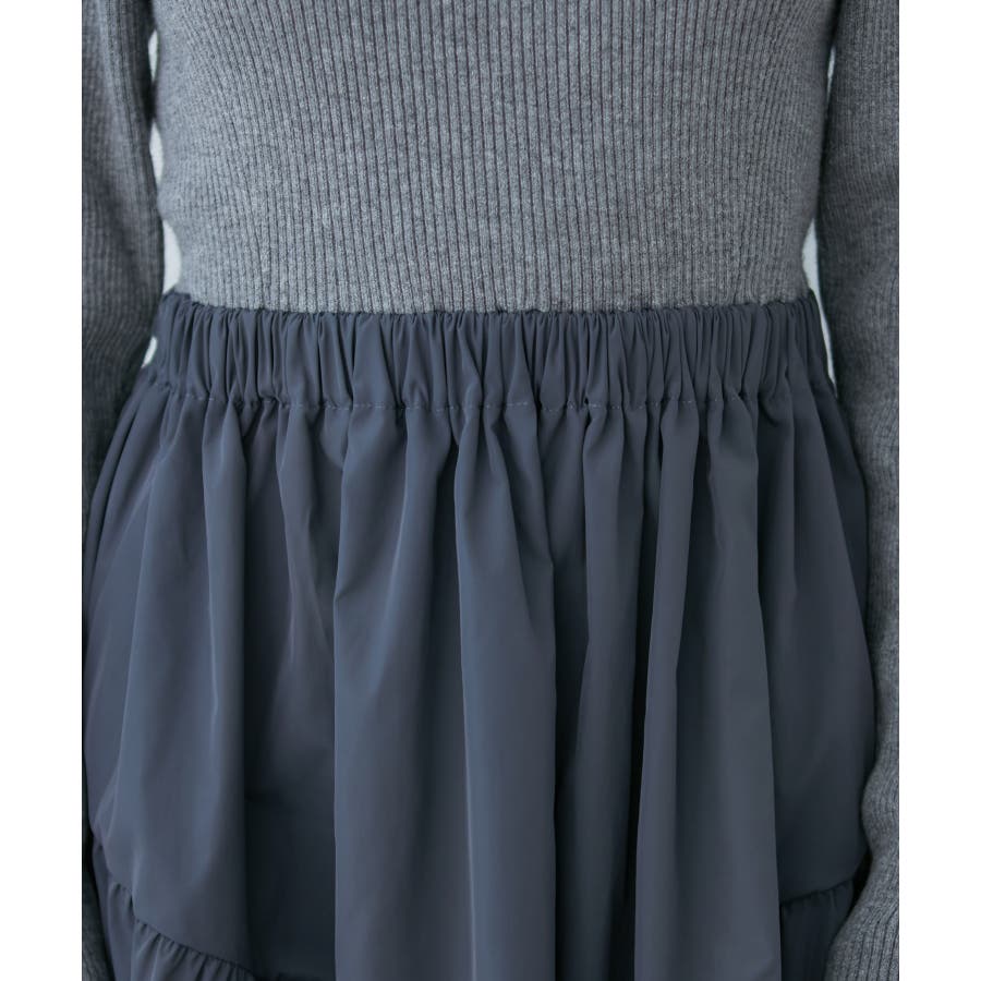 | 素材 | ブラック(01):(ニット部分) レーヨン 41% ナイロン 33% ポリエステル 26% (スカート部分) ポリエステル 100% (スカート部分裏地) ポリエステル 100%|グレー系(09):(ニット部分) レーヨン 41% ナイロン 33% ポリエステル 26% (スカート部分) ポリエステル 100% (スカート部分裏地) ポリエステル 100%|ブルー系(45):(ニット部分) レーヨン 41% ナイロン 33% ポリエステル 26% (スカート部分) ポリエステル 100% (スカート部分裏地) ポリエステル 100% |