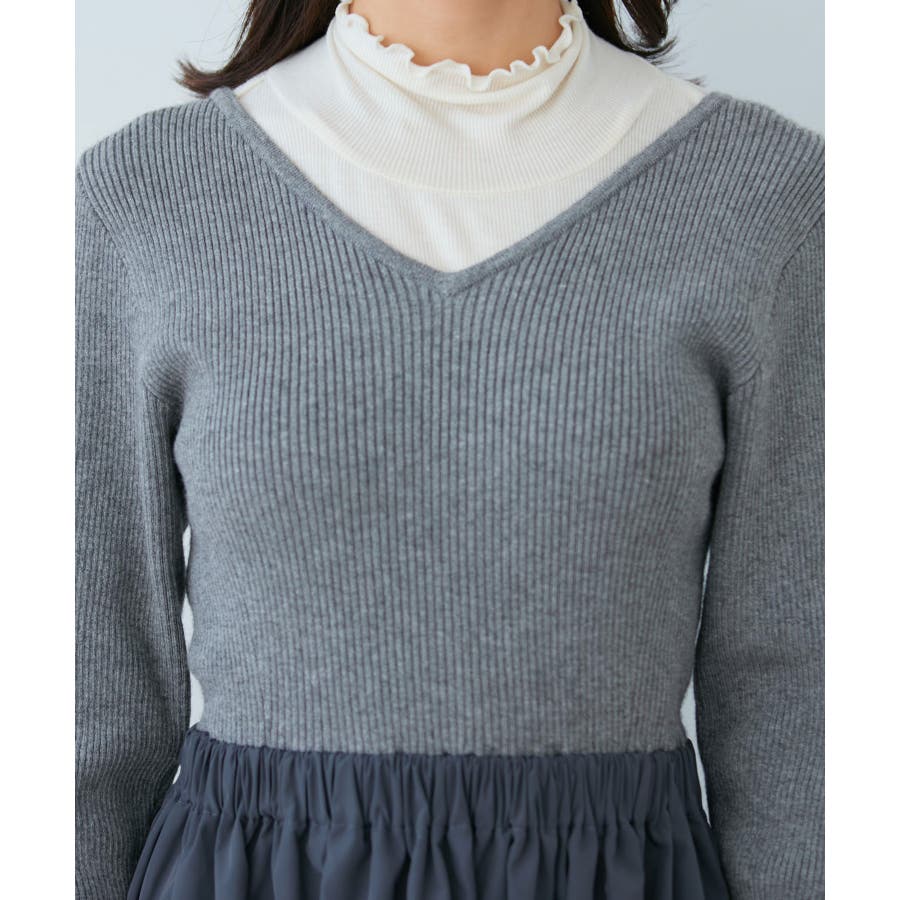 【グレー系(09)】【前後2WAY】ニットドッキングワンピース【洗える】