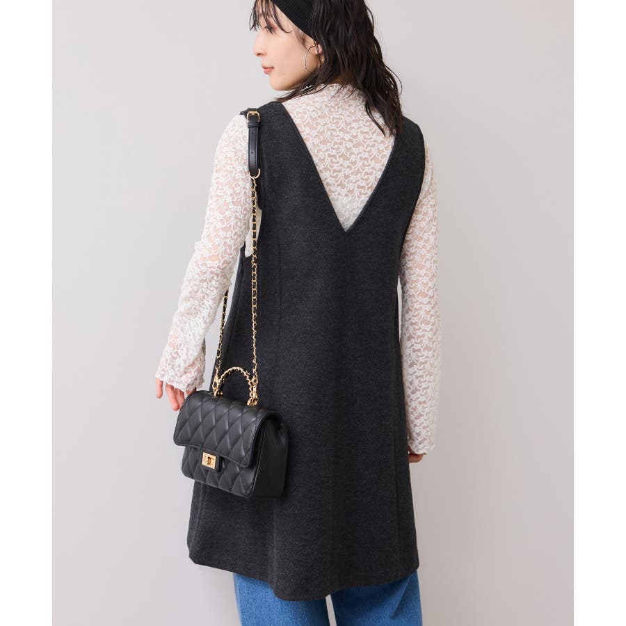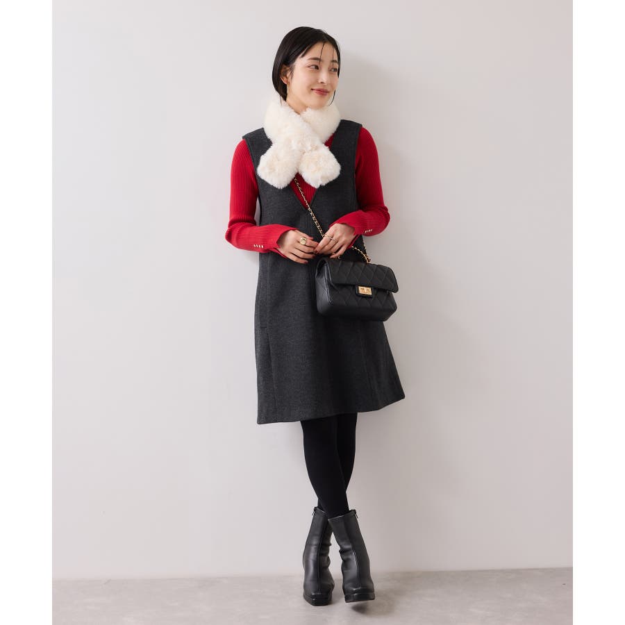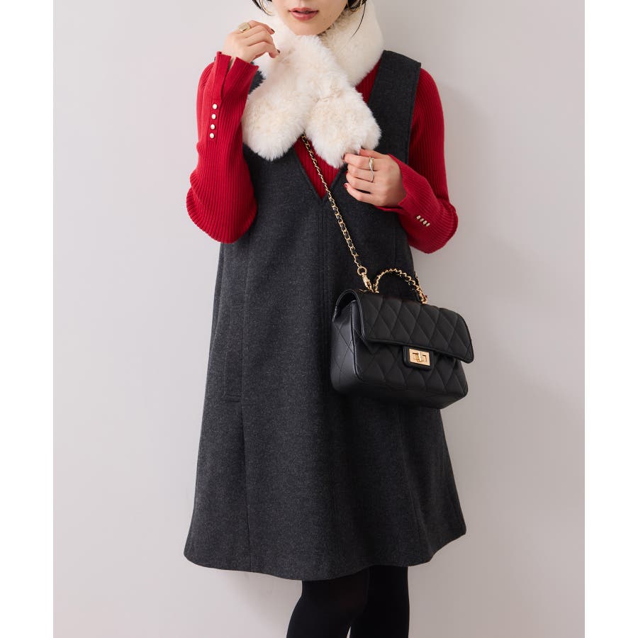 バッグやインナーなどにレッドカラーを差し色にすればクリスマスの演出は◎!