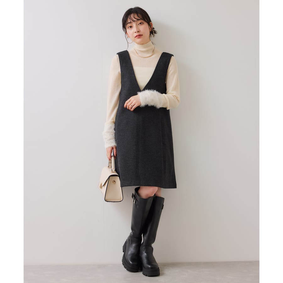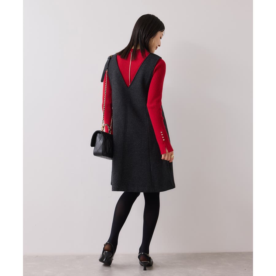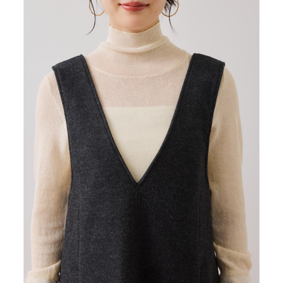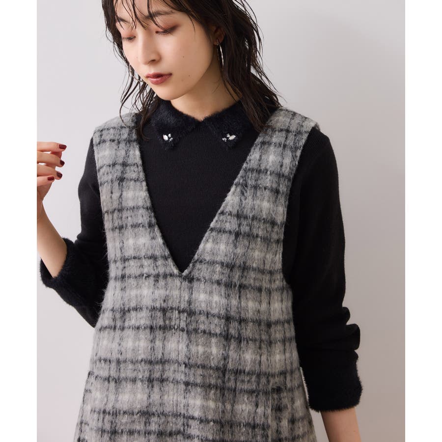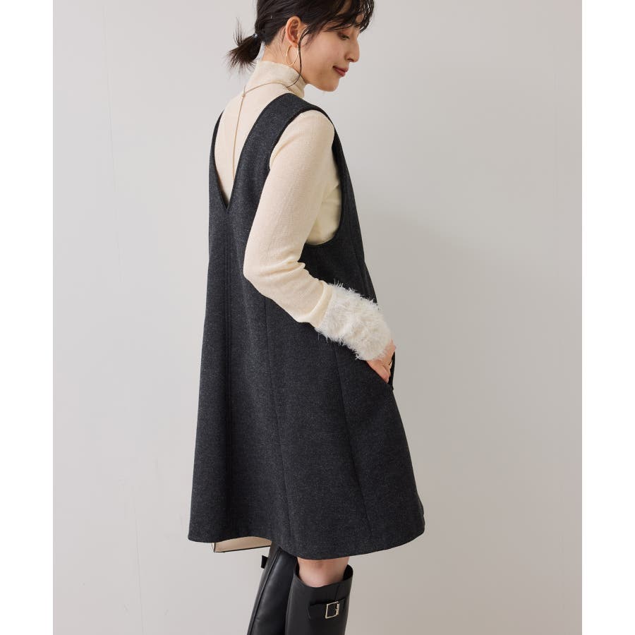 衿ぐりの深目のV字開きが、小顔効果もあり、細見えする効果が期待できます!