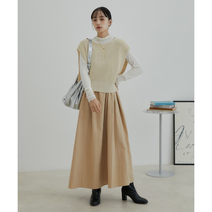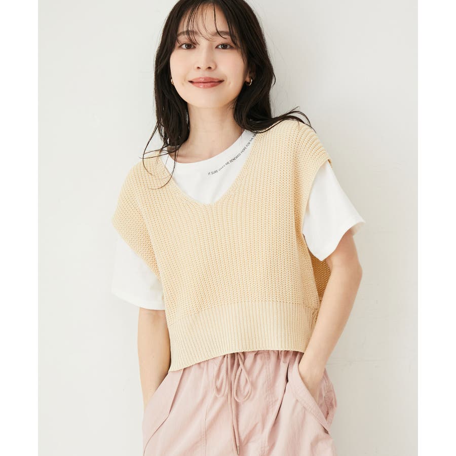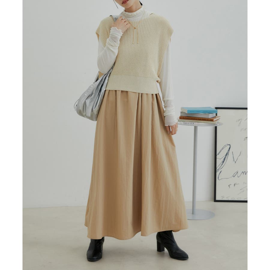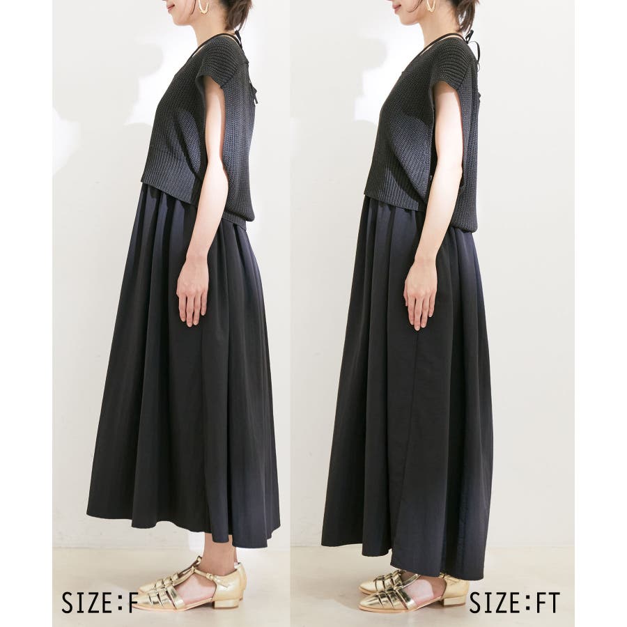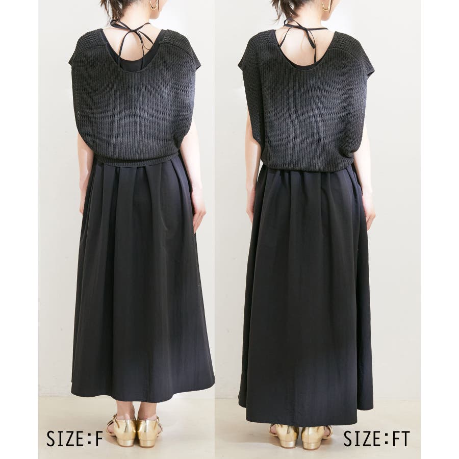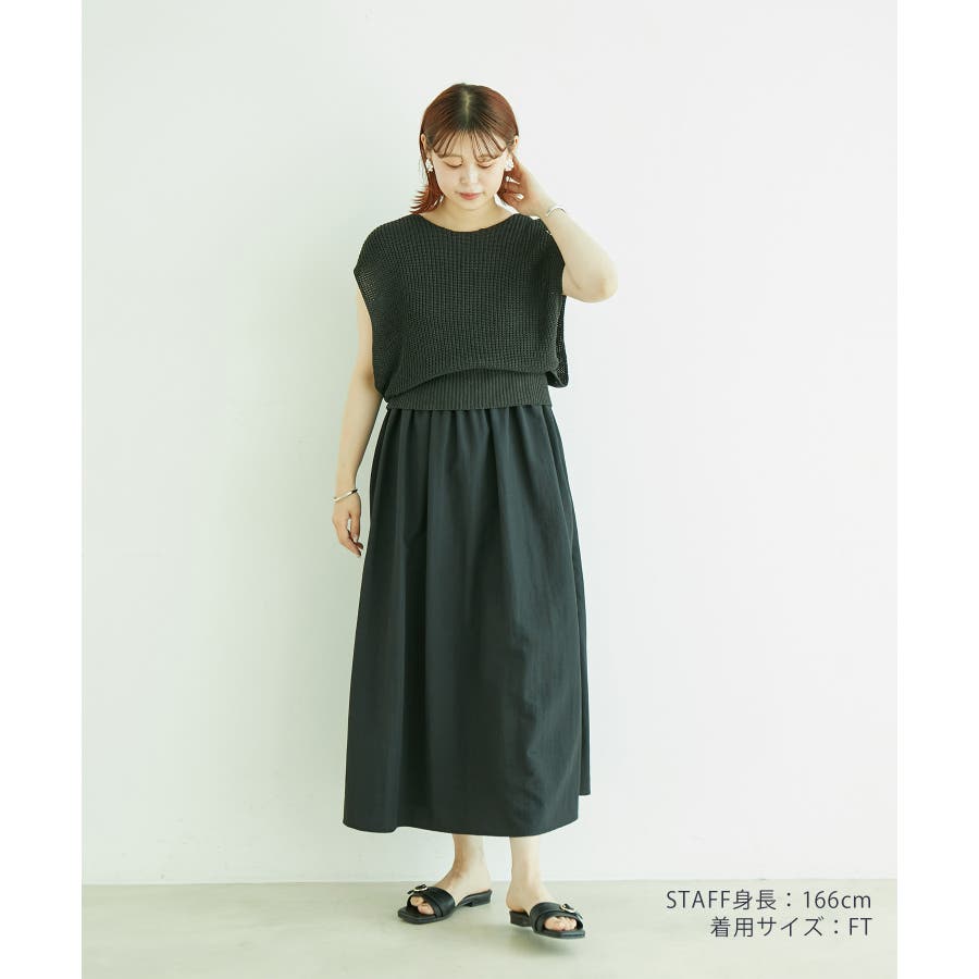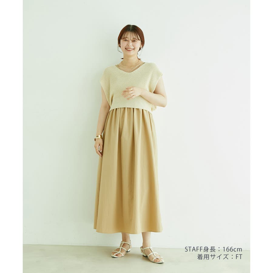 【デザイン・シルエット】 ららぽーとTOKYO-BAY staff鈴木が担当しました! シャカっとしたワンピースに涼しげなシャリみのあるベストがついた着まわせるセットアイテムです。
