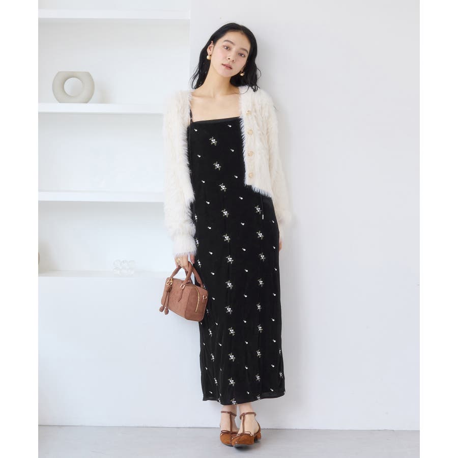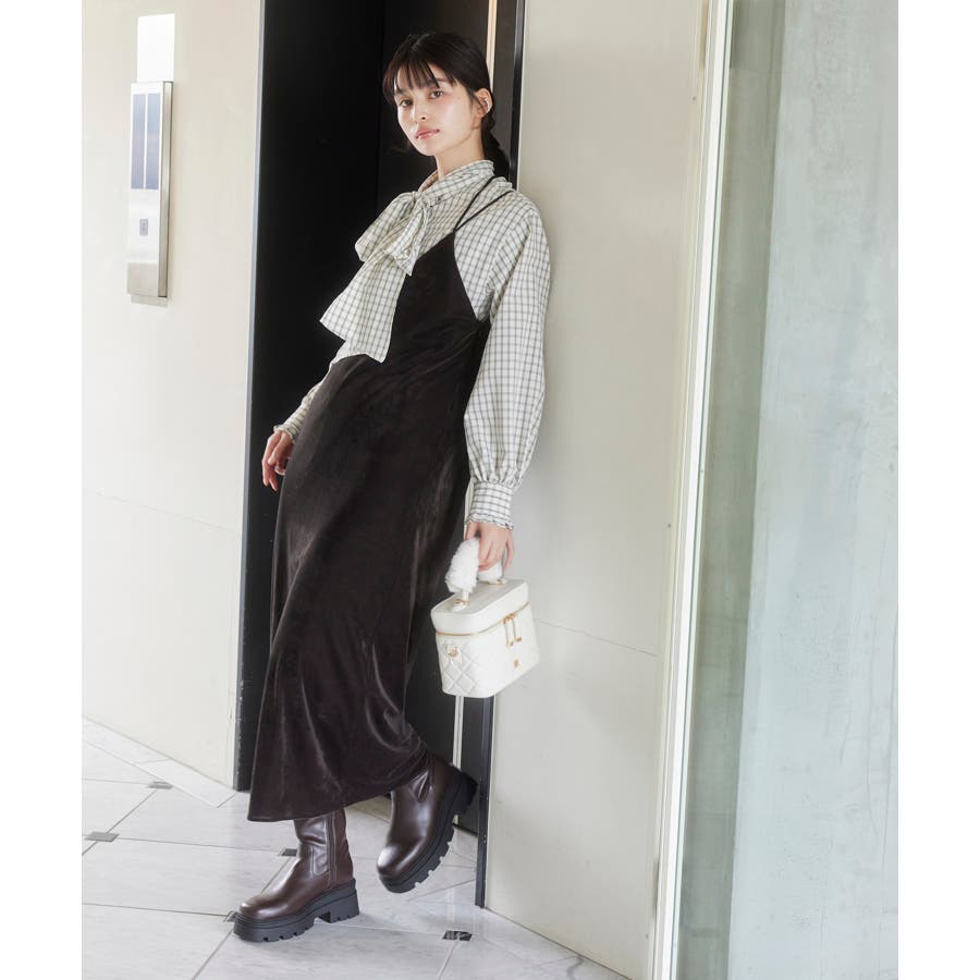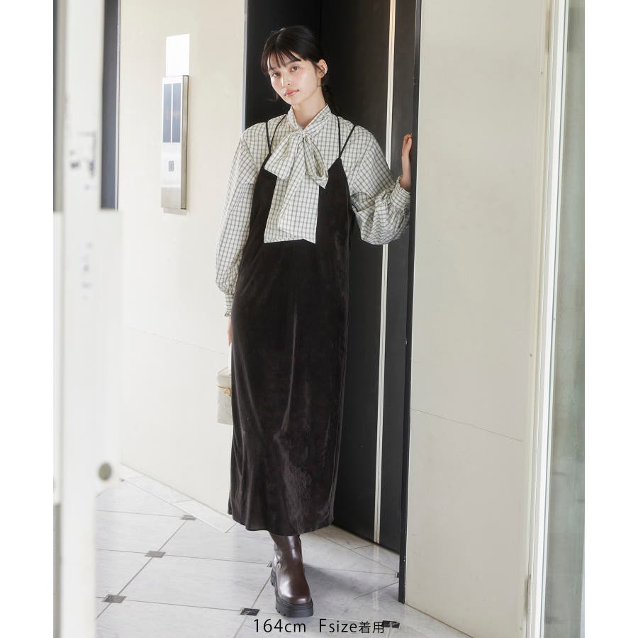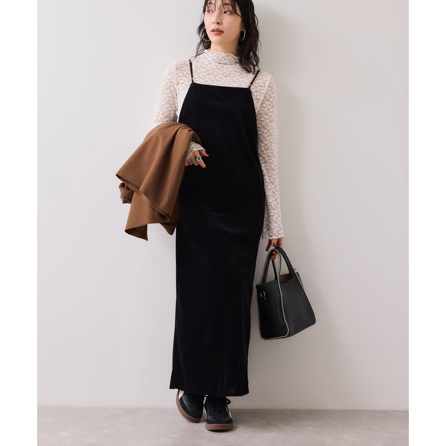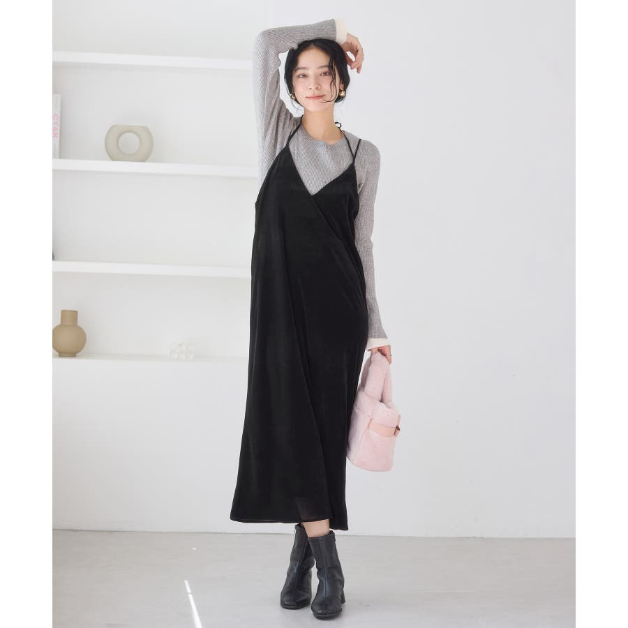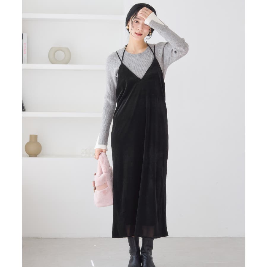 ・秋冬感を取り入れるのにピッタリなベロア素材のキャミワンピース。