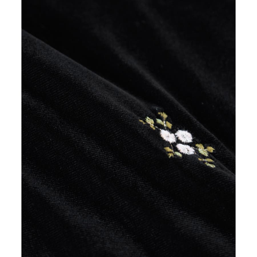ブラック系(02):(表地)(基布)ポリエステル 90% ポリウレタン 10% (刺繍糸上糸)レーヨン 100% (刺繍糸下糸)ポリエステル 100%(裏地)ポリエステル 100%