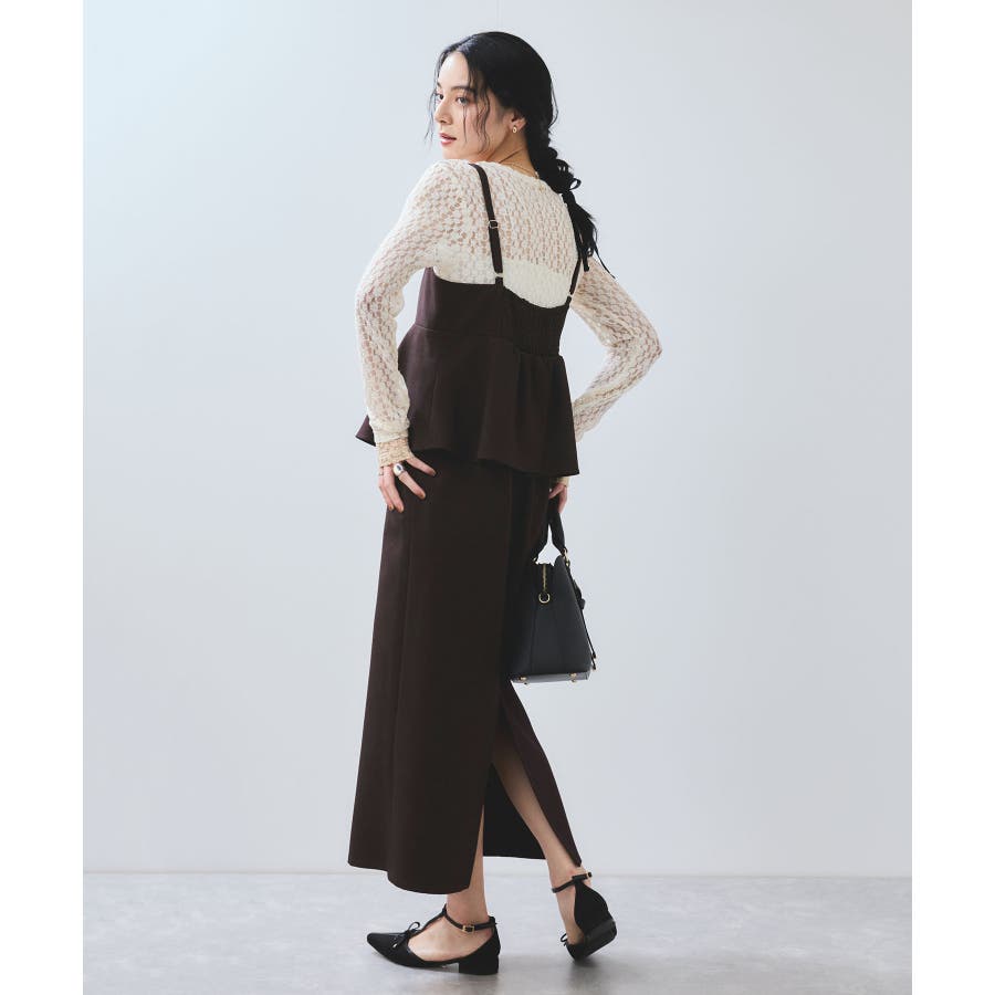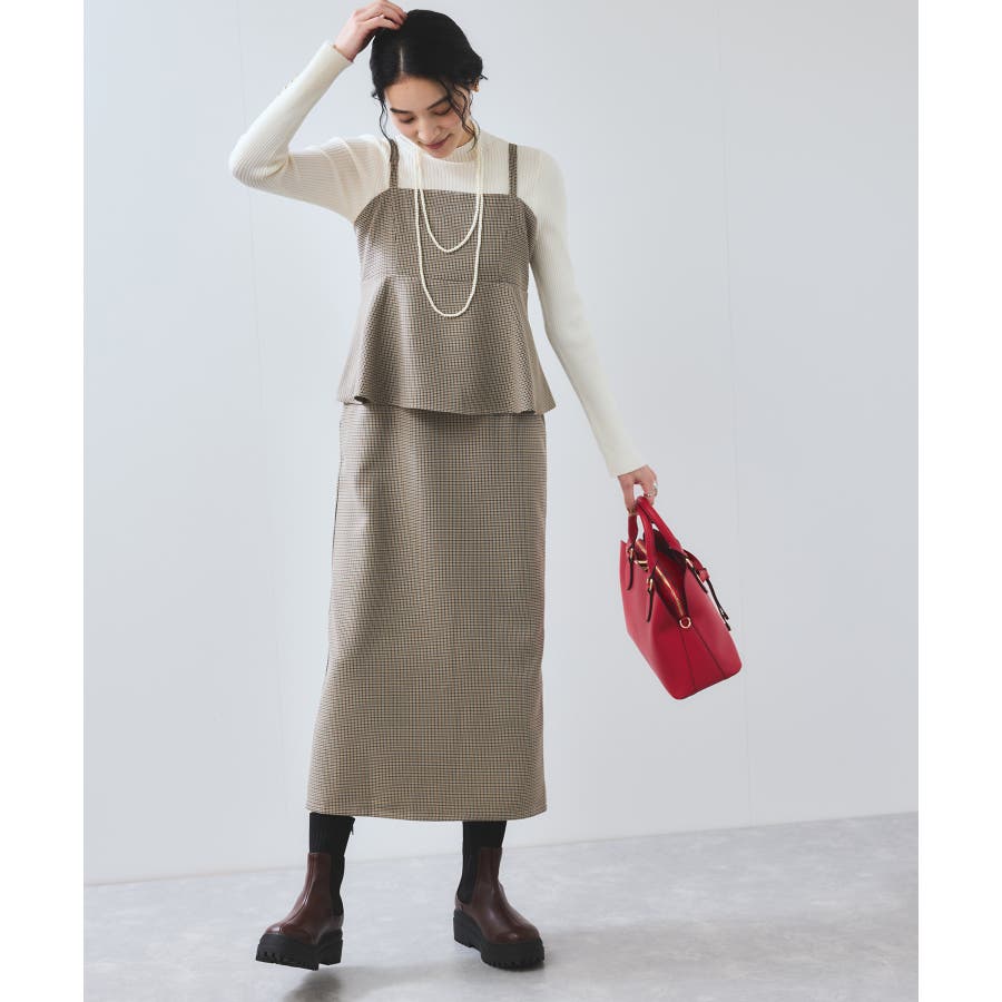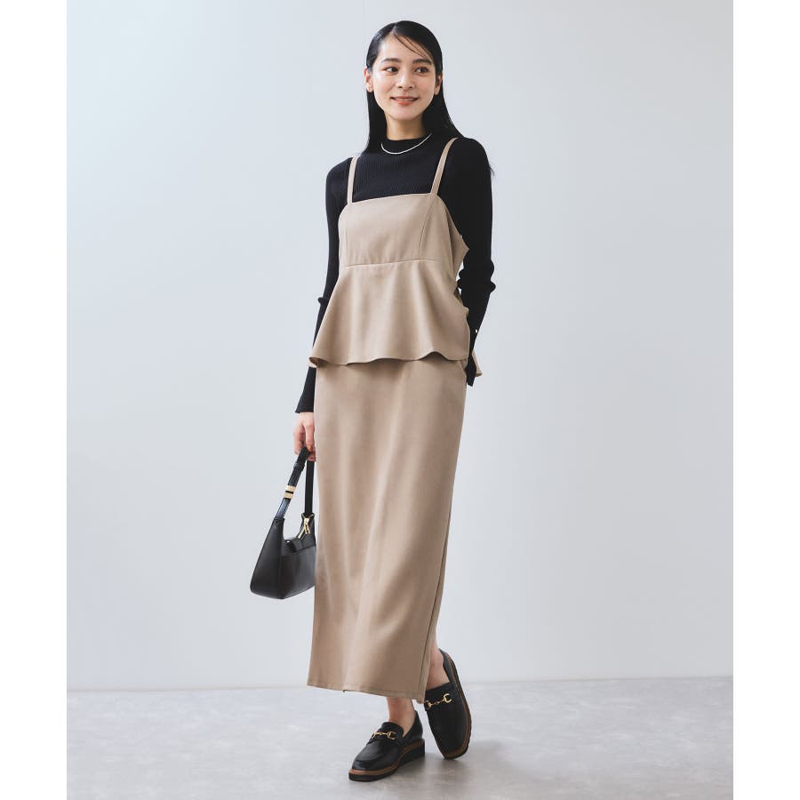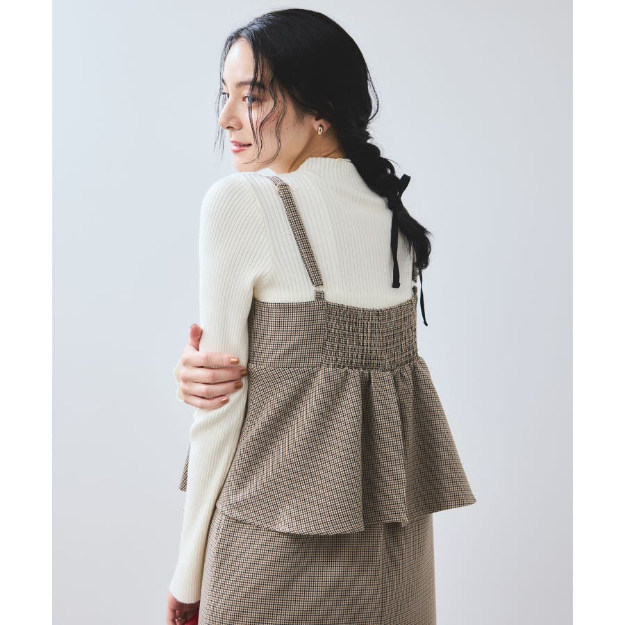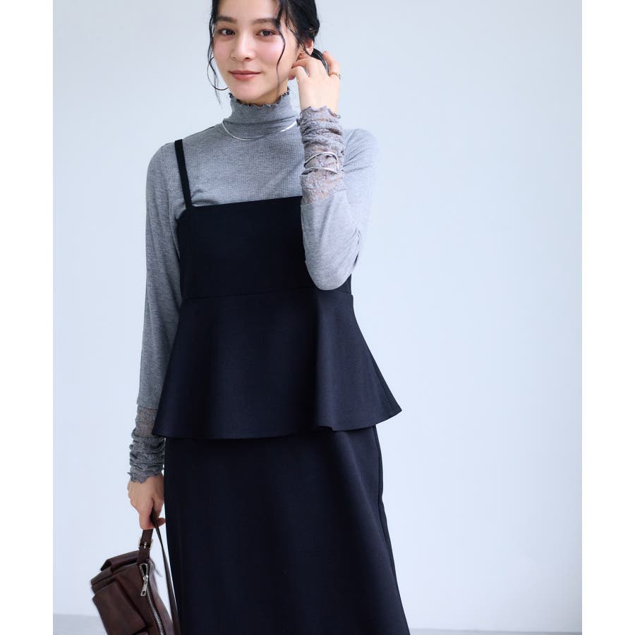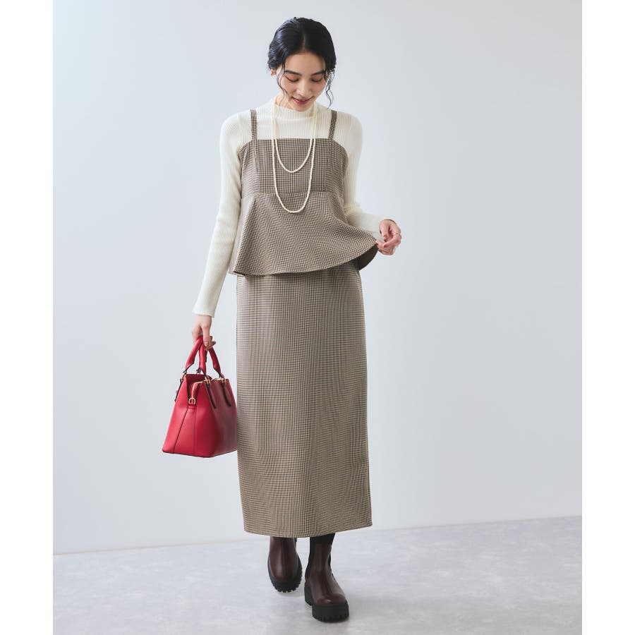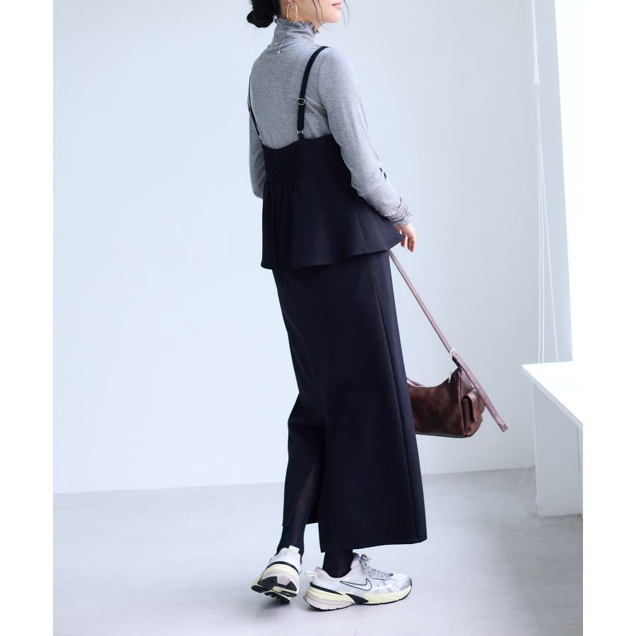 リブやモヘアのハイネックニットを重ねたり、上からざっくりカーディガンを羽織るだけで、季節感のあるコーデが完成します。さらに、ボウタイブラウスと合わせて、首元のリボン×ペプラムのレイヤードを楽しむスタイルも◎。フェミニンな華やかさを引き立てつつ、きちんと感も演出できるので、通勤やちょっとしたお食事会にもぴったりです。秋にはシアーインナーやロンTと合わせて軽やかに。ロングシーズン着回せるのも魅力のひとつです。