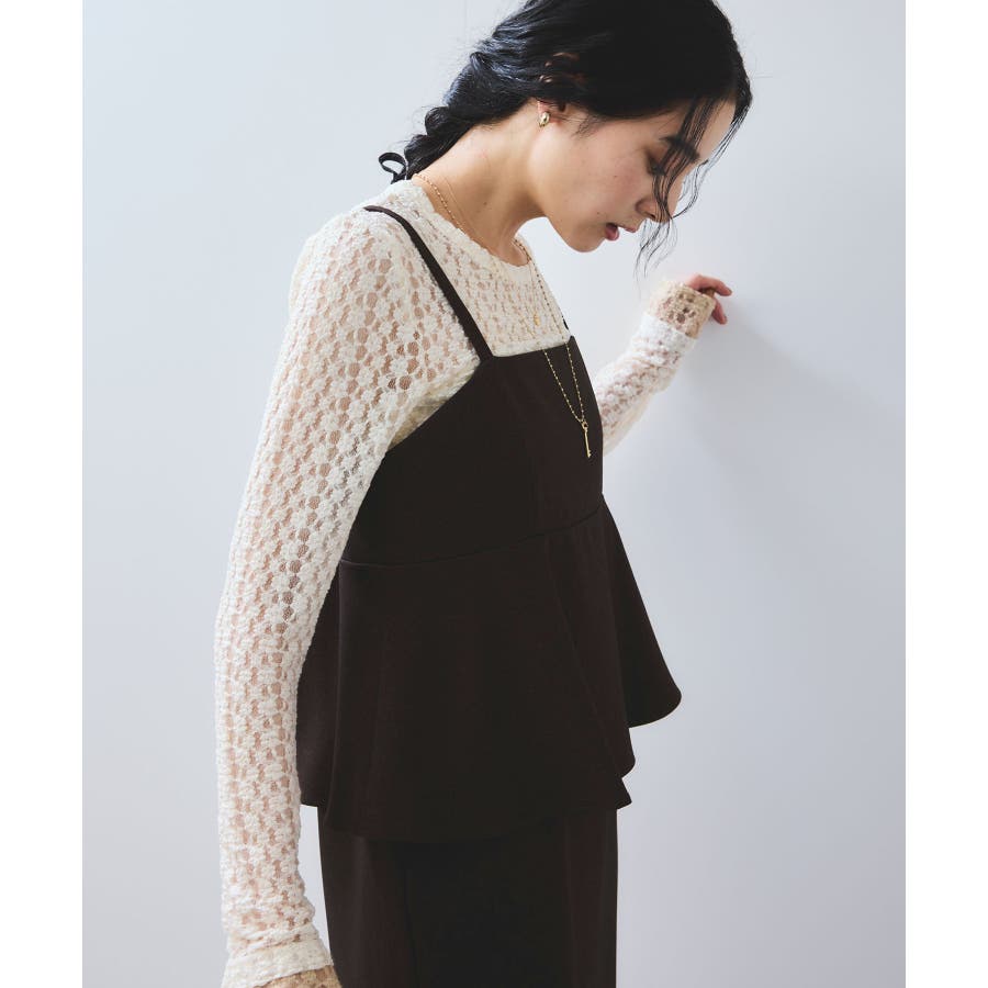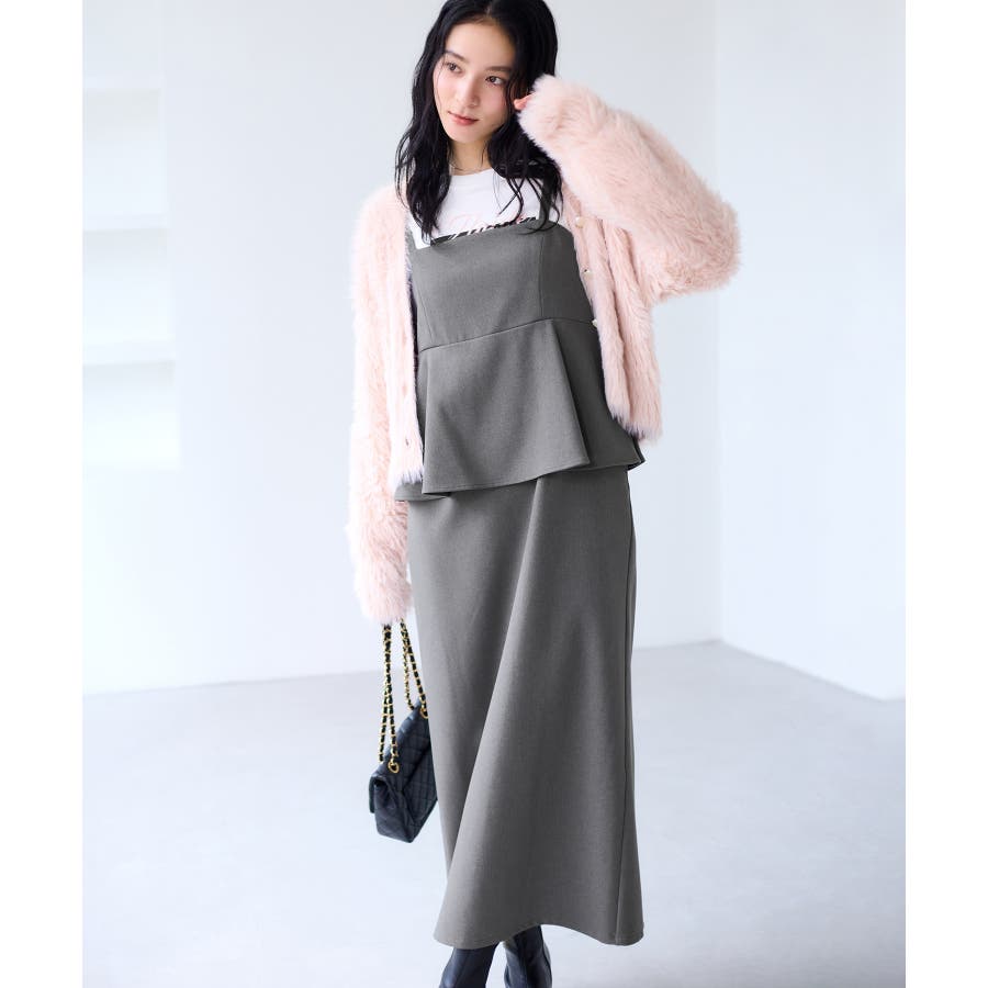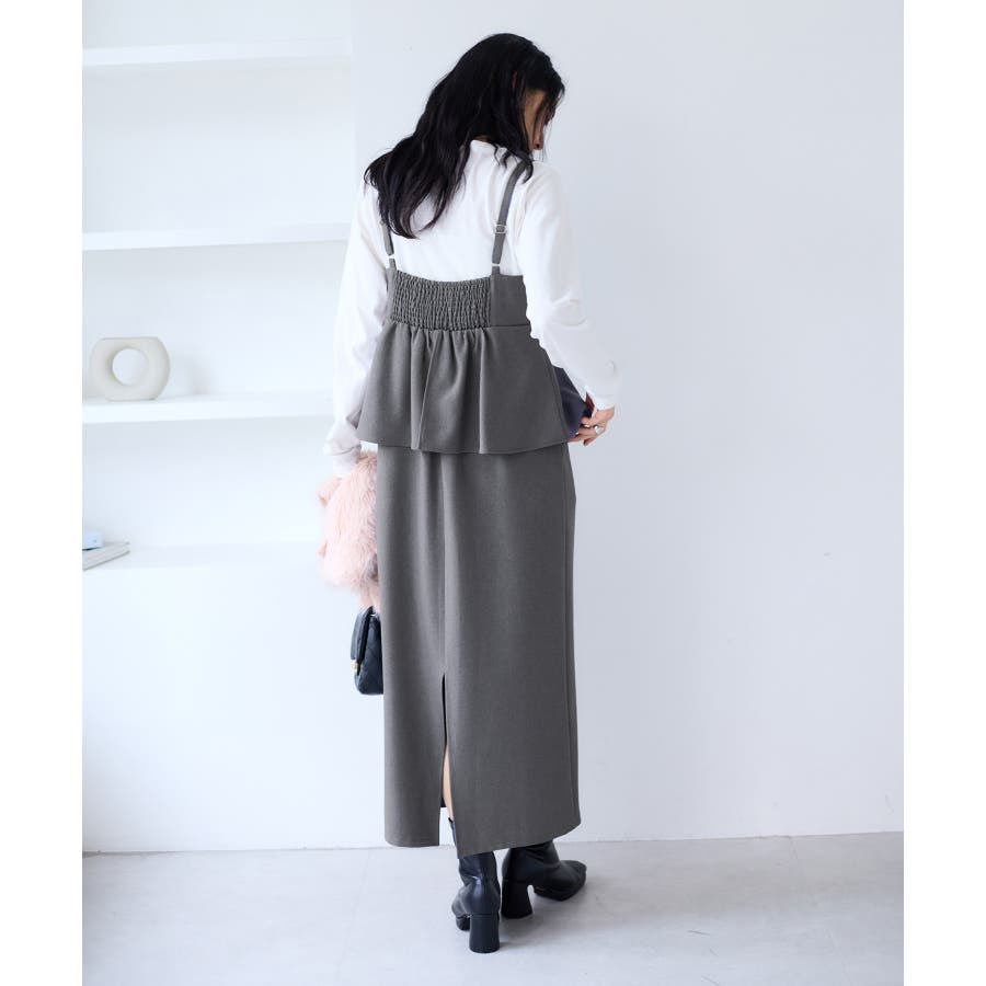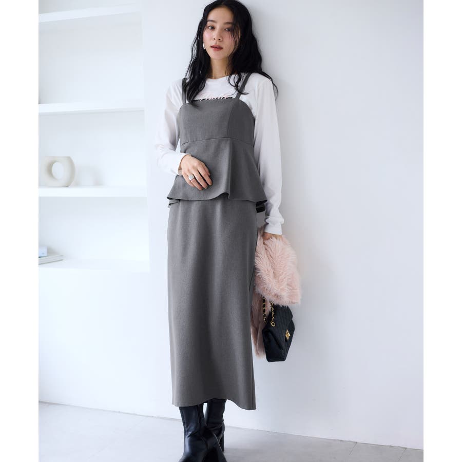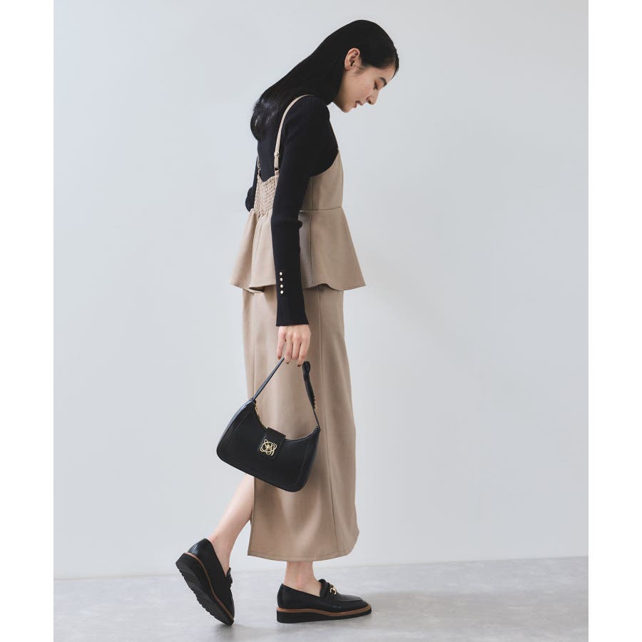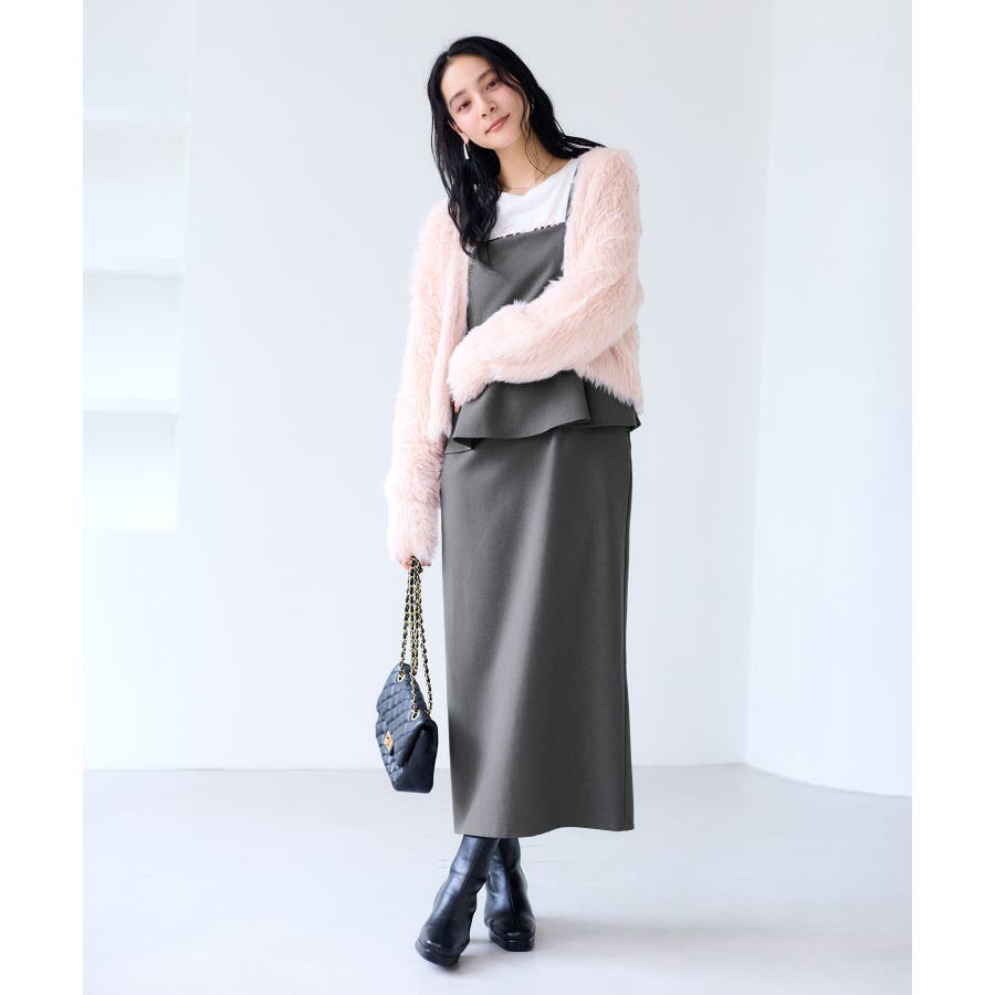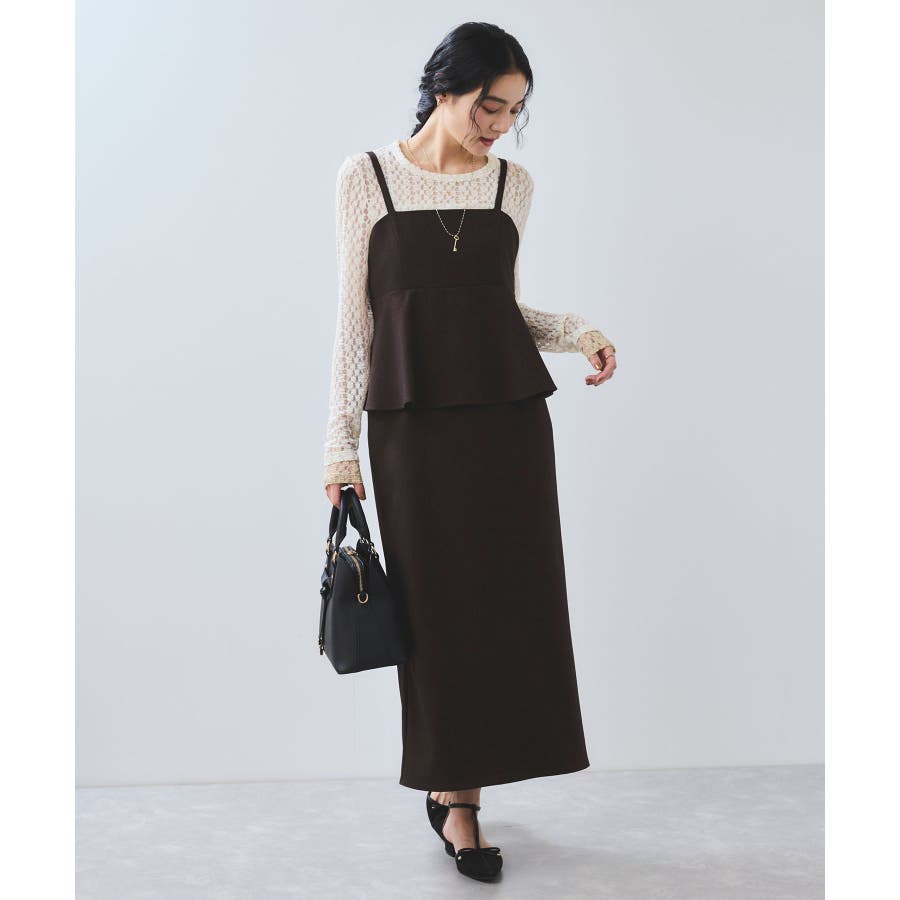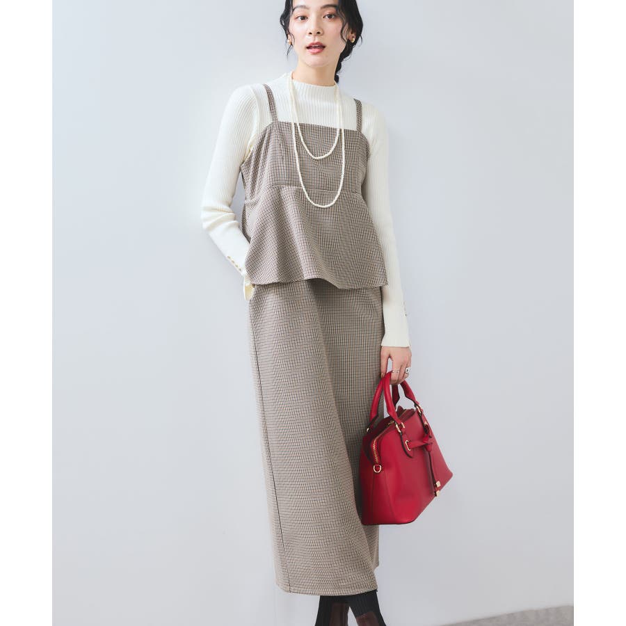リブやモヘアのハイネックニットを重ねたり、上からざっくりカーディガンを羽織るだけで、季節感のあるコーデが完成します。さらに、ボウタイブラウスと合わせて、首元のリボン×ペプラムのレイヤードを楽しむスタイルも◎。フェミニンな華やかさを引き立てつつ、きちんと感も演出できるので、通勤やちょっとしたお食事会にもぴったりです。秋にはシアーインナーやロンTと合わせて軽やかに。ロングシーズン着回せるのも魅力のひとつです。