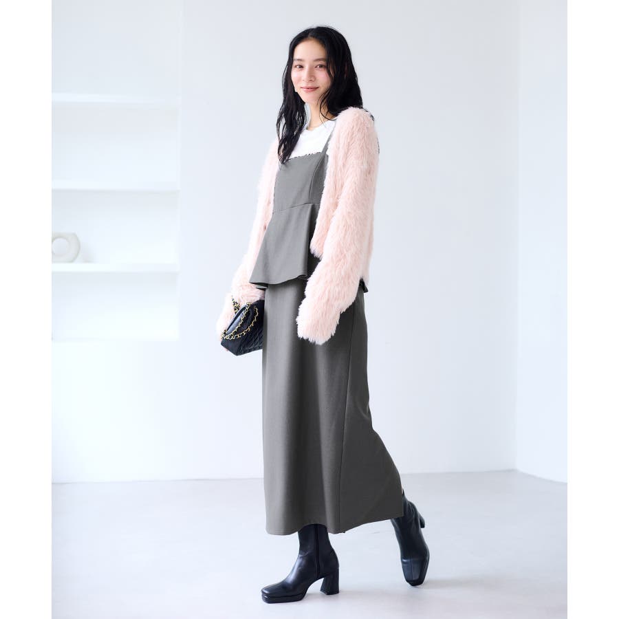 冬にもキャミワンピースを楽しめるよう、やや厚みのあるニットもレイヤードできるサイズ設計に。