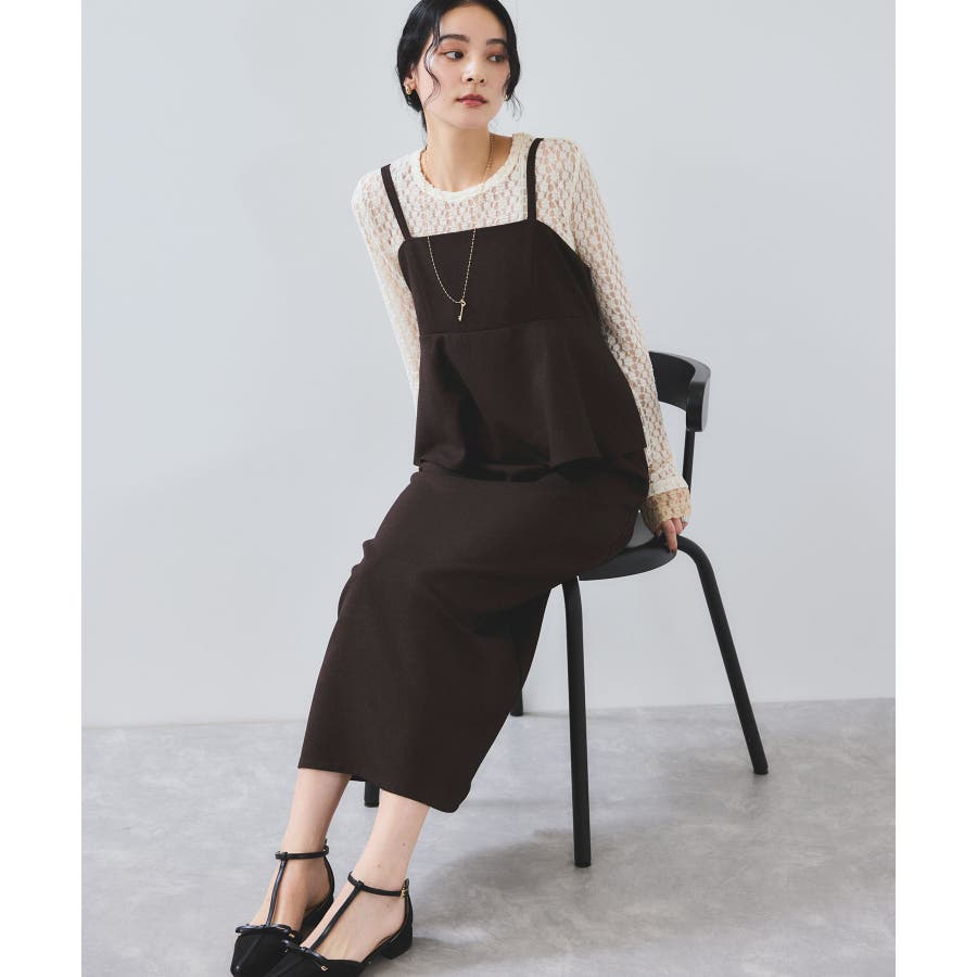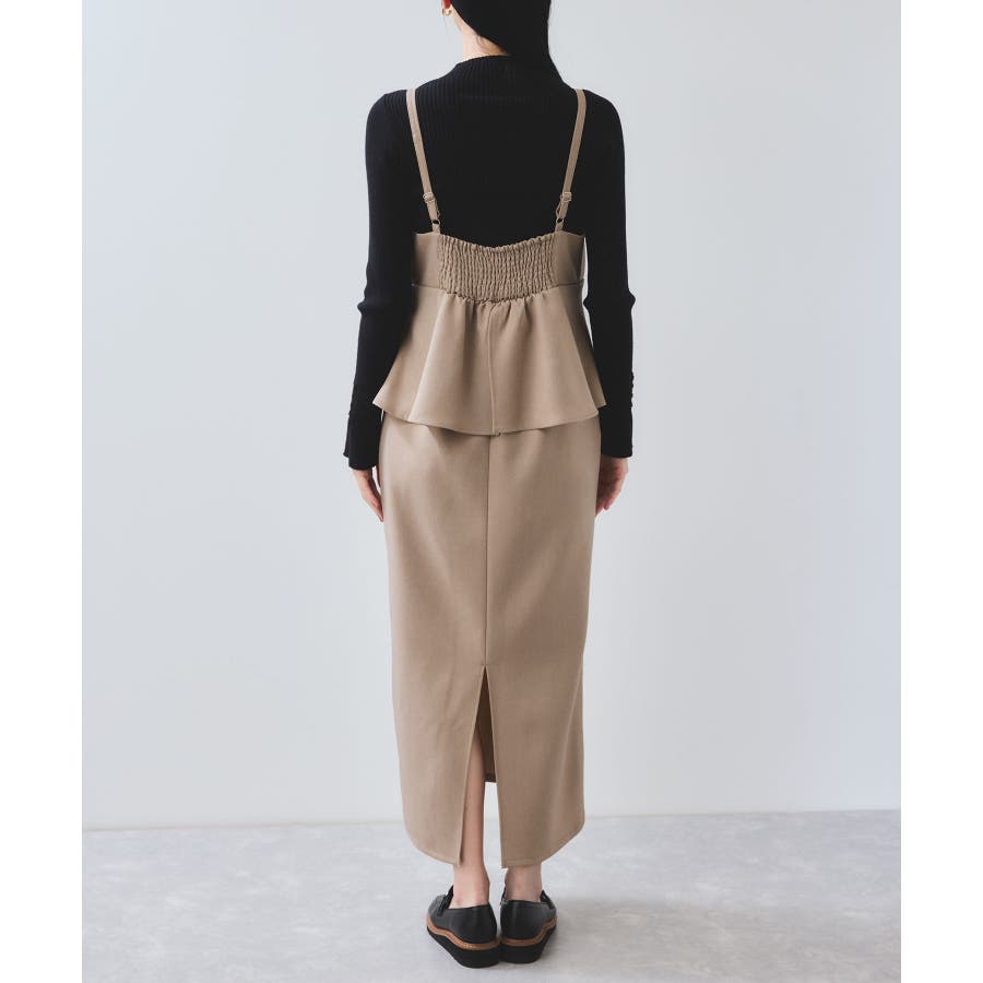 女性らしい立体感を演出するペプラム切替デザインで、腰位置を高く見せつつ、気になるウエスト・ヒップまわりをさりげなくカバー。やや太めのストラップで肩まわりもすっきりと見せてくれます。メリハリのあるシルエットながら、締めつけ感のない着心地も魅力で、ストレート・ウェーブ・ナチュラルすべての骨格タイプに取り入れやすい設計です。