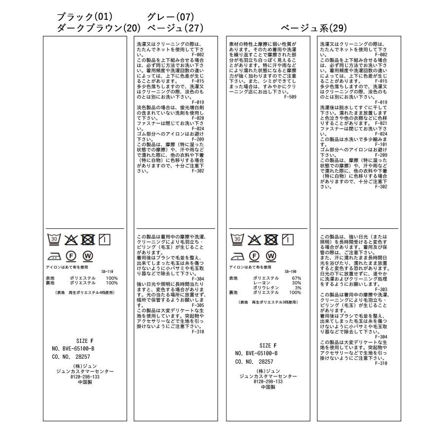 ※グレー(07)ブラック(01)ダークブラウン(20)ベージュ(27):混率:(表地)ポリエステル 100% (裏地)ポリエステル 100%